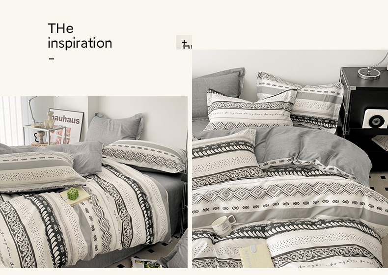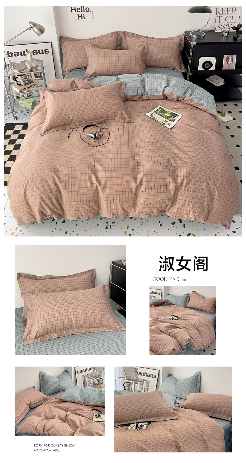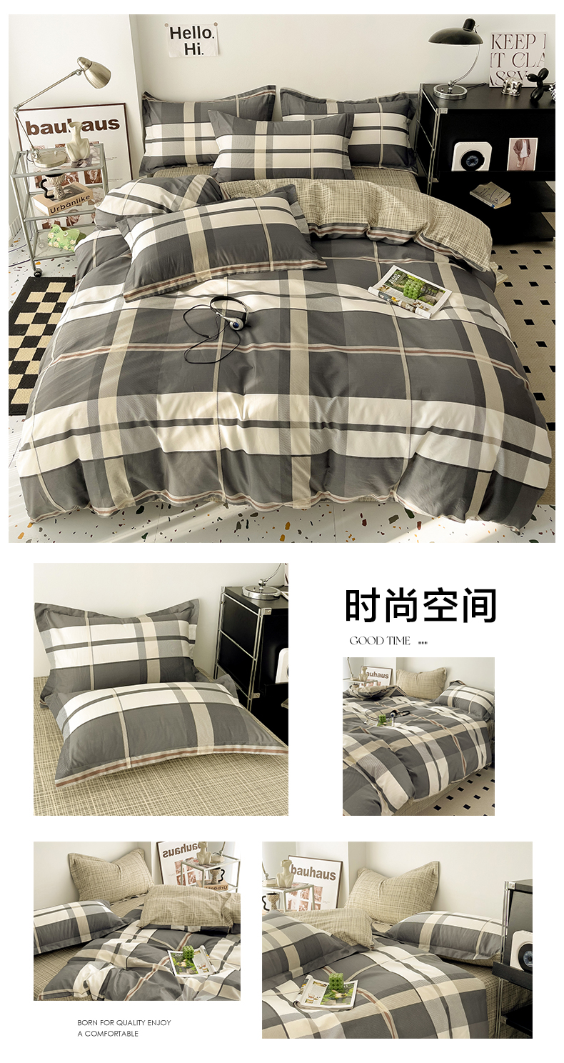 (总)盛馨家纺 2024新款全棉高支高密精梳棉北欧绅士风四件套纯棉床笠格子条纹三件套
