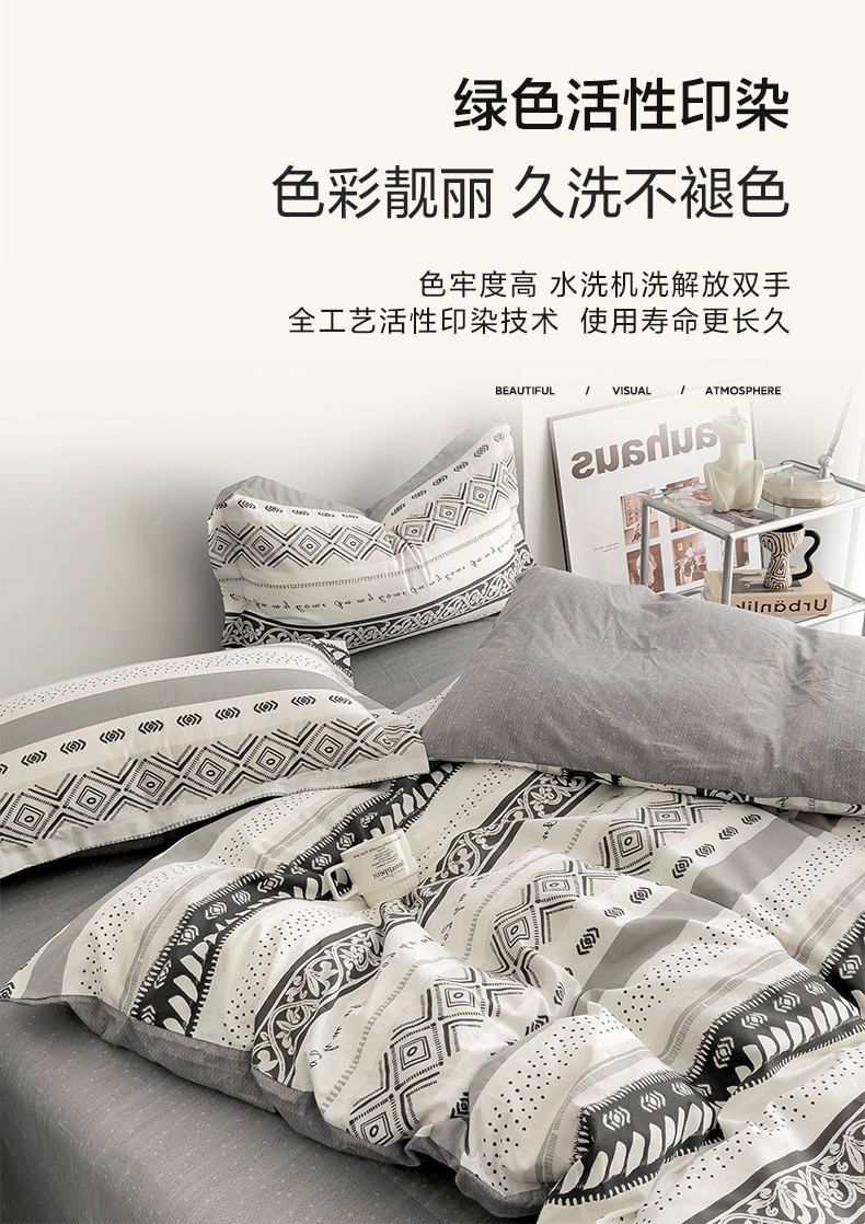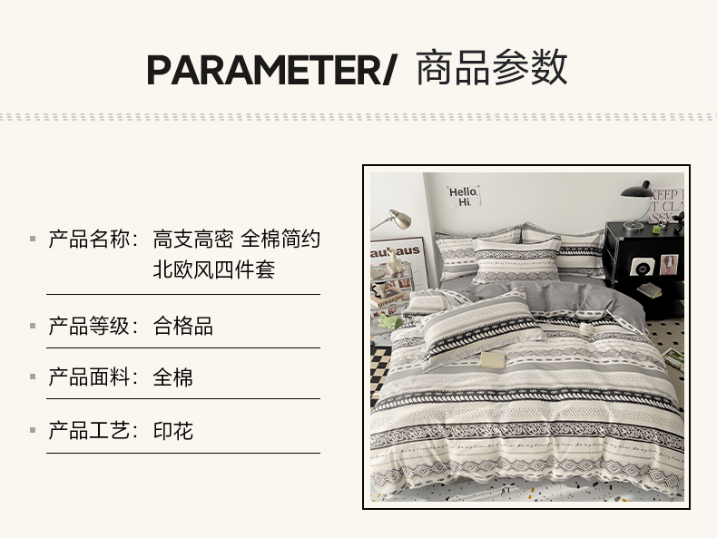 商品名称:(总)盛馨家纺 2024新款全棉高支高密精梳棉北欧绅士风四件套纯棉床笠格子条纹三件套