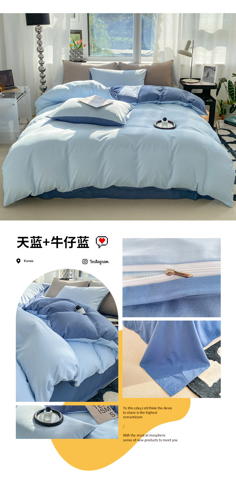 当前位置: 91家纺网 > 商品网购 > 床品套件 > 四件套 > 化纤普通四件套 > 芷凡家纺 2024新款亲肤棉纯色双拼四件套 天蓝+牛仔蓝
