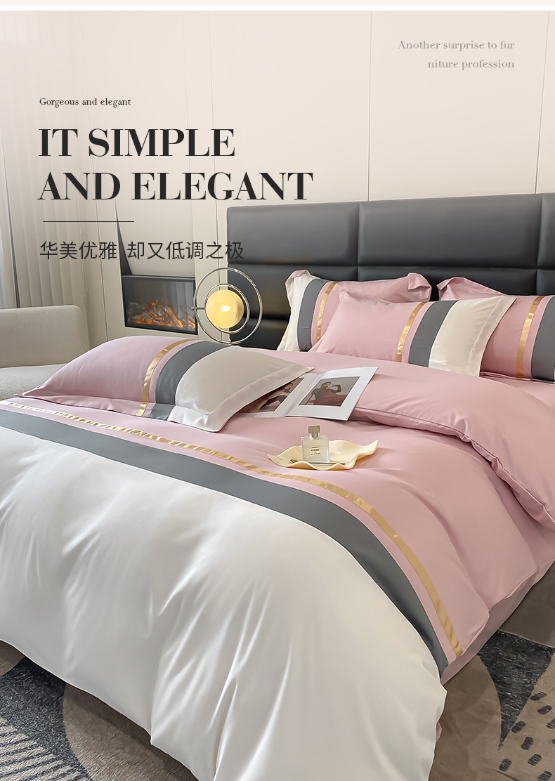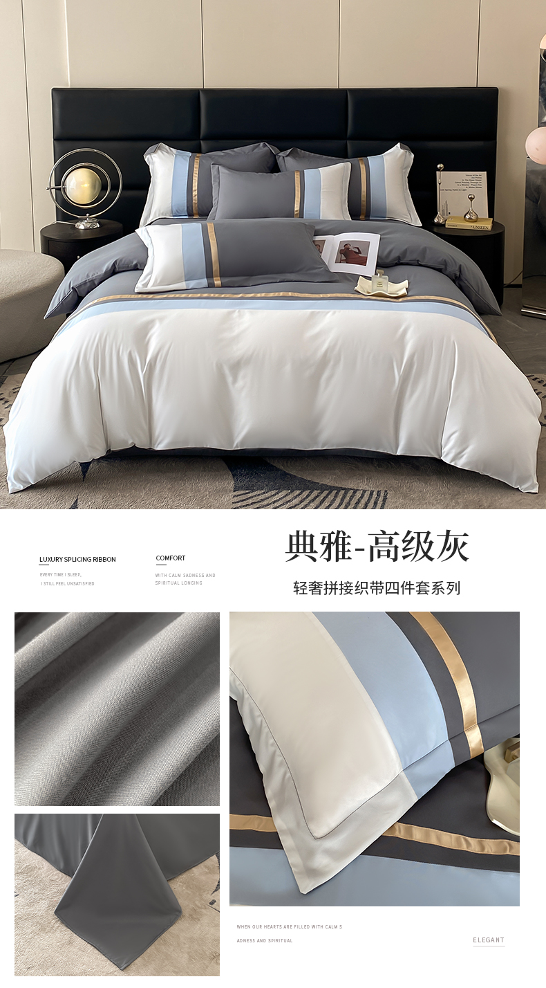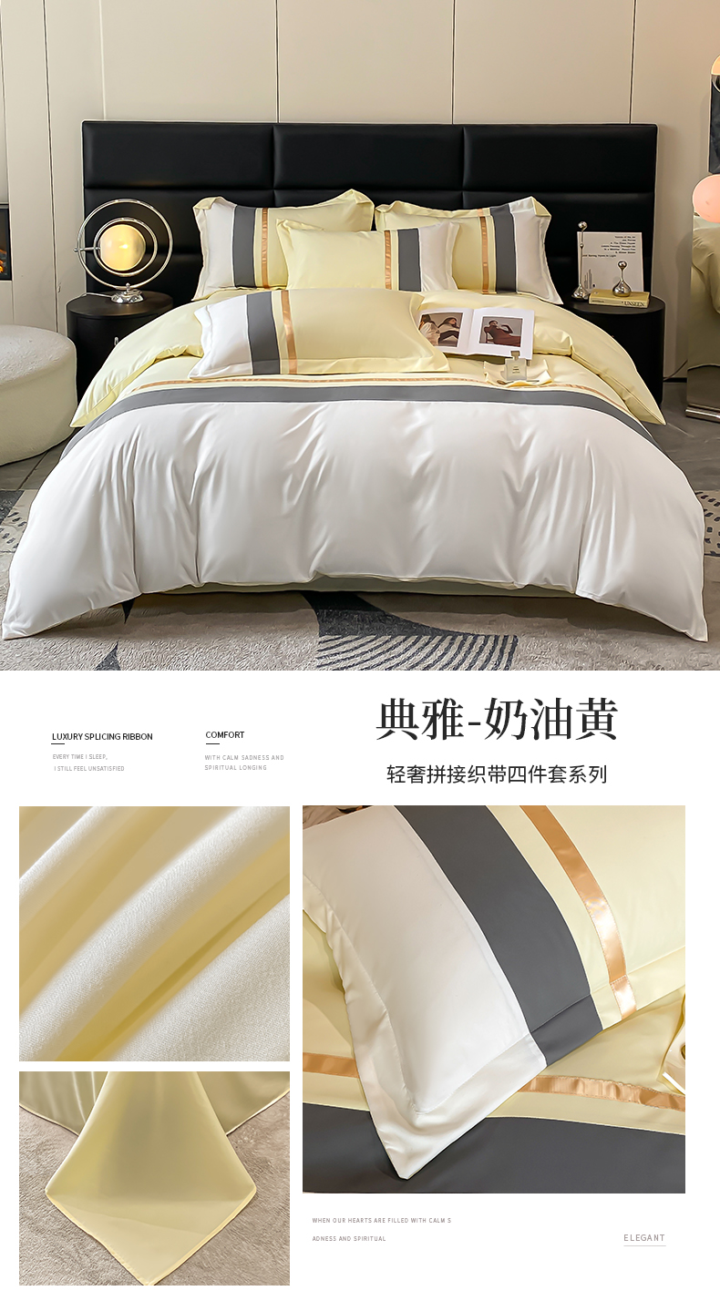 商品名称:(总)苏源家居 2024新款亲肤棉纯色双拼轻奢北欧四件套-典雅系列