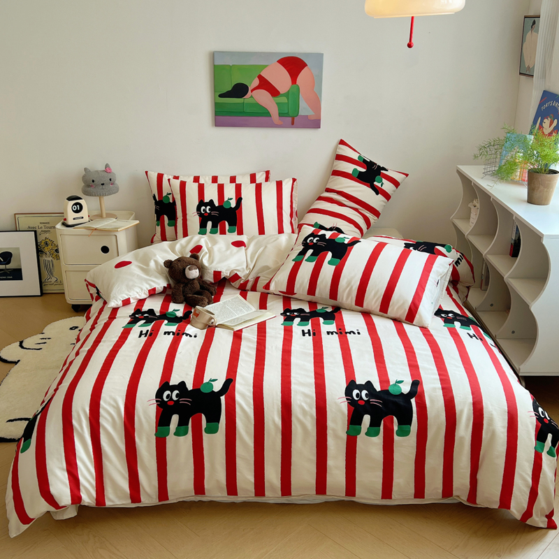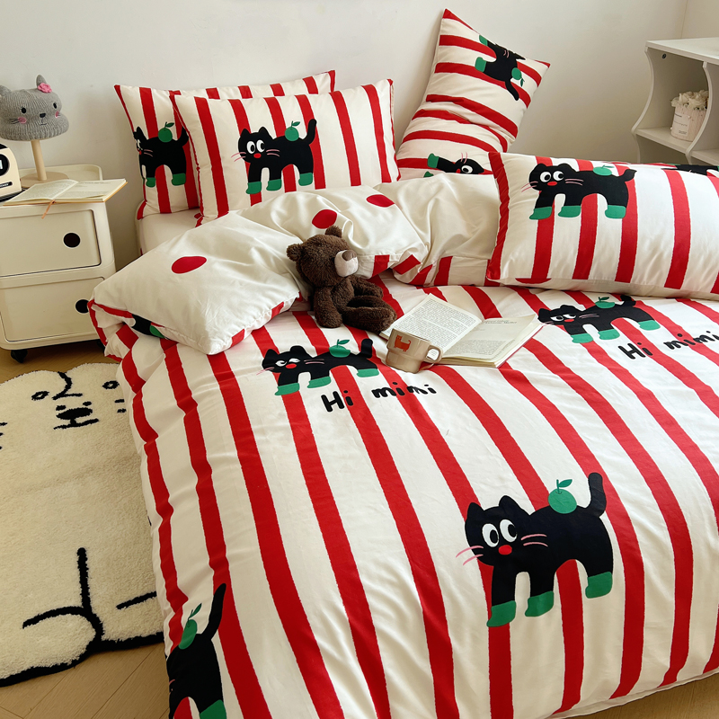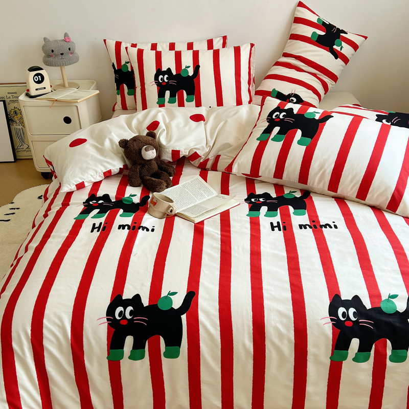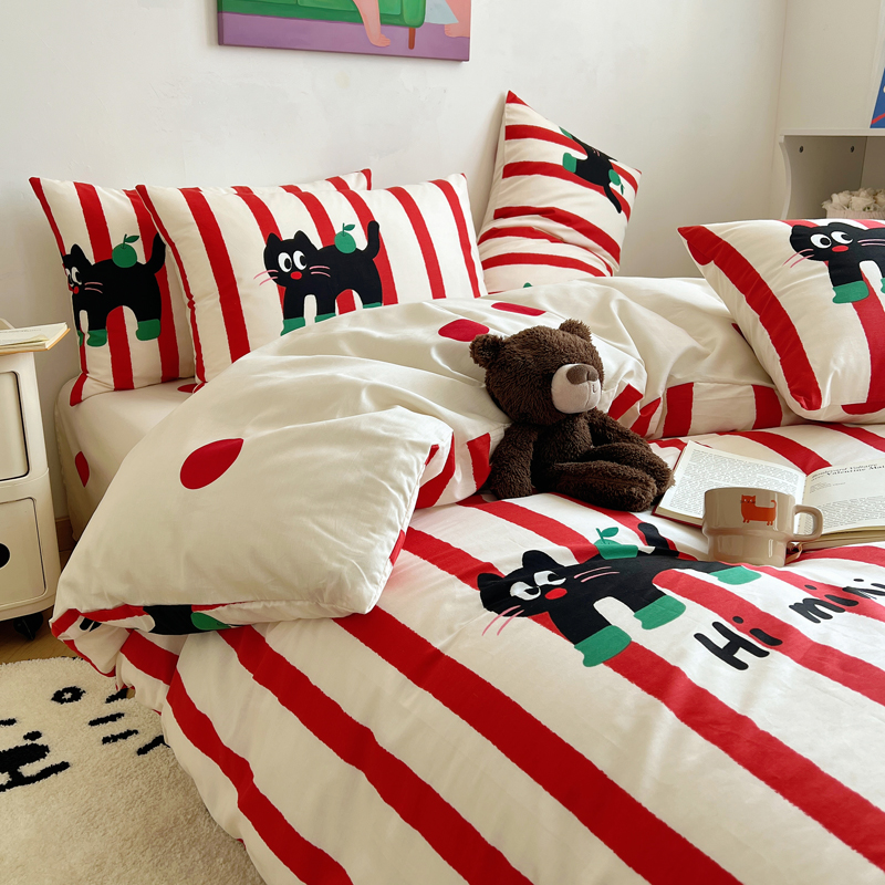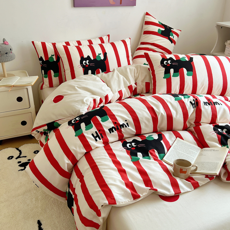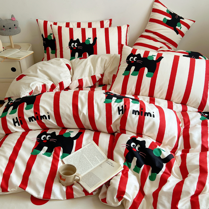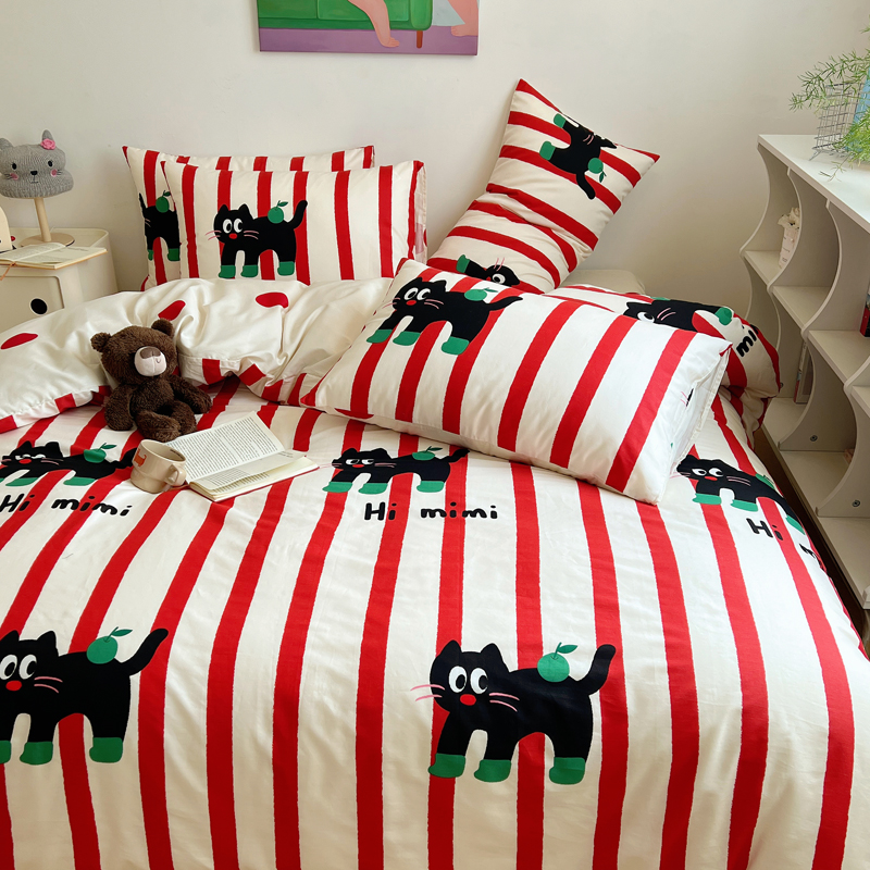 桃喜 2024新款40支13372全棉卡通系列四件套 条纹小猫
