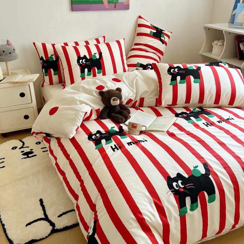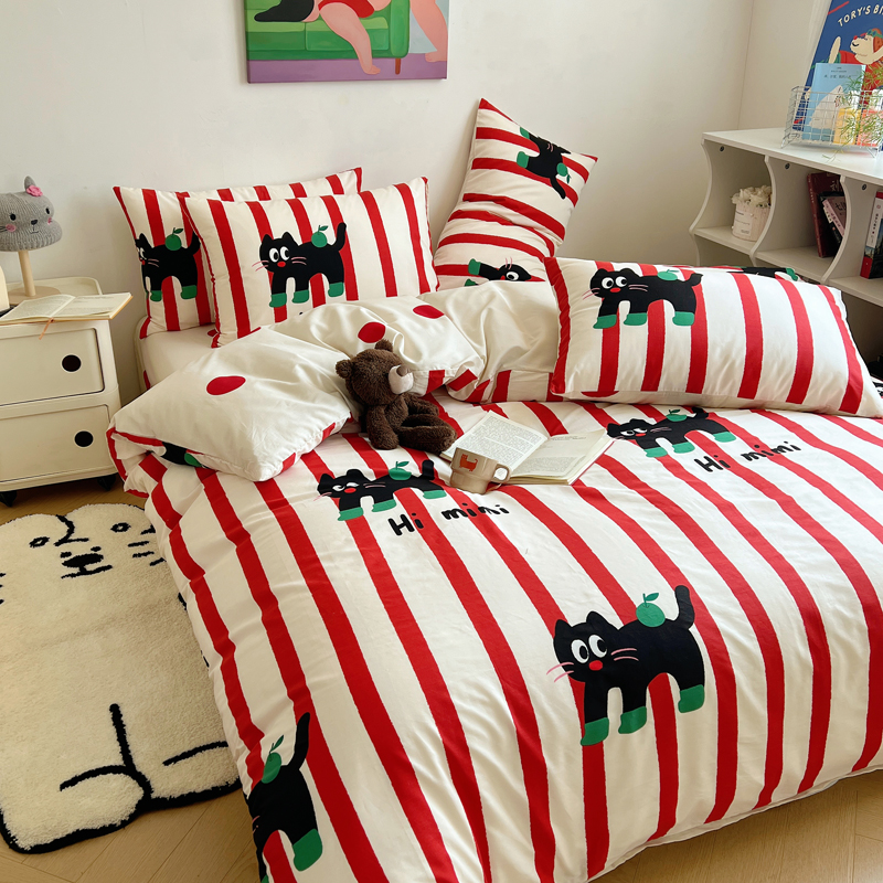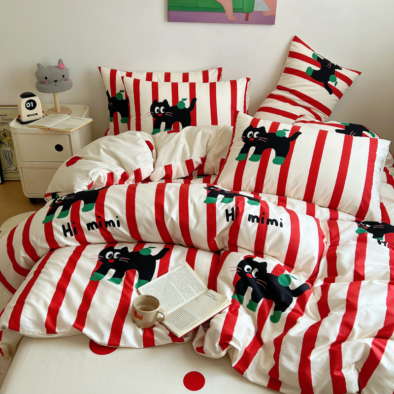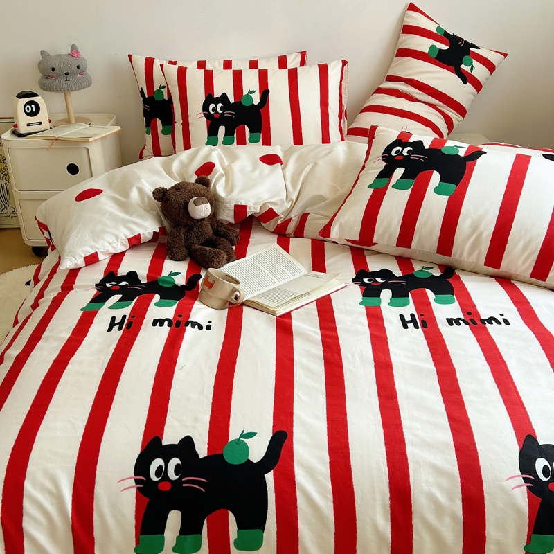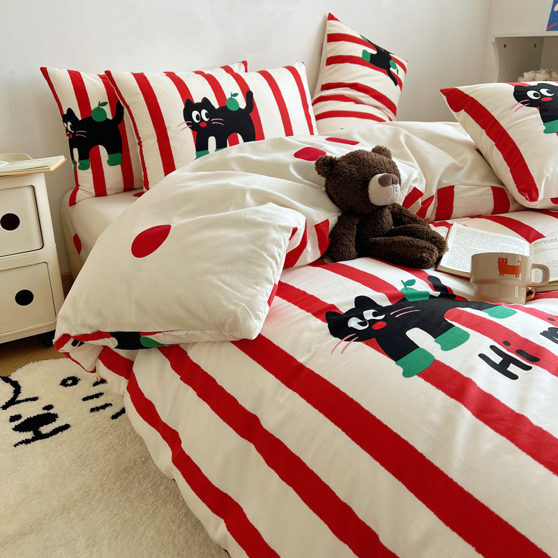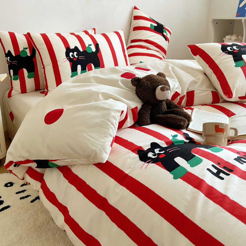 桃喜 2024新款40支13372全棉卡通系列四件套 条纹小猫