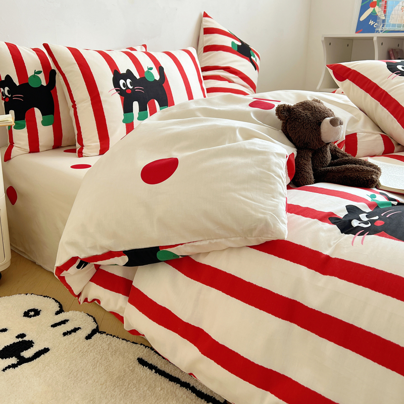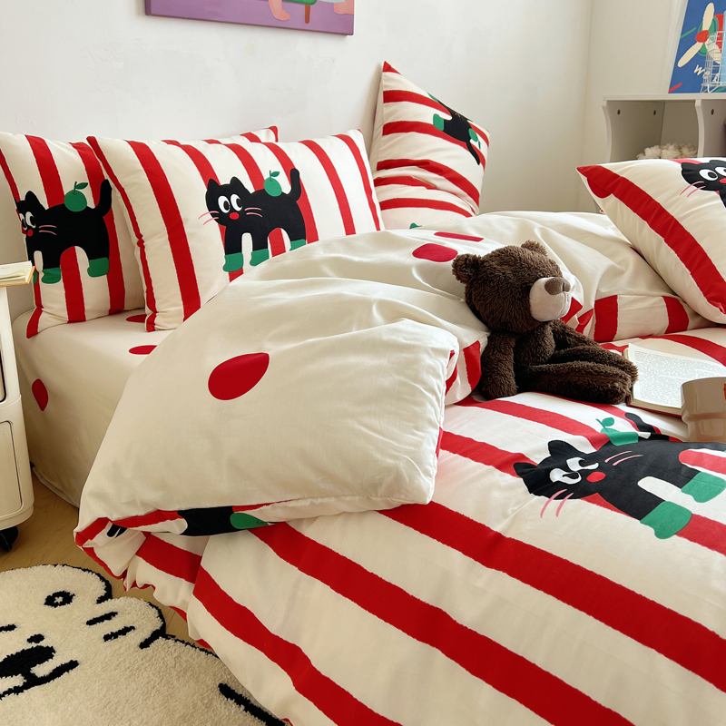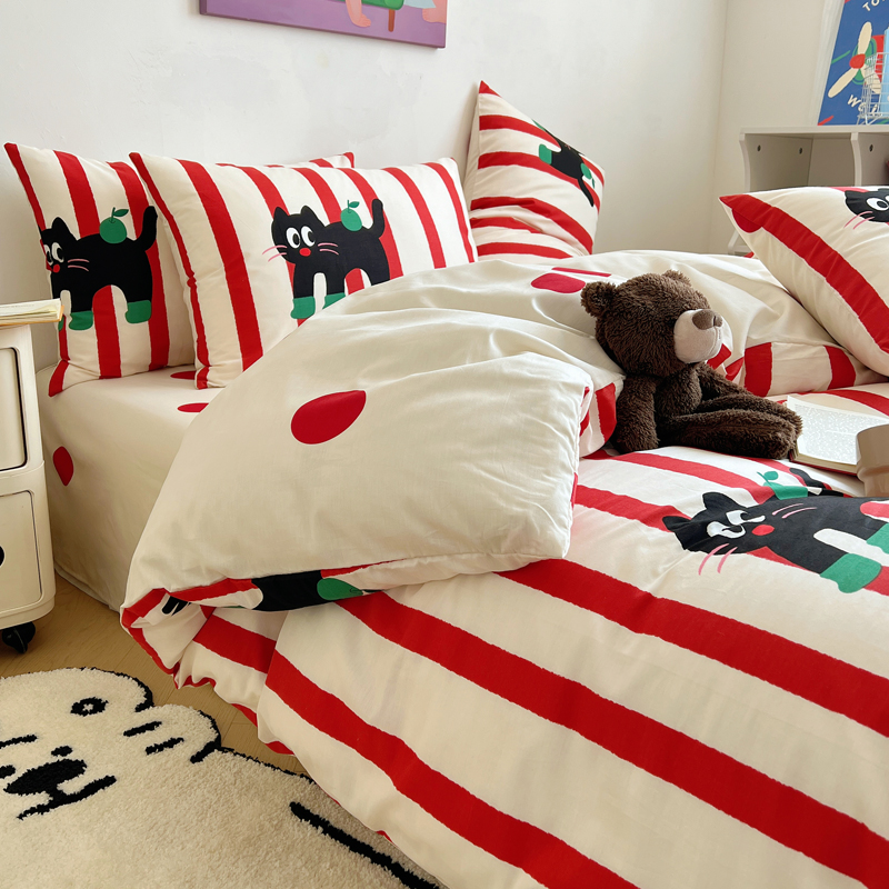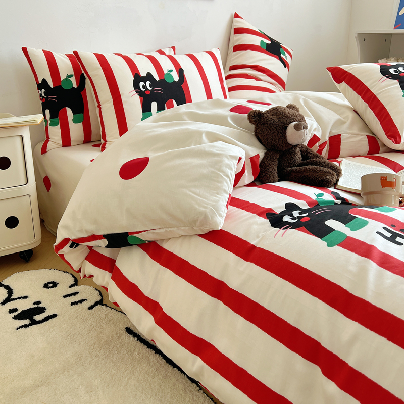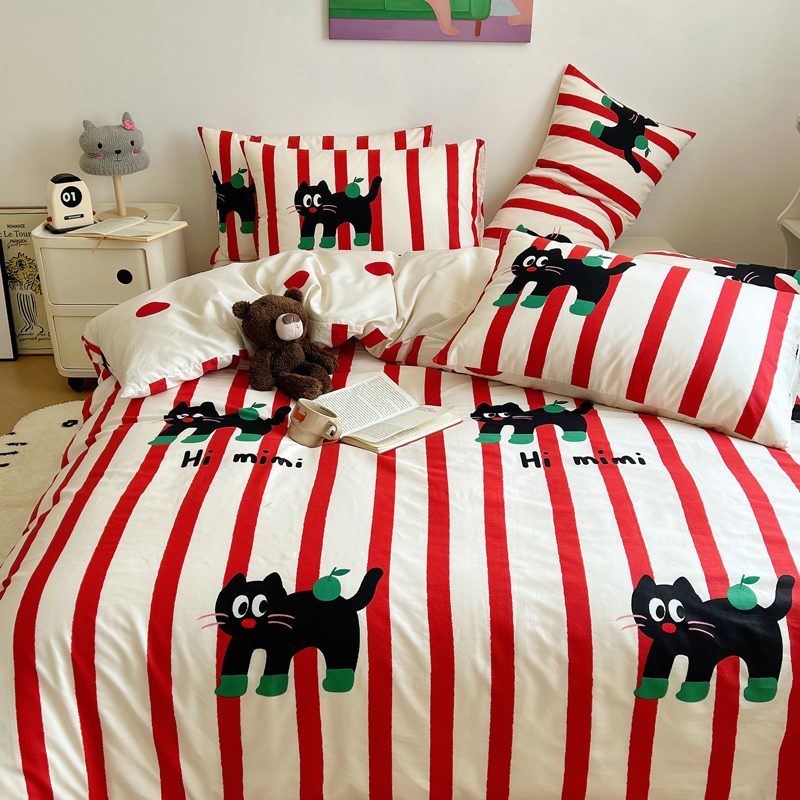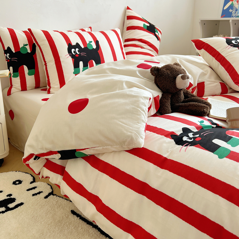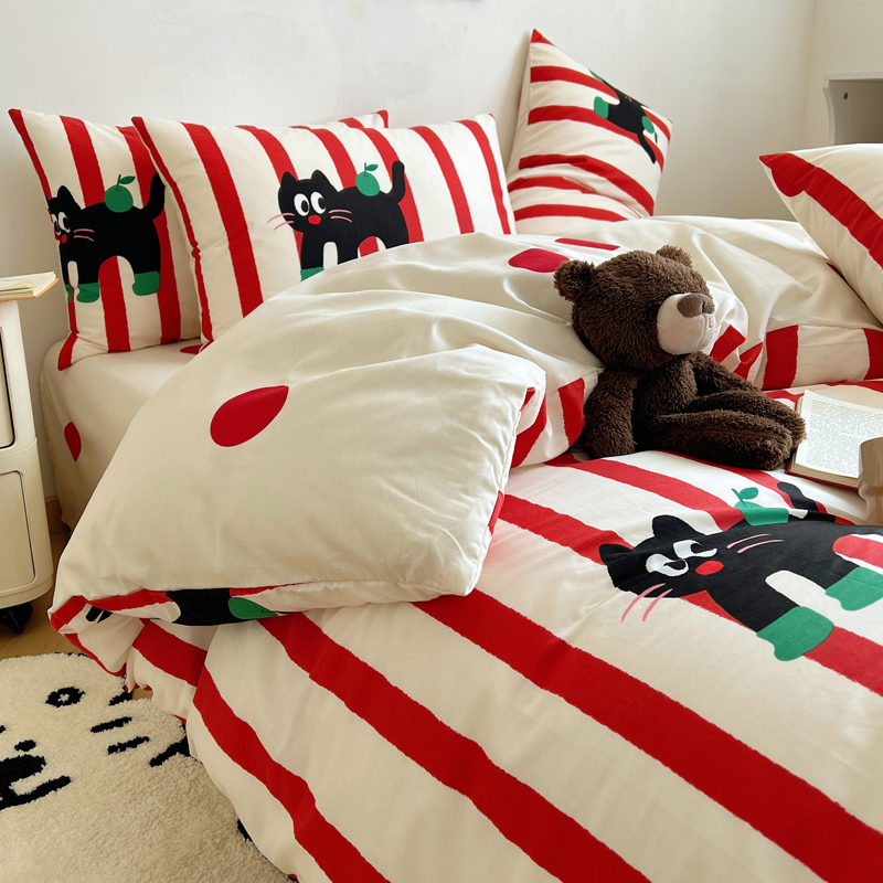 桃喜 2024新款40支13372全棉卡通系列四件套 条纹小猫