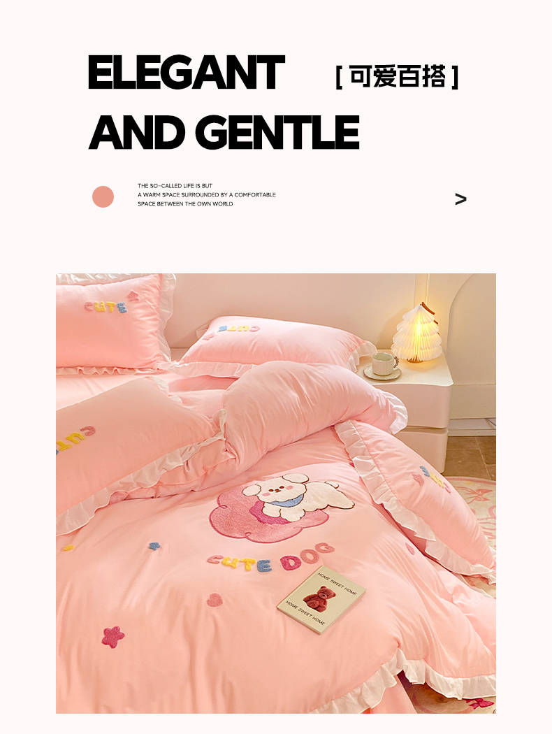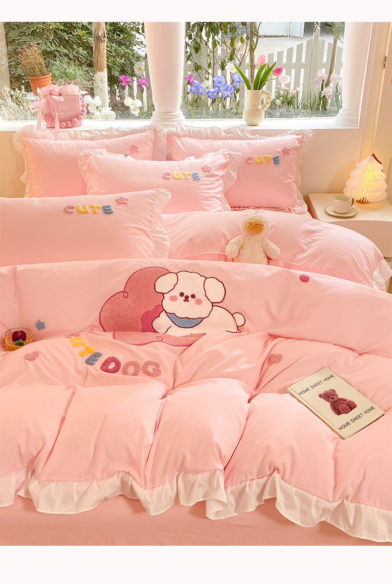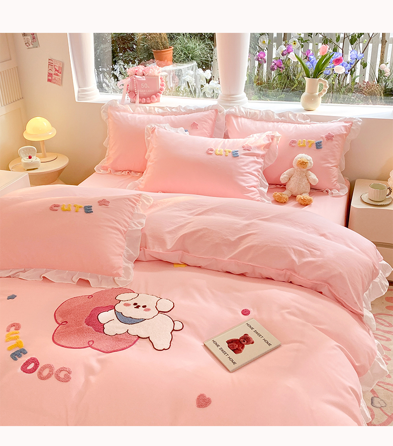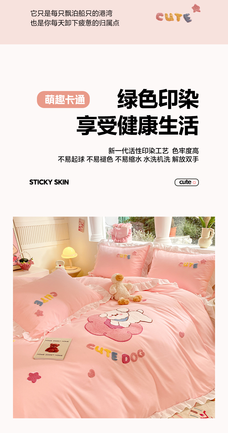 当前位置: 91家纺网 > 商品网购 > 床品套件 > 四件套 > 毛巾绣四件套 > (总)易禾家纺 2024新款专板花型亲肤水洗棉毛巾绣四件套-跳跳狗