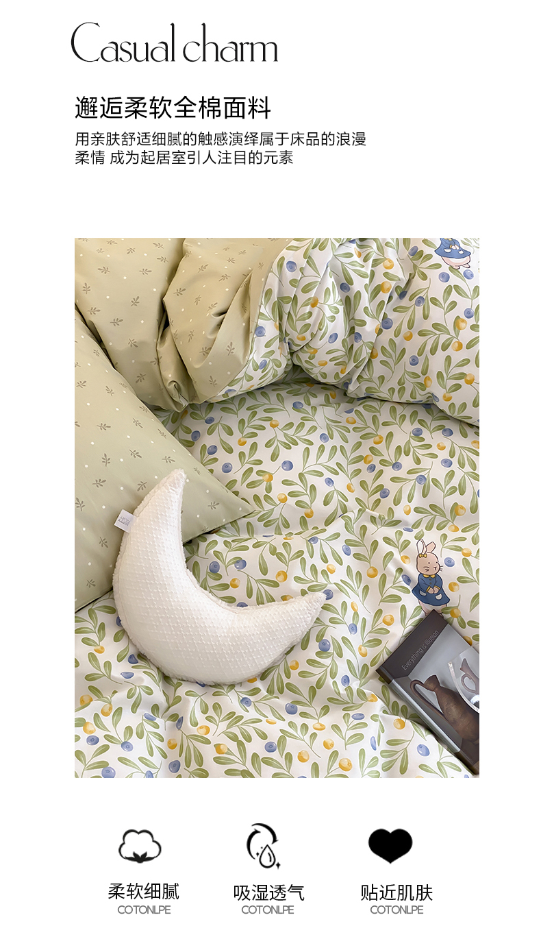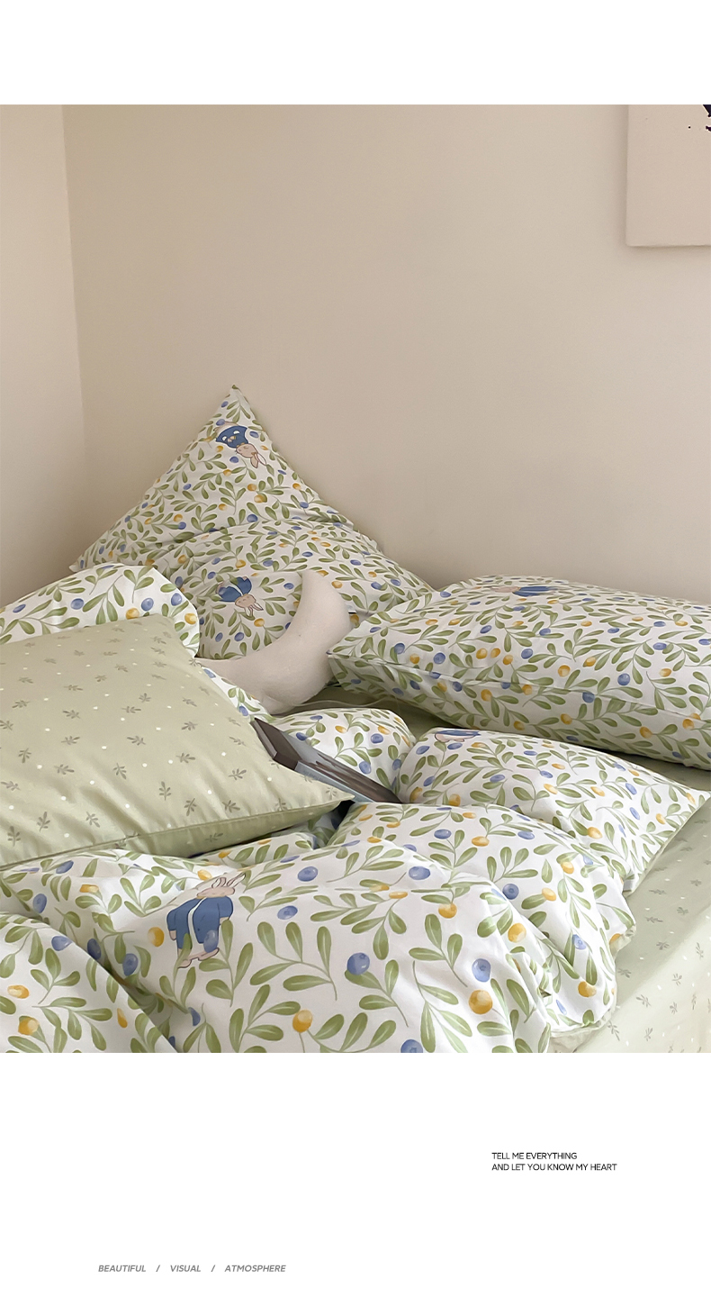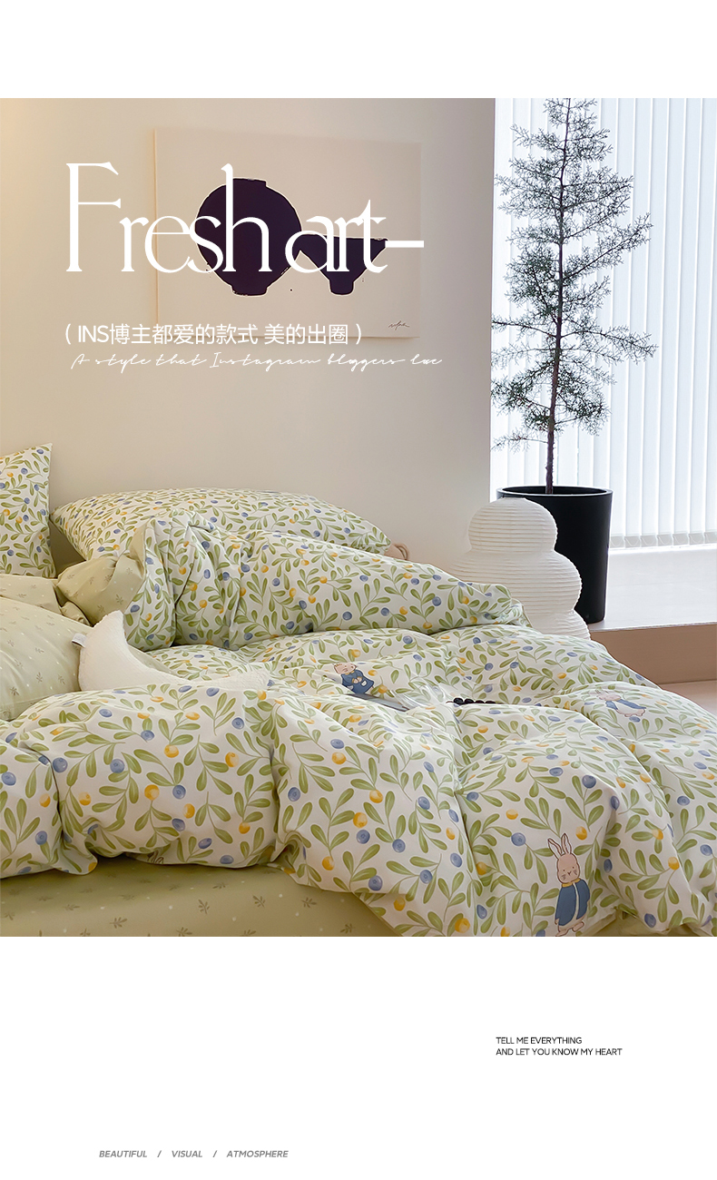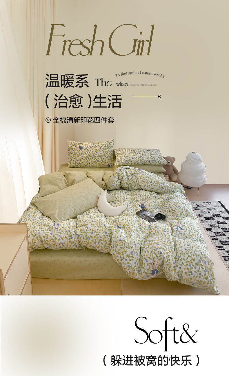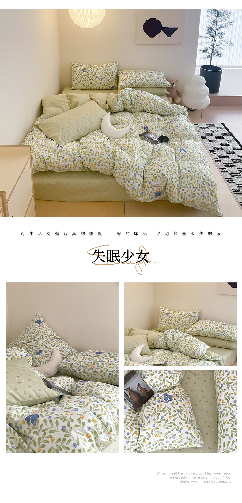 宜家坊 2024新款全棉喷气13070小清新印花四件套-拍摄一 失眠少女