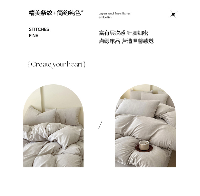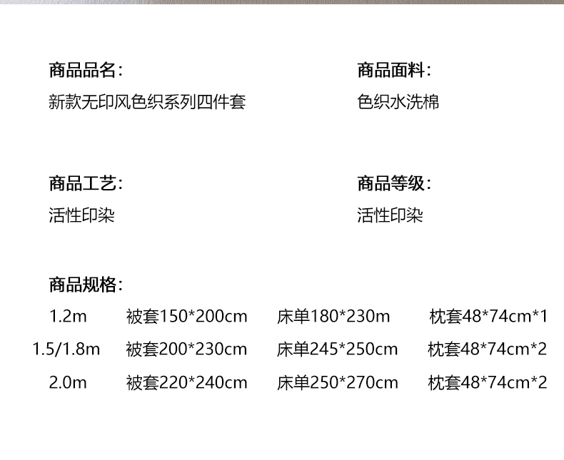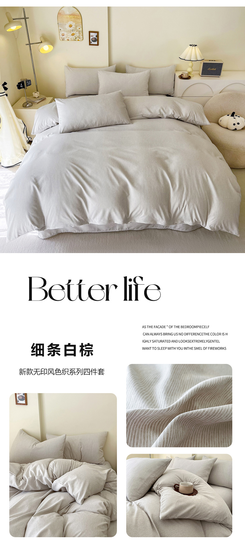商品名称:一比一 2024新款无印风色织系列四件套 细条白棕