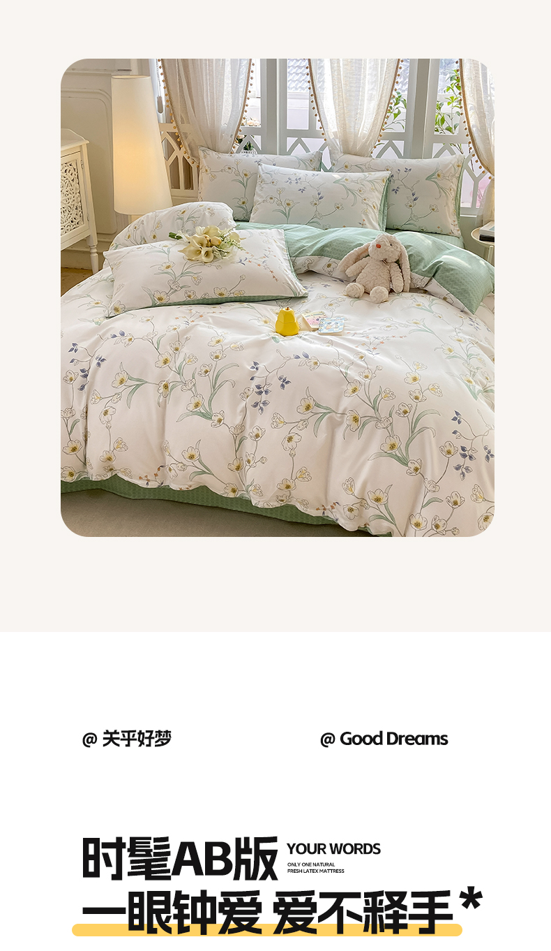 宜家坊 2024新款全棉13070小清新印花四件套-拍摄二 沁园春