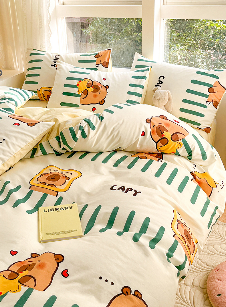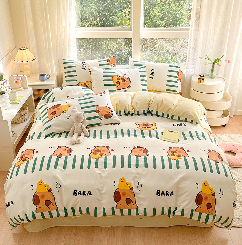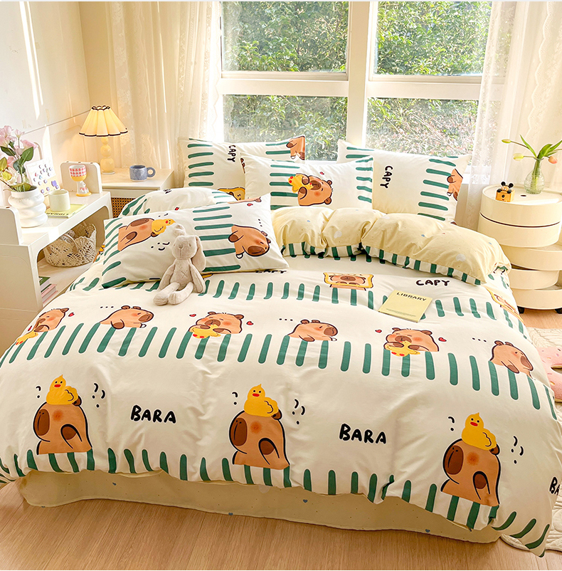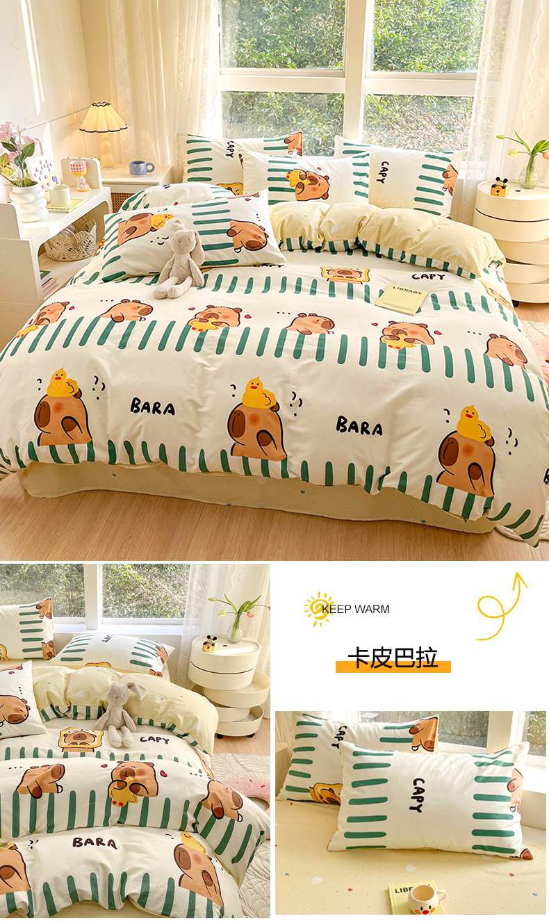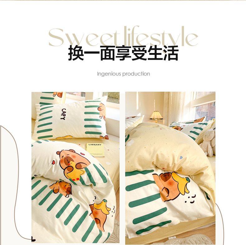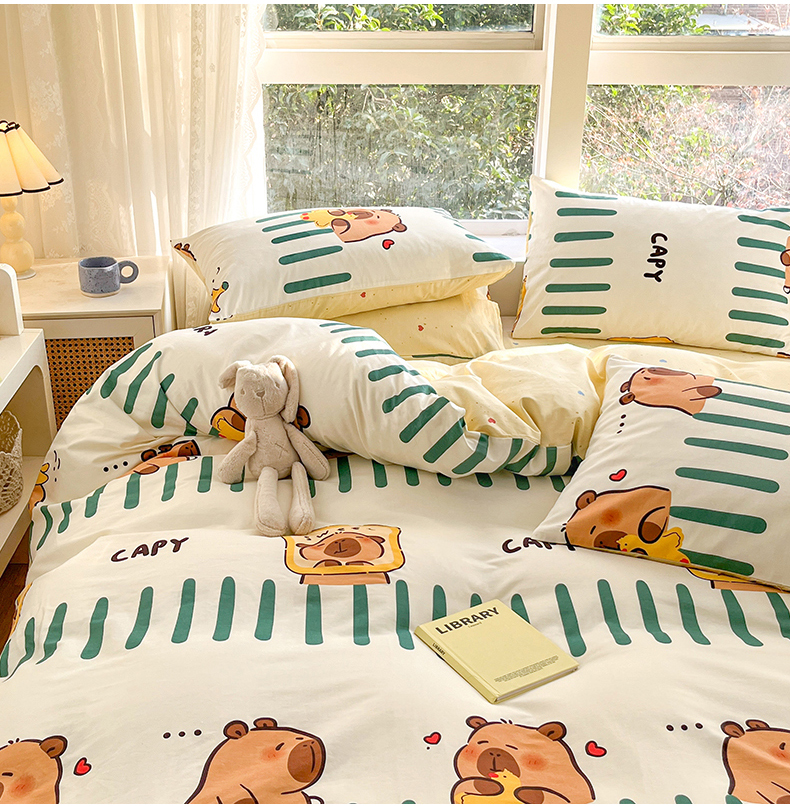 当前位置: 91家纺网 > 商品网购 > 床品套件 > 四件套 > 全棉普通四件套 > 麦伦家居 2024春夏新品ins小清新卡通全棉四件套 卡皮巴拉
