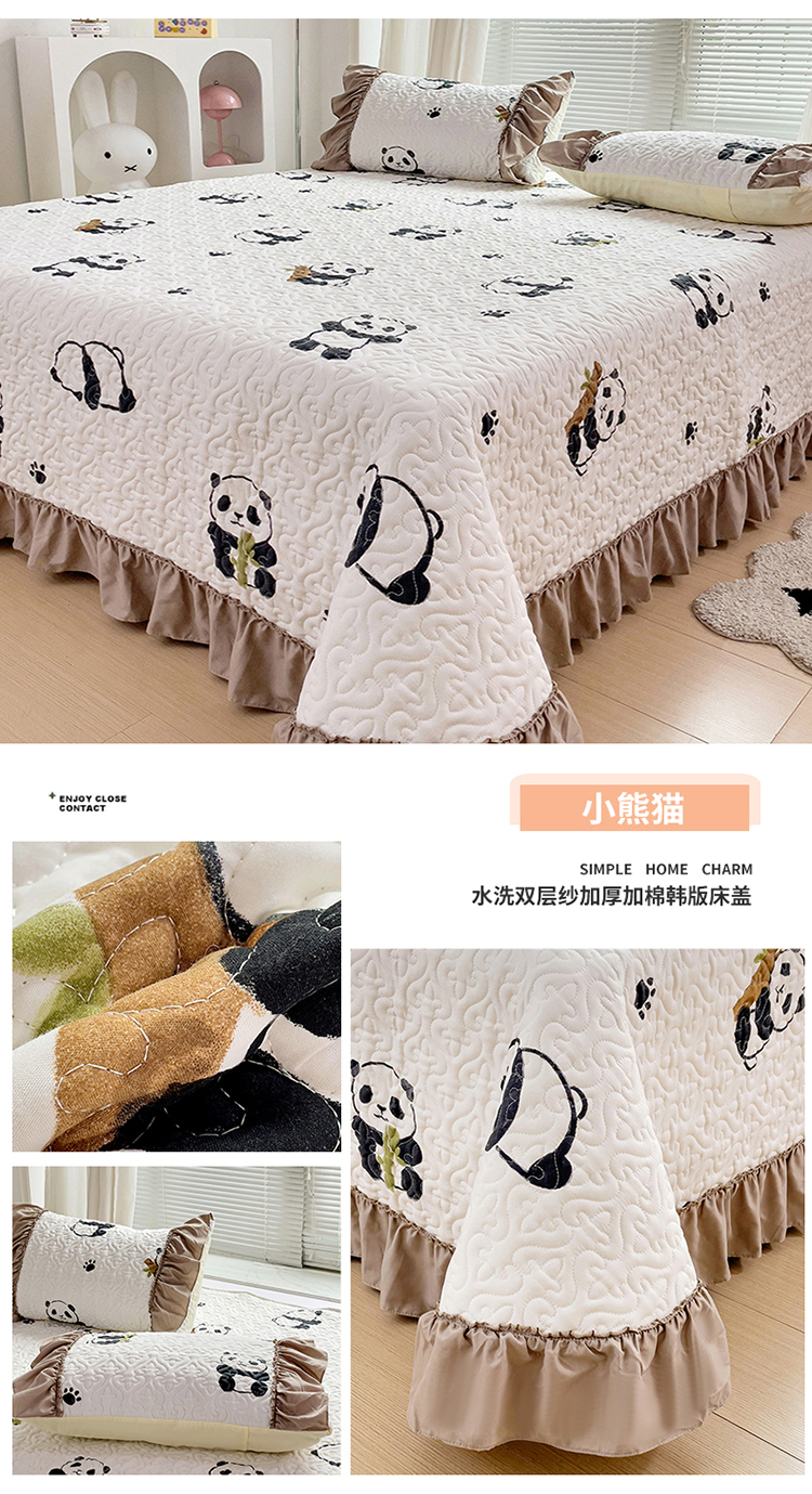 商品名称:纽缦家纺 2024水洗双层纱加厚加棉韩版床盖 小熊猫