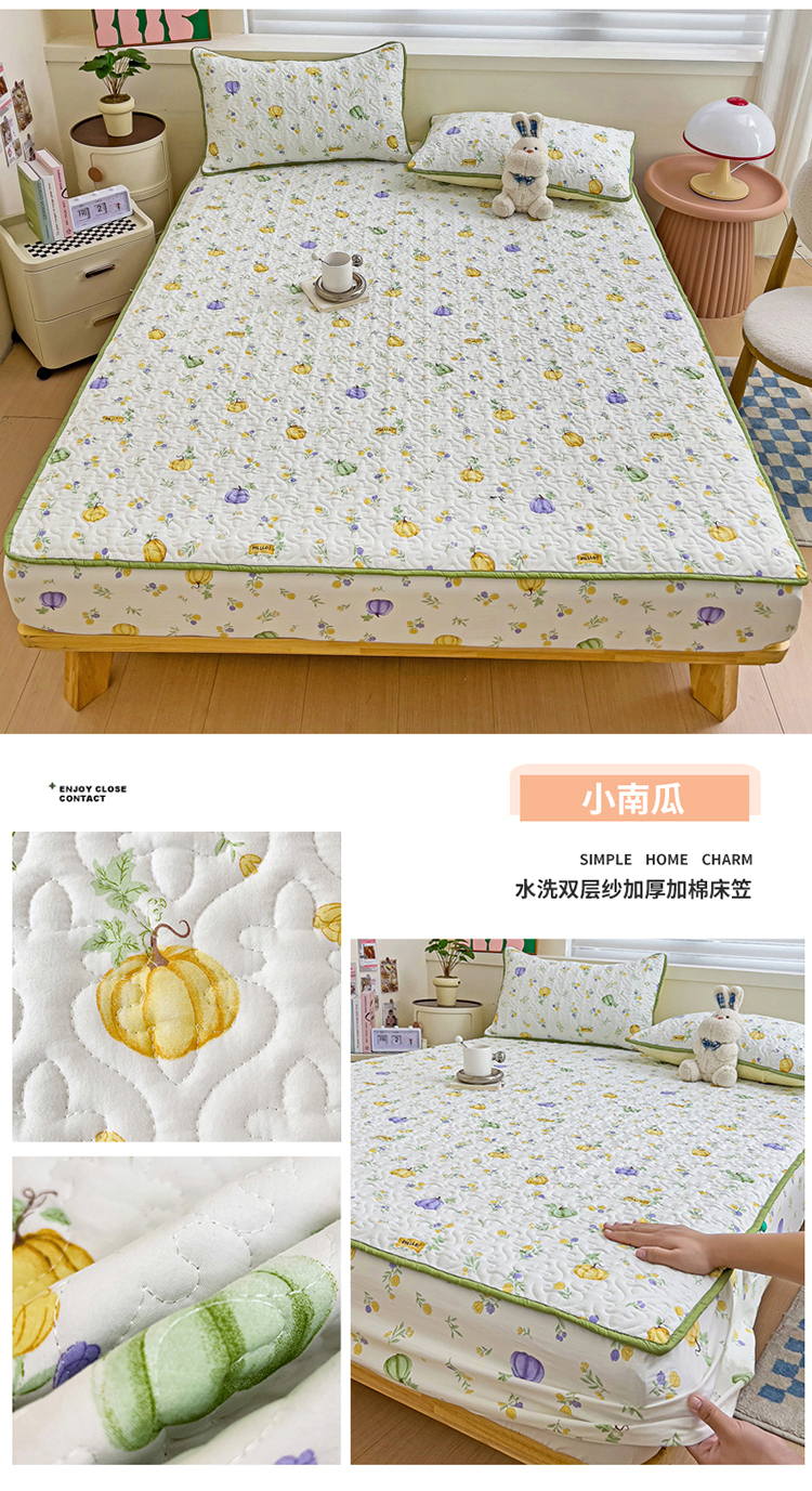 纽缦家纺 水洗双层纱加厚加棉床笠-床垫保护套 小南瓜