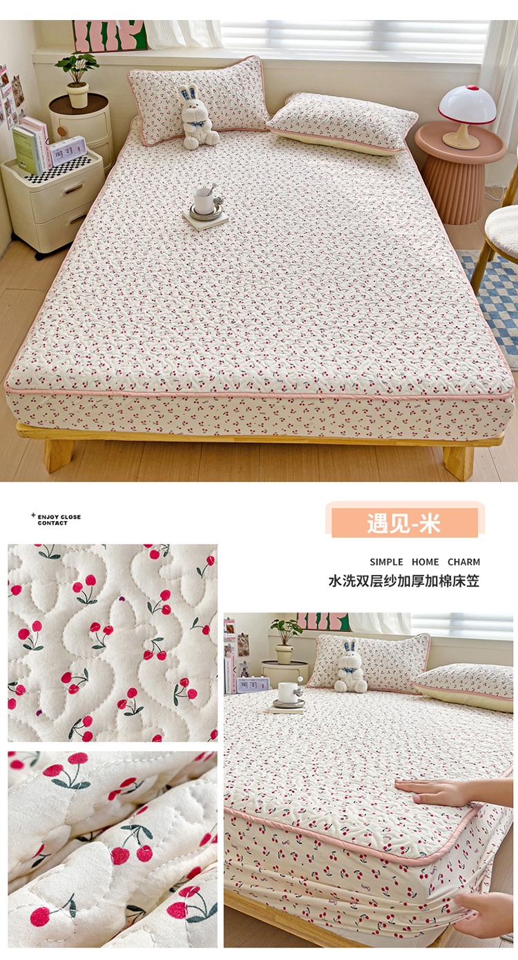纽缦家纺 水洗双层纱加厚加棉床笠-床垫保护套 遇见-米