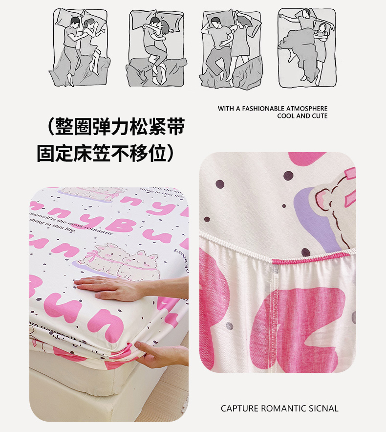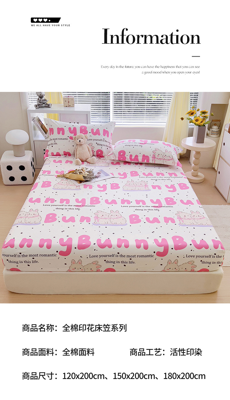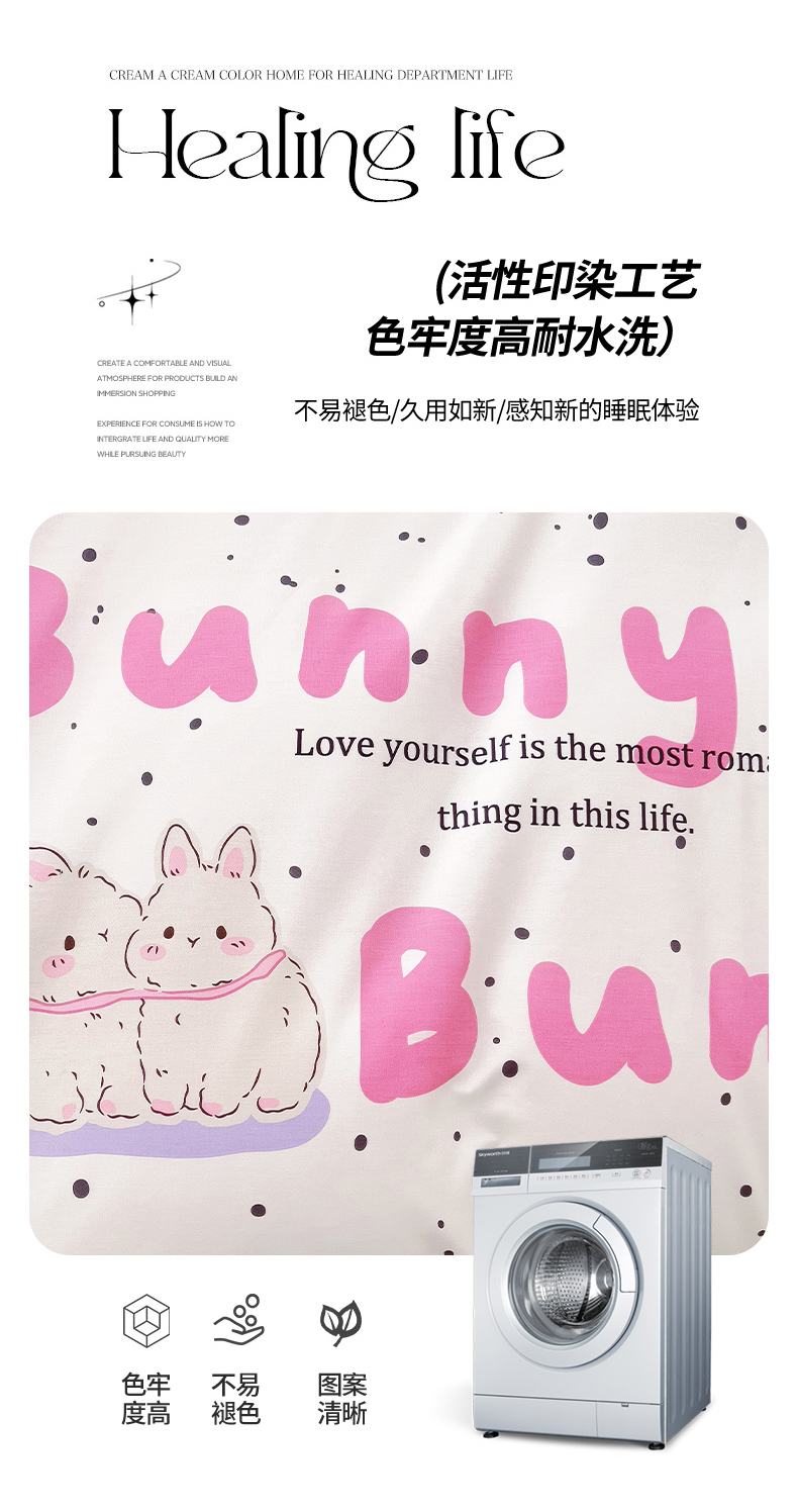 • 91家纺网 家纺一手货源 找家纺 锦罗绣 2024新款13372全棉印花单品床笠 情侣兔