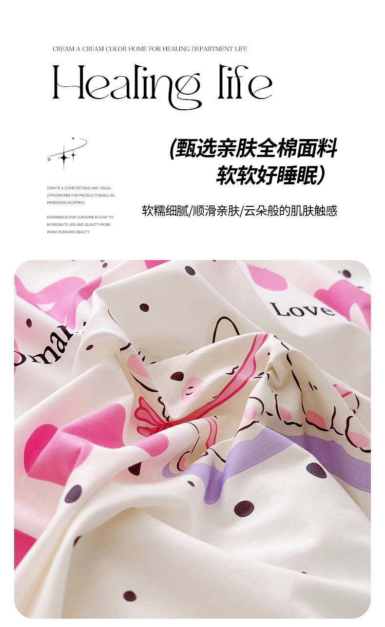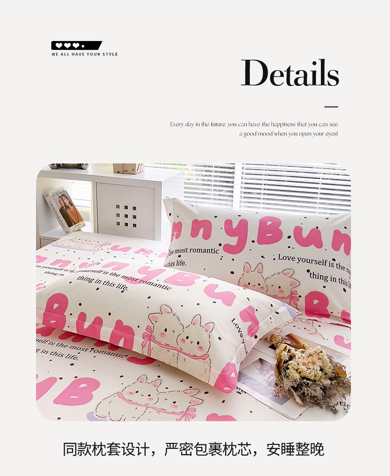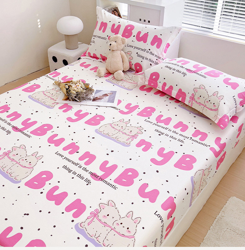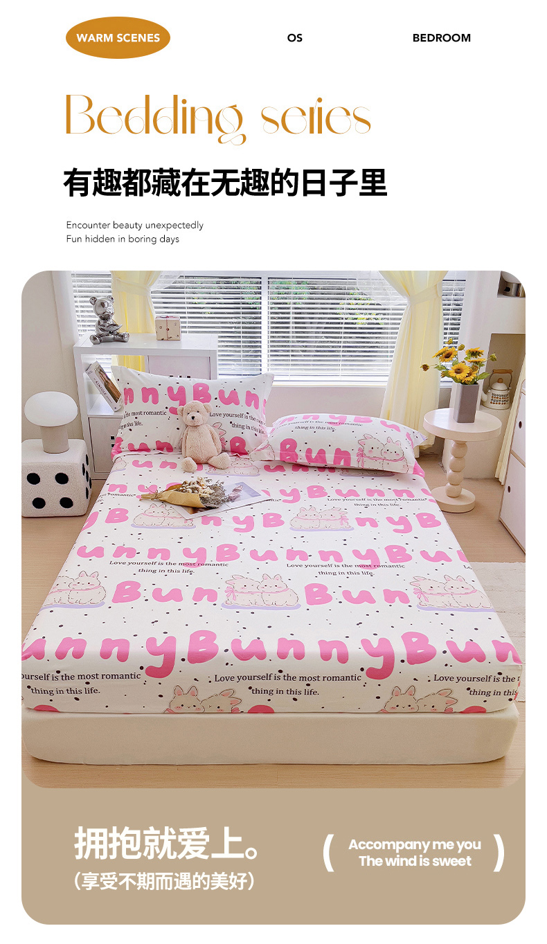• 91家纺网 家纺一手货源 找家纺 锦罗绣 2024新款13372全棉印花单品床笠 情侣兔