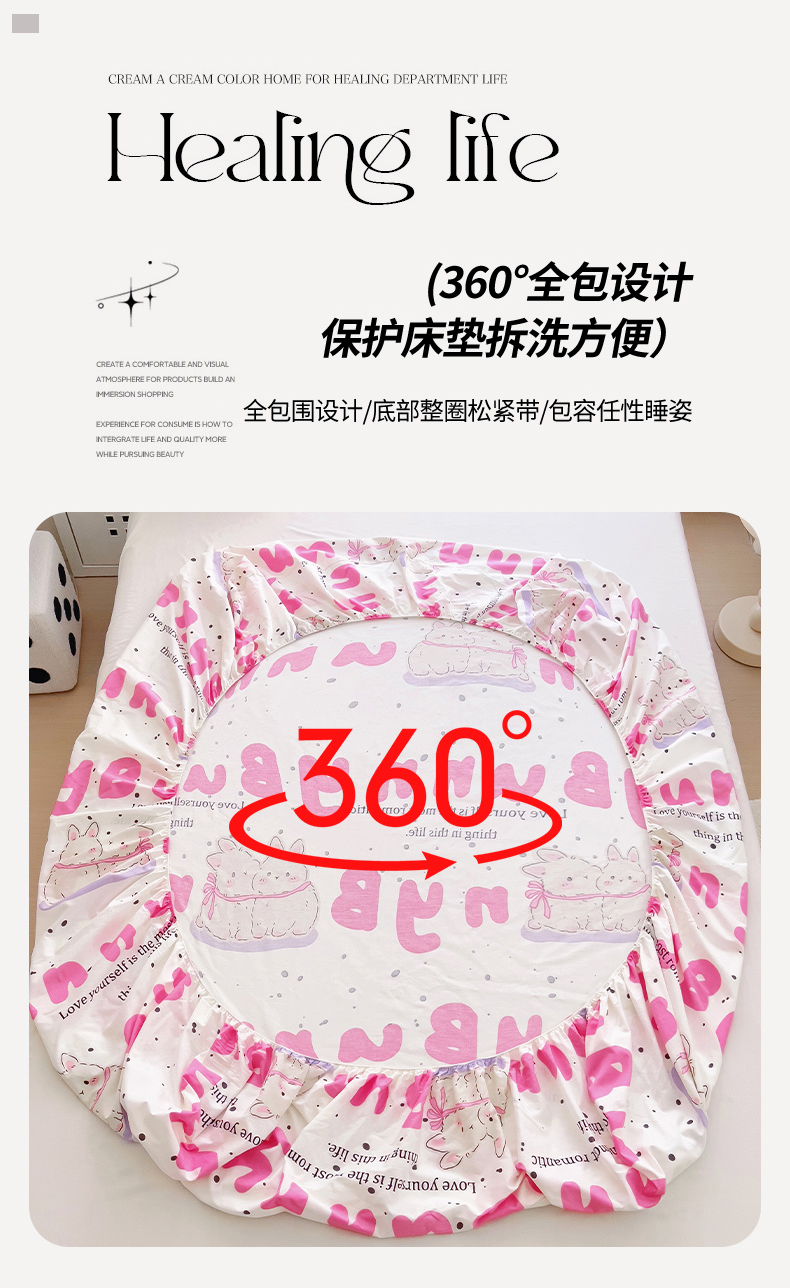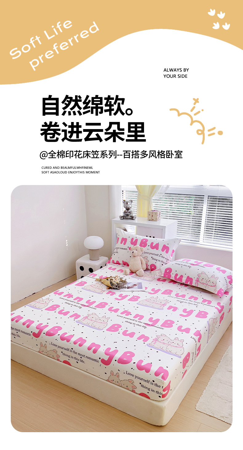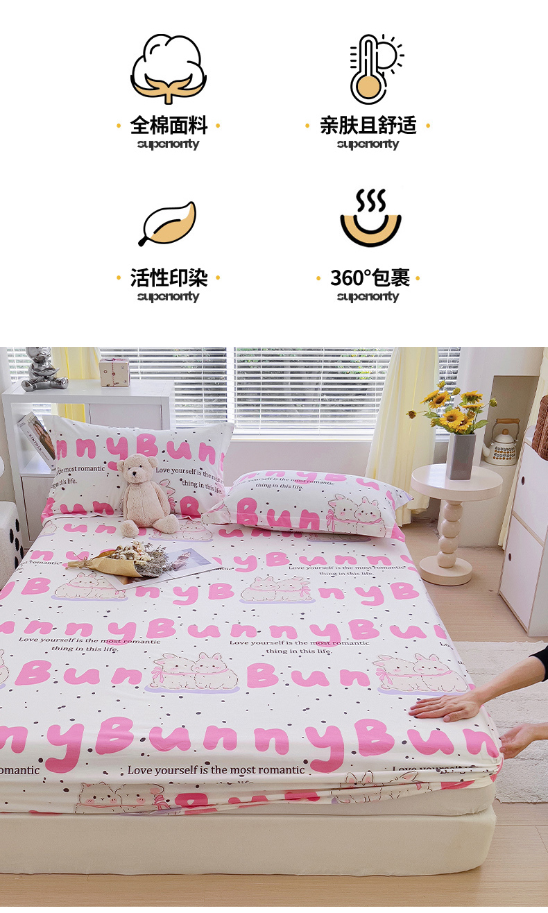 锦罗绣 2024新款13372全棉印花单品床笠 情侣兔