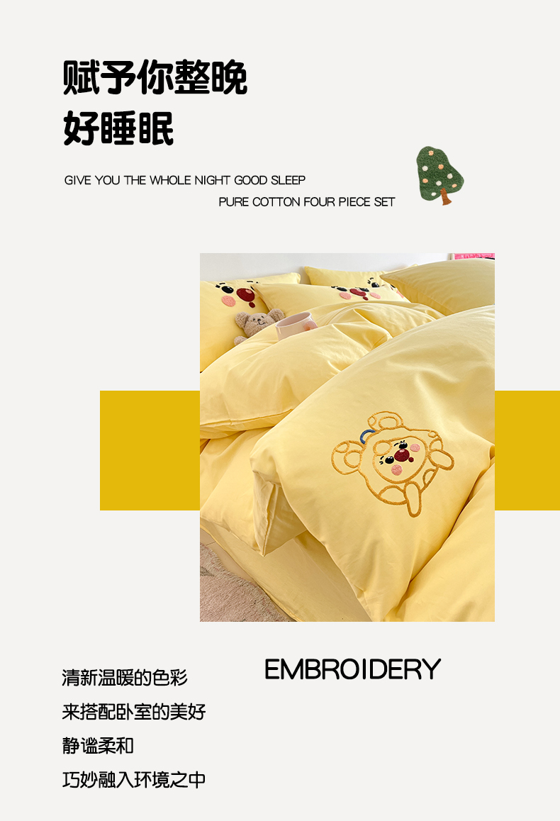 商品名称:琪格格2024新款纯棉毛巾绣四件套 调皮芝士奶黄