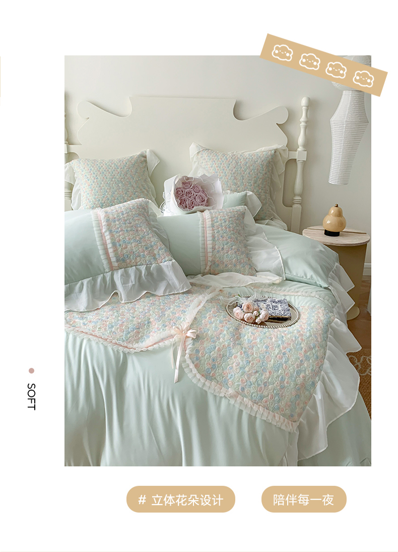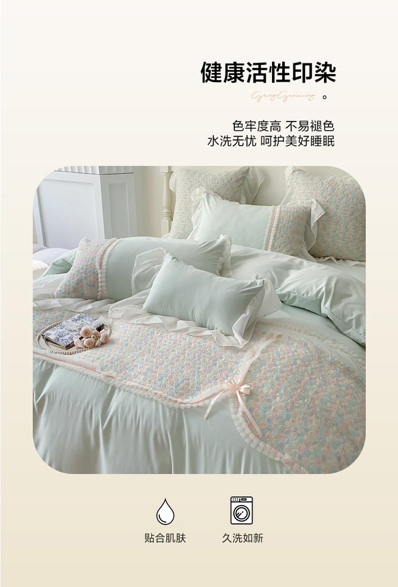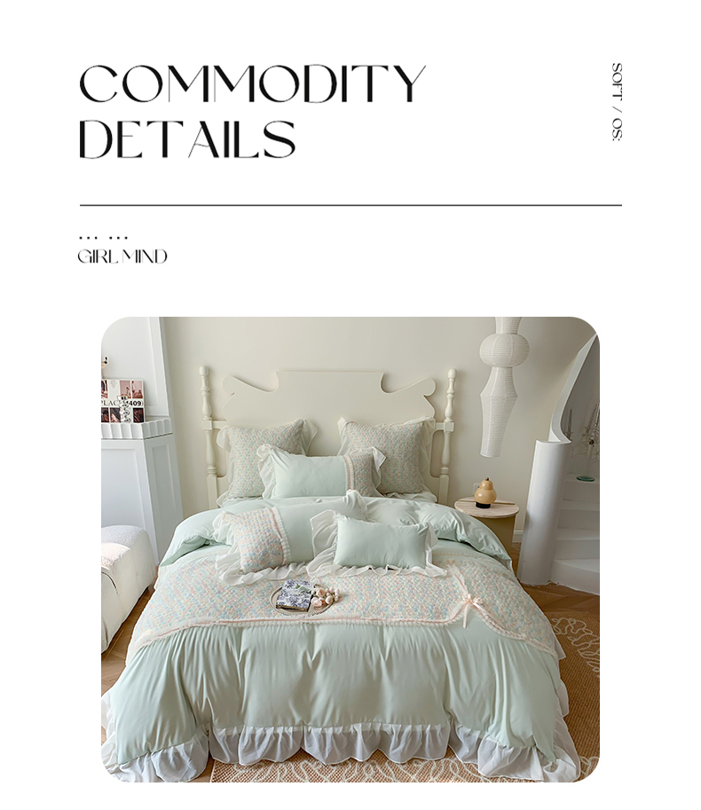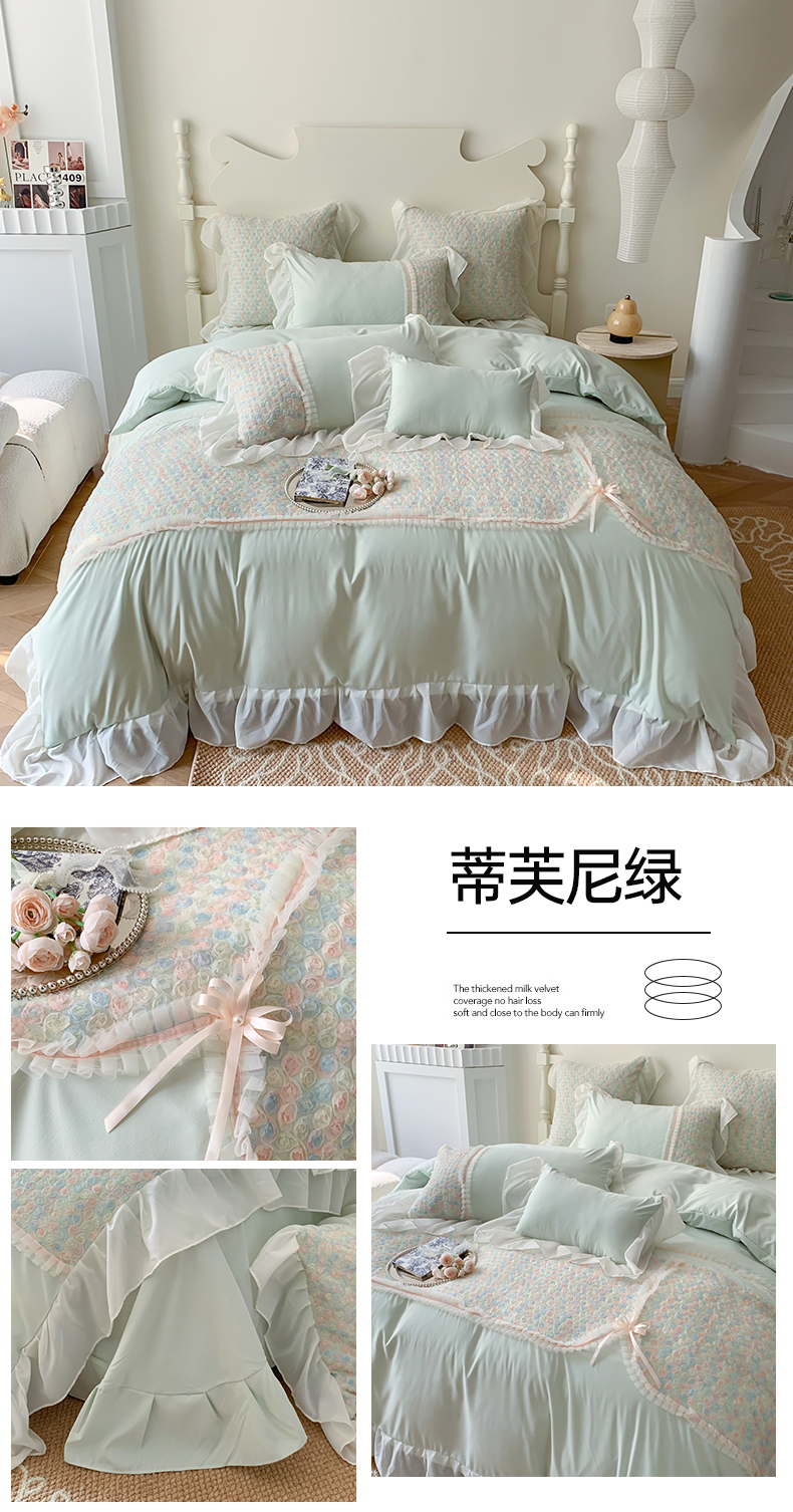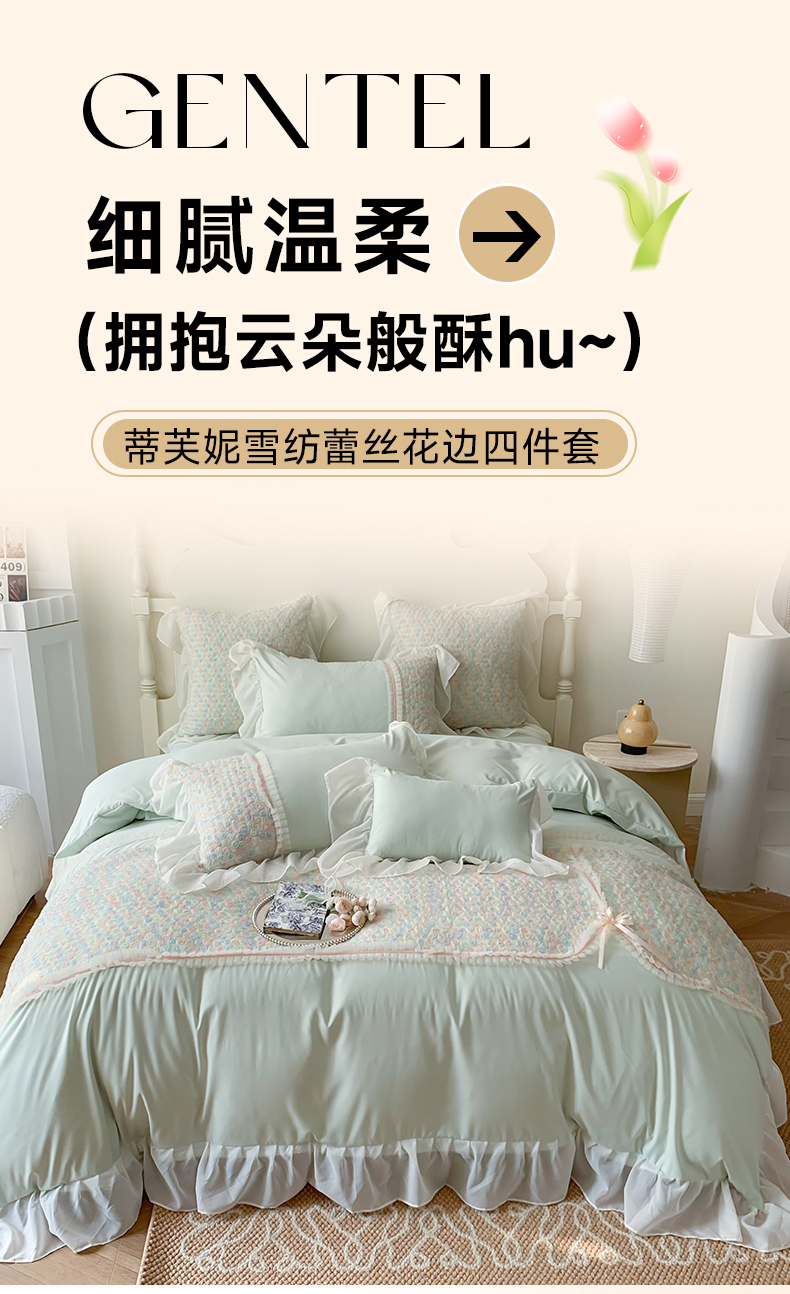 商品名称:吾欢心 2025新款蒂芙妮雪纺蕾丝花边四件套 蒂芙尼绿