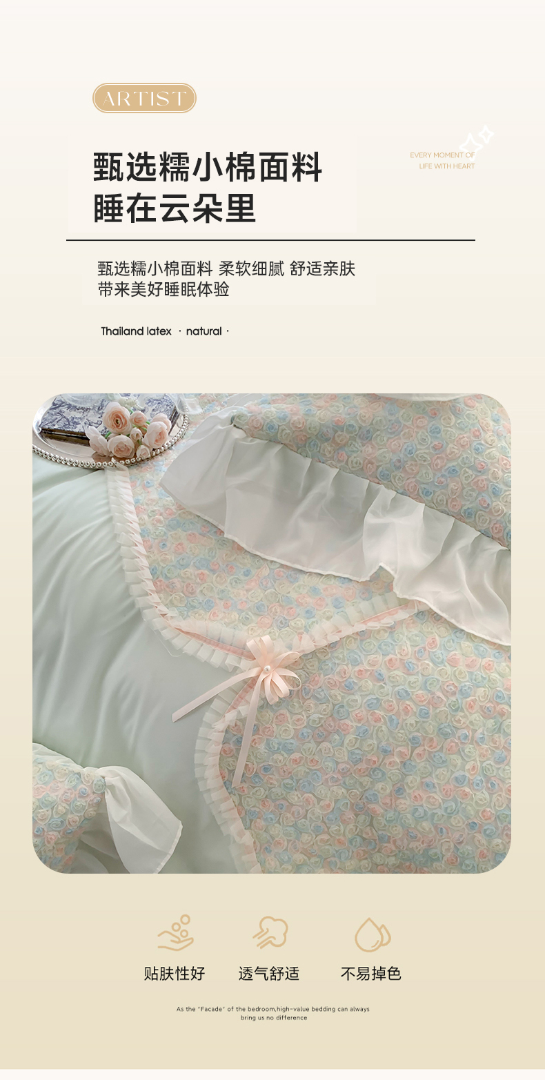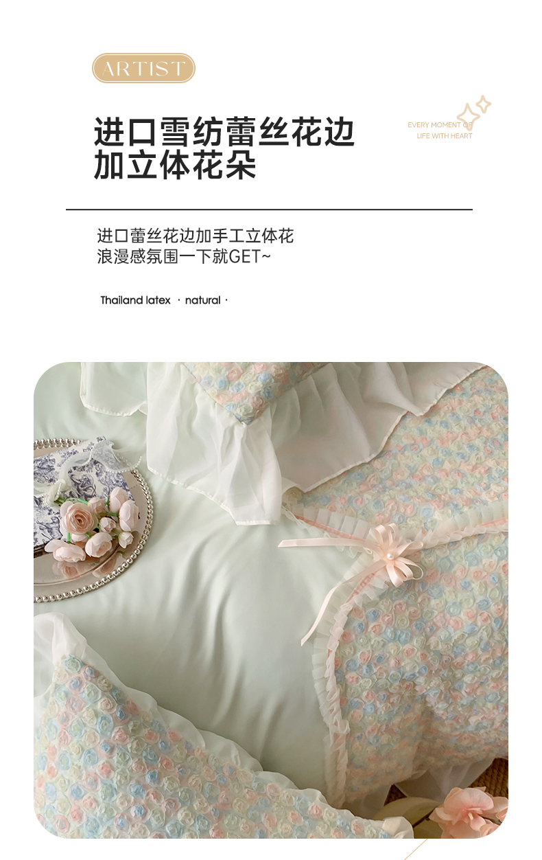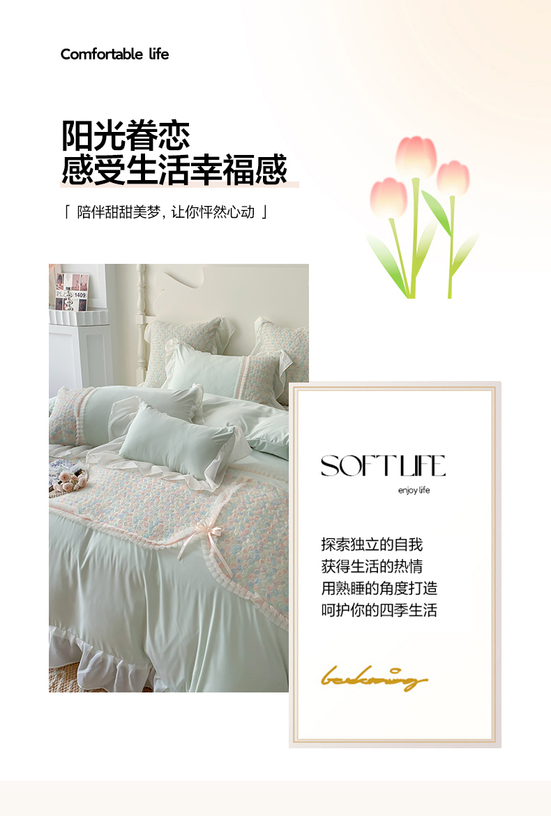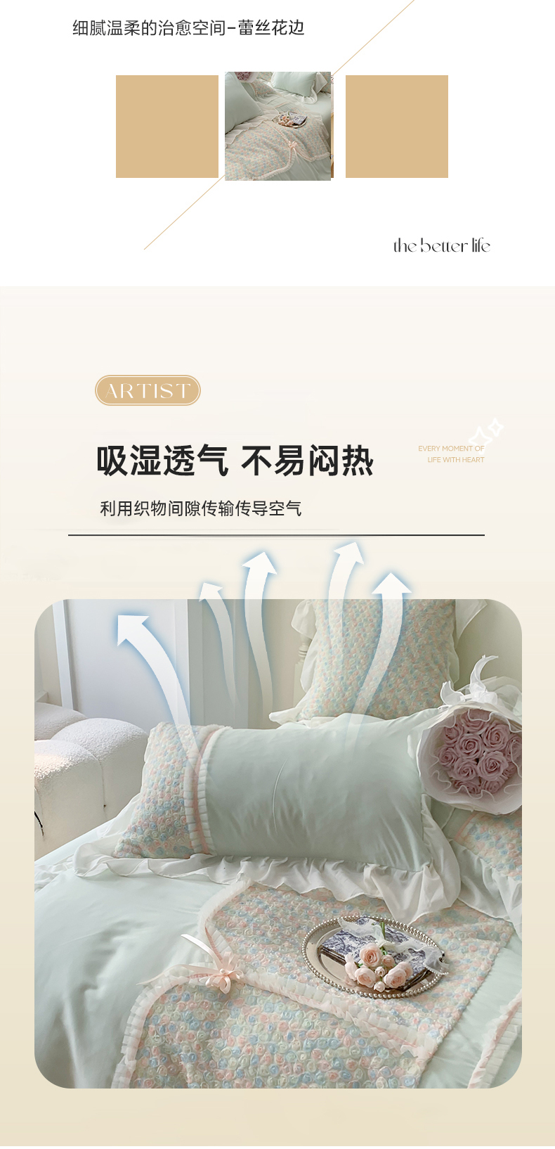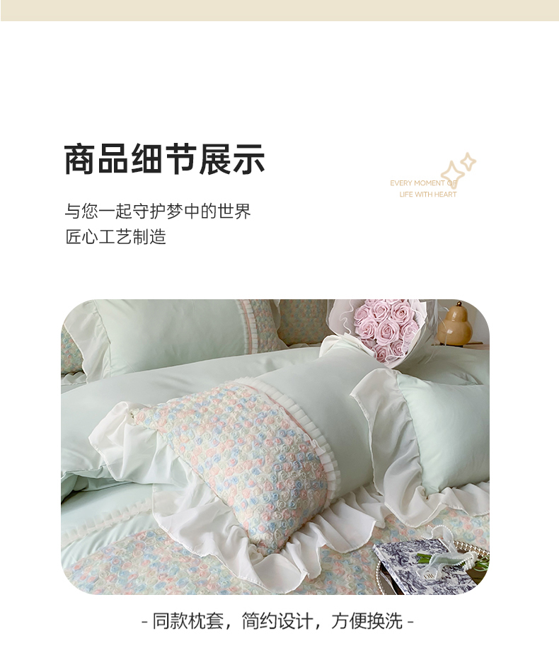 商品名称:吾欢心 2025新款蒂芙妮雪纺蕾丝花边四件套 蒂芙尼绿