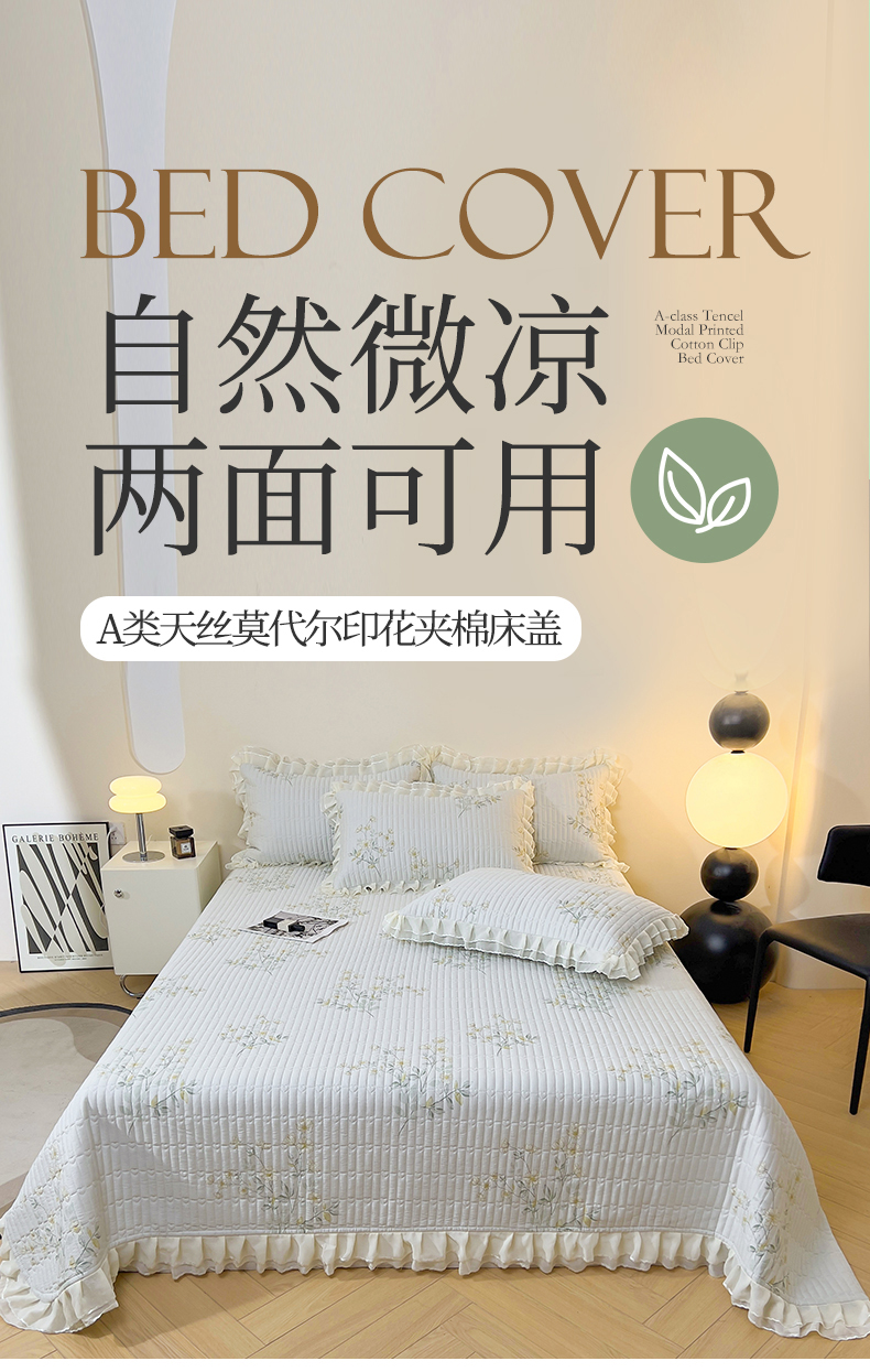 (总)宜凡家纺 2024新款莫代尔印花床盖三件套(两面可用)