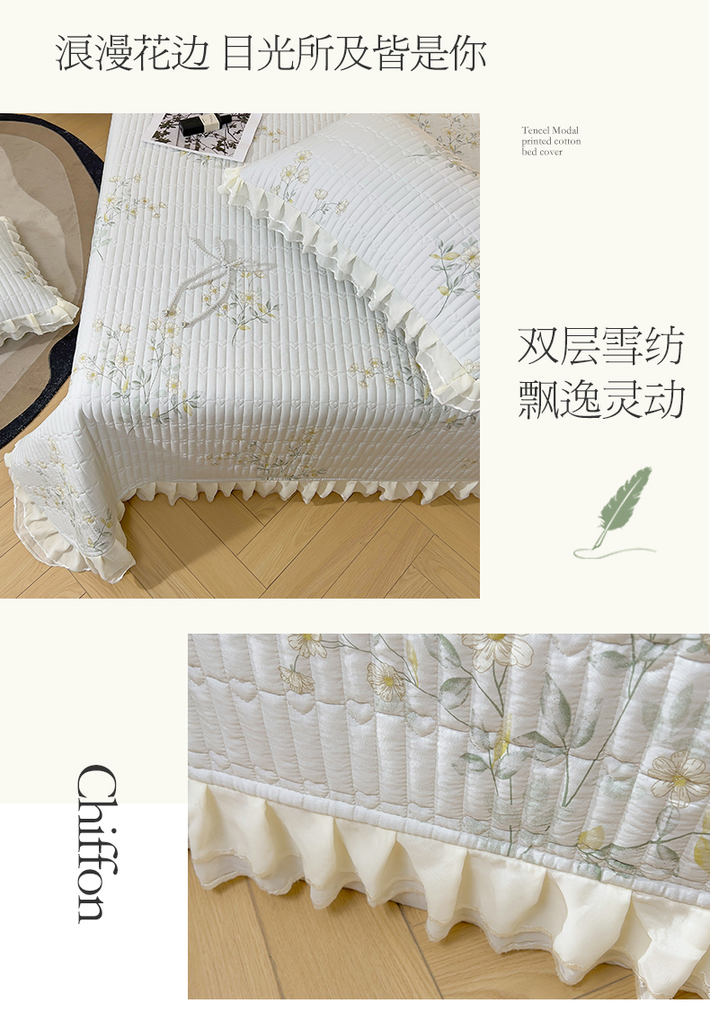(总)宜凡家纺 2025新款全棉数码印花床裙三件套系列一,静若幽兰,浮云织梦,梦幻花园,陌上花开