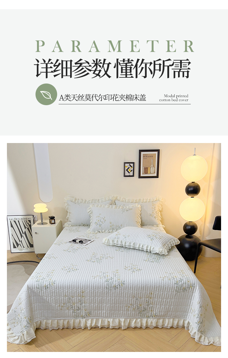 商品名称:(总)宜凡家纺 2024新款莫代尔印花床盖三件套(两面可用)