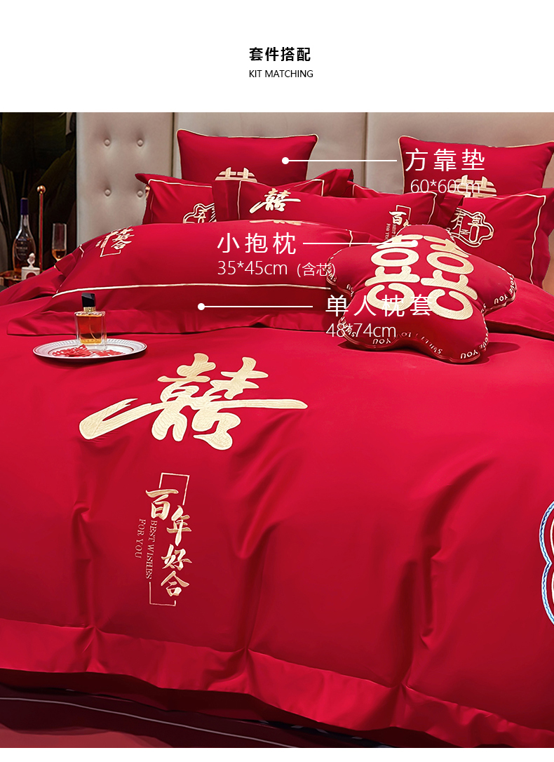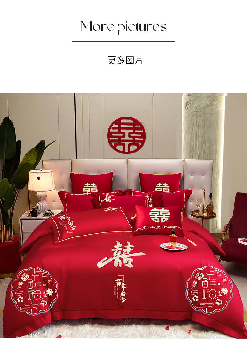 商品名称:甜咪咪2024春夏新款天丝棉磨毛婚庆四件套多件套 百年好合