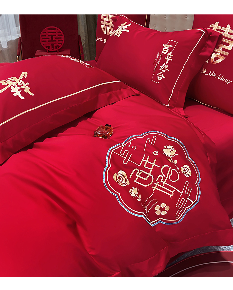 (总)甜咪咪婚庆 2025新款50支长绒棉全棉婚庆床单床盖四件套多件套刺绣工艺,洛可可,爱恋小熊,爱意久久,多子多福,花田喜事,节节高升,克拉恋人,浪漫情怀,怦然心动红,怦然心动玉,甜心玫瑰,温莎公主,伊甸园,醉红妆