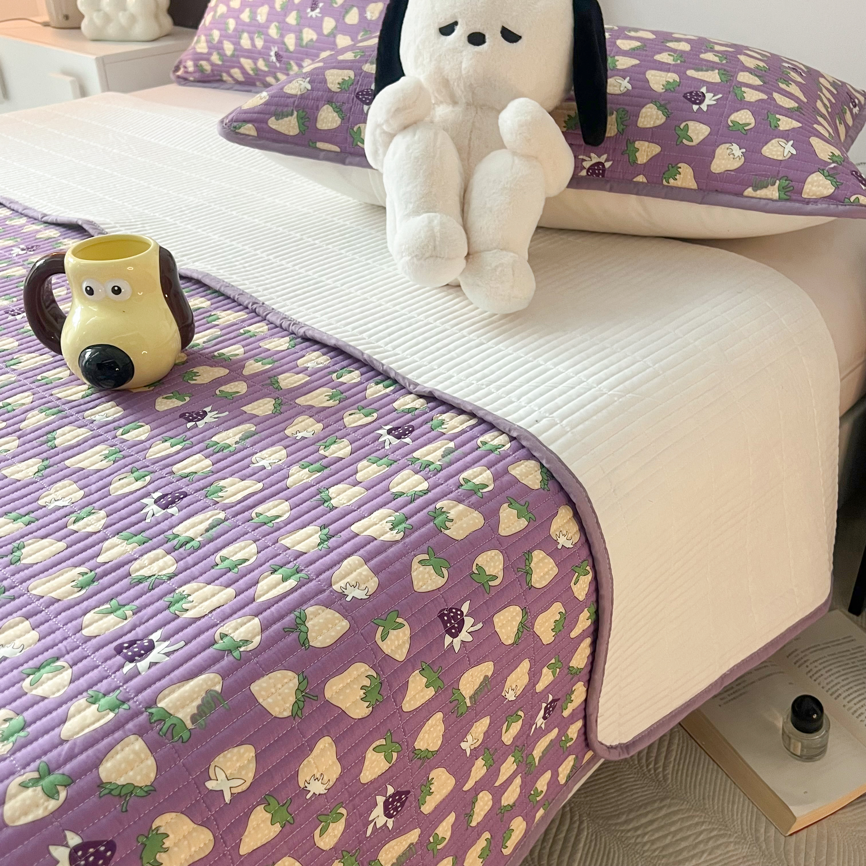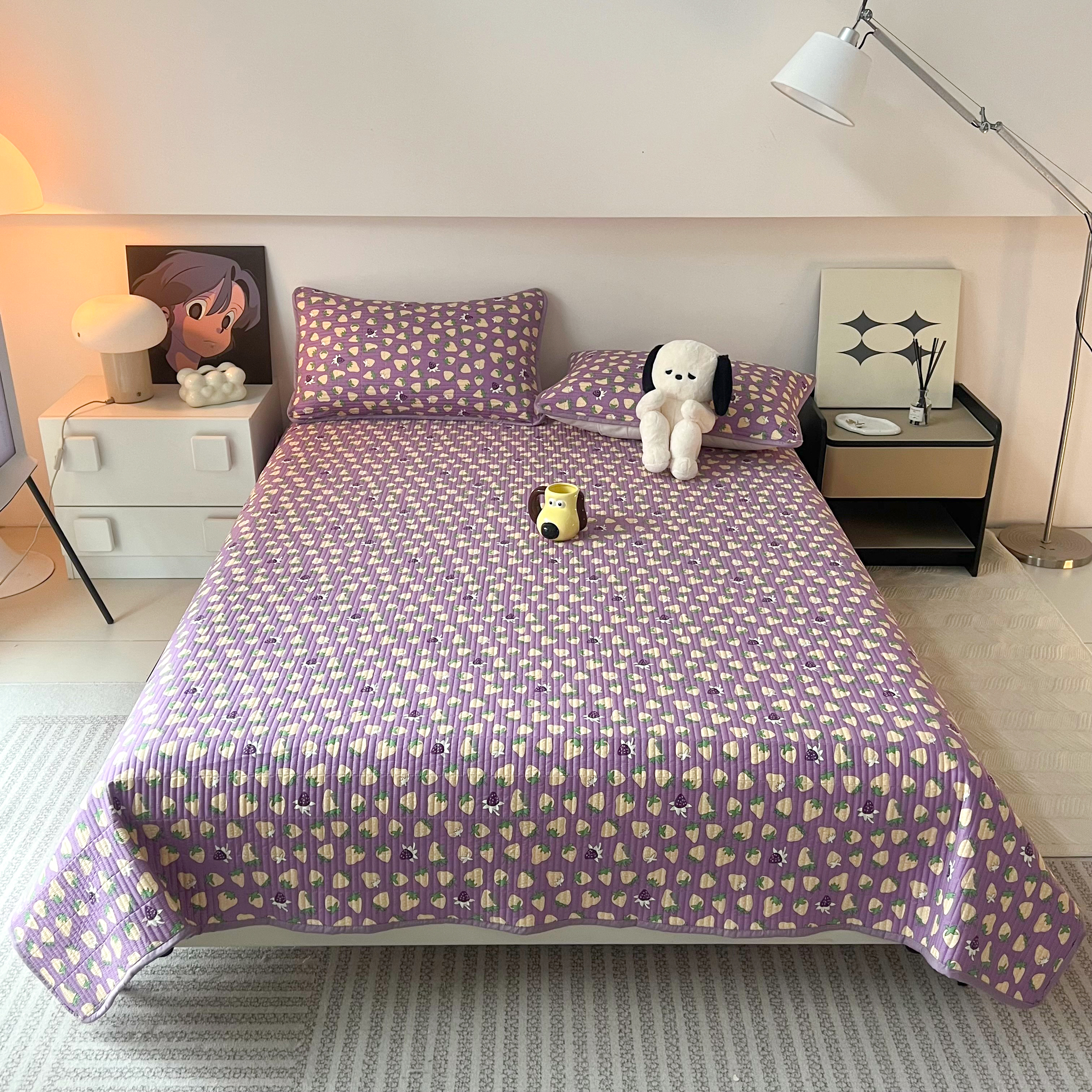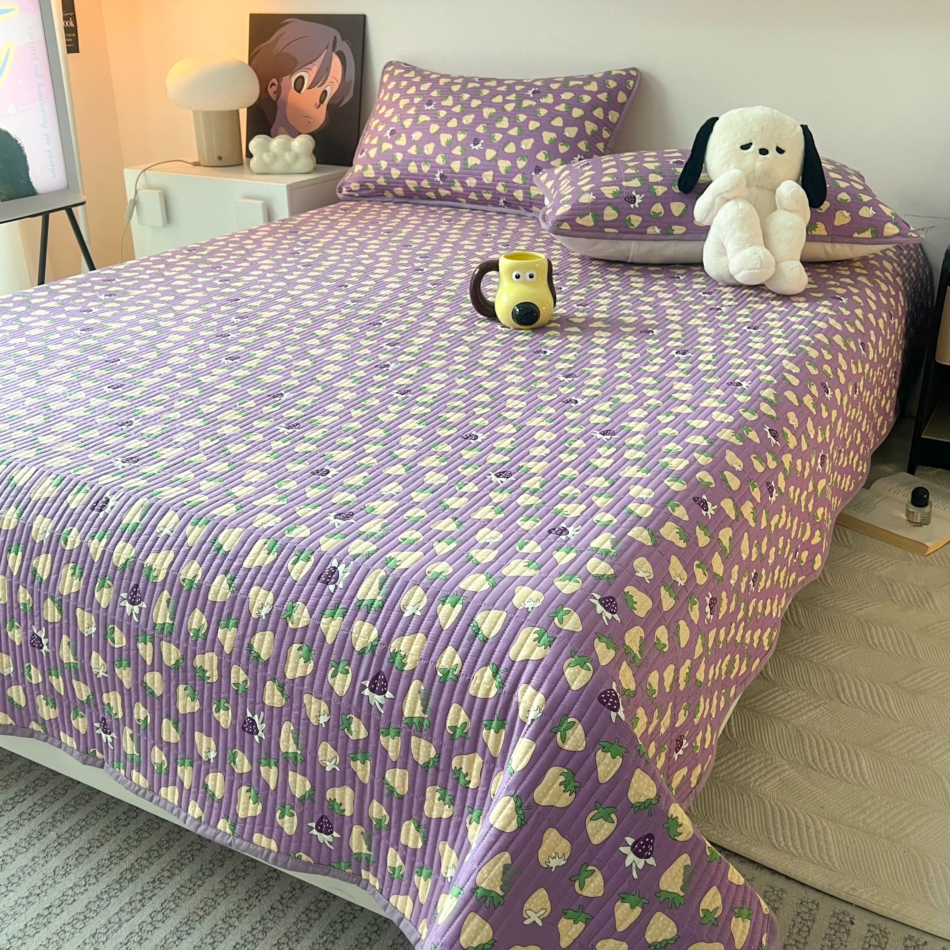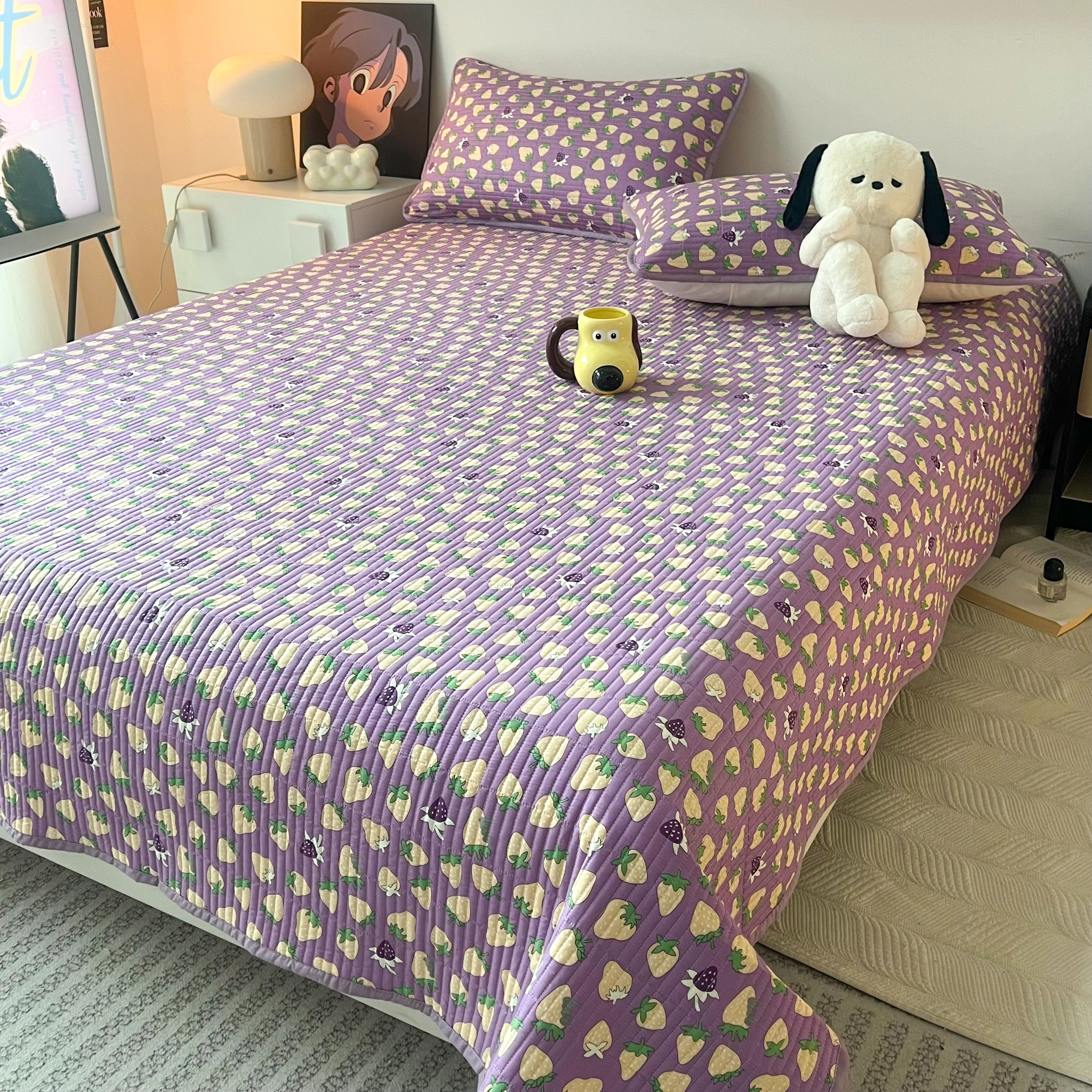 HL原创 2024新款全棉印花床盖 紫色草莓