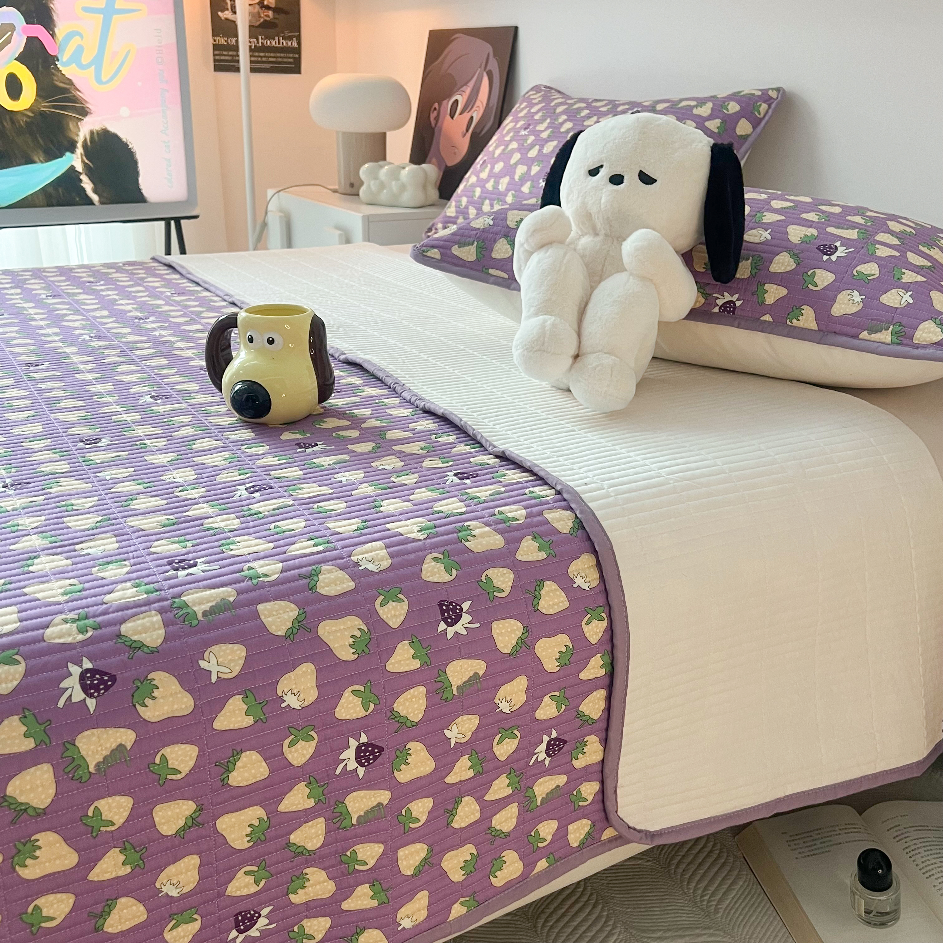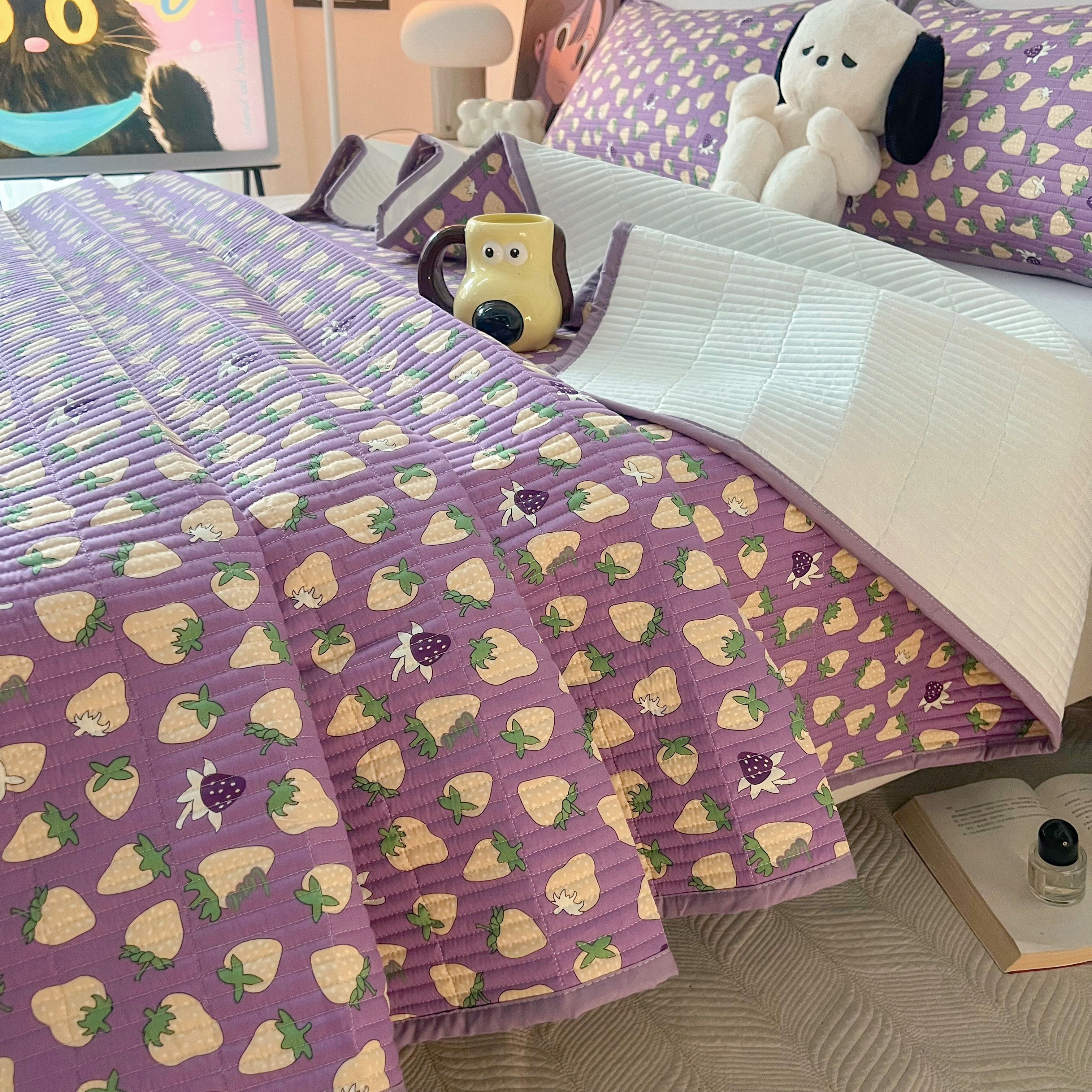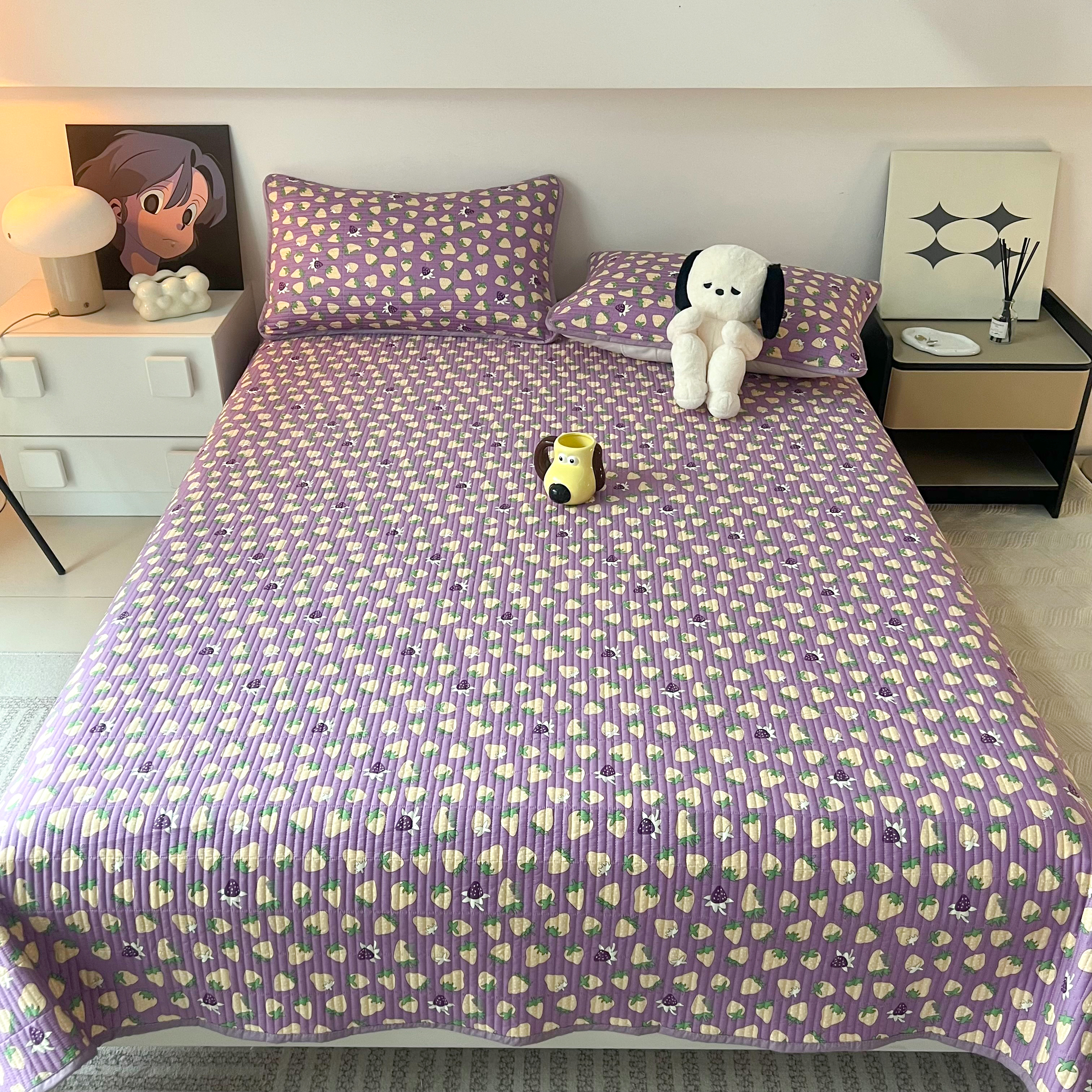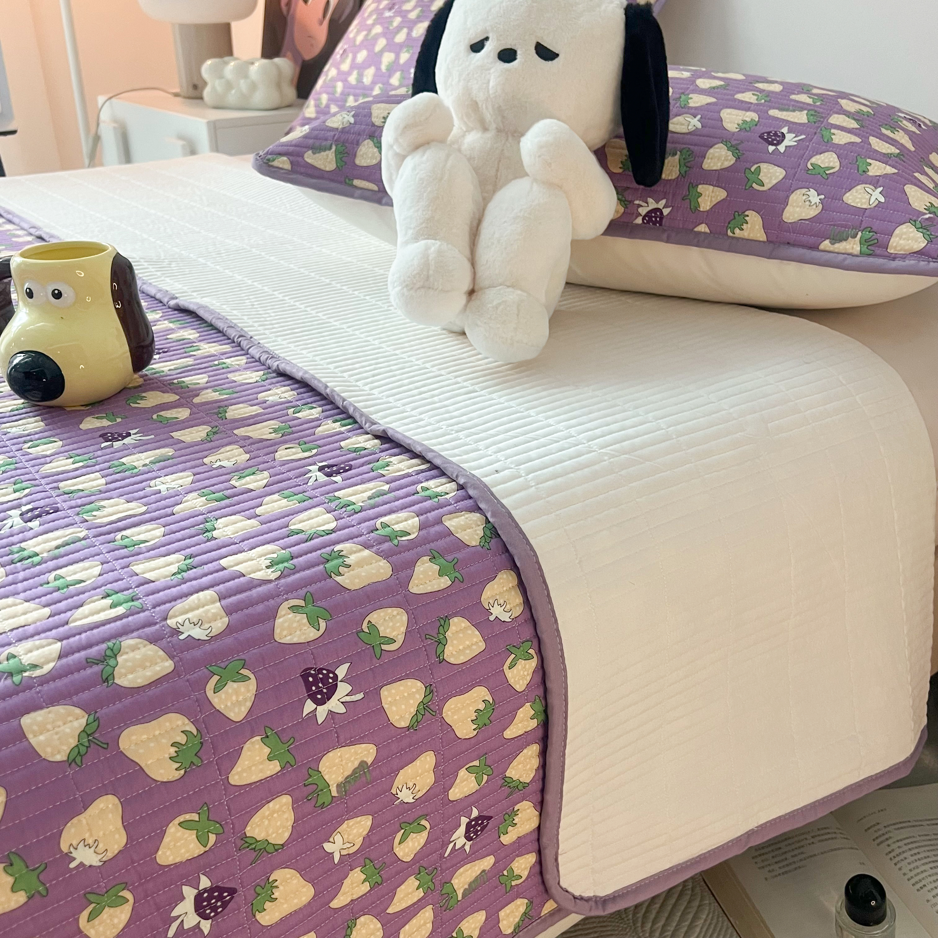 HL原创 2024新款全棉印花床盖 紫色草莓