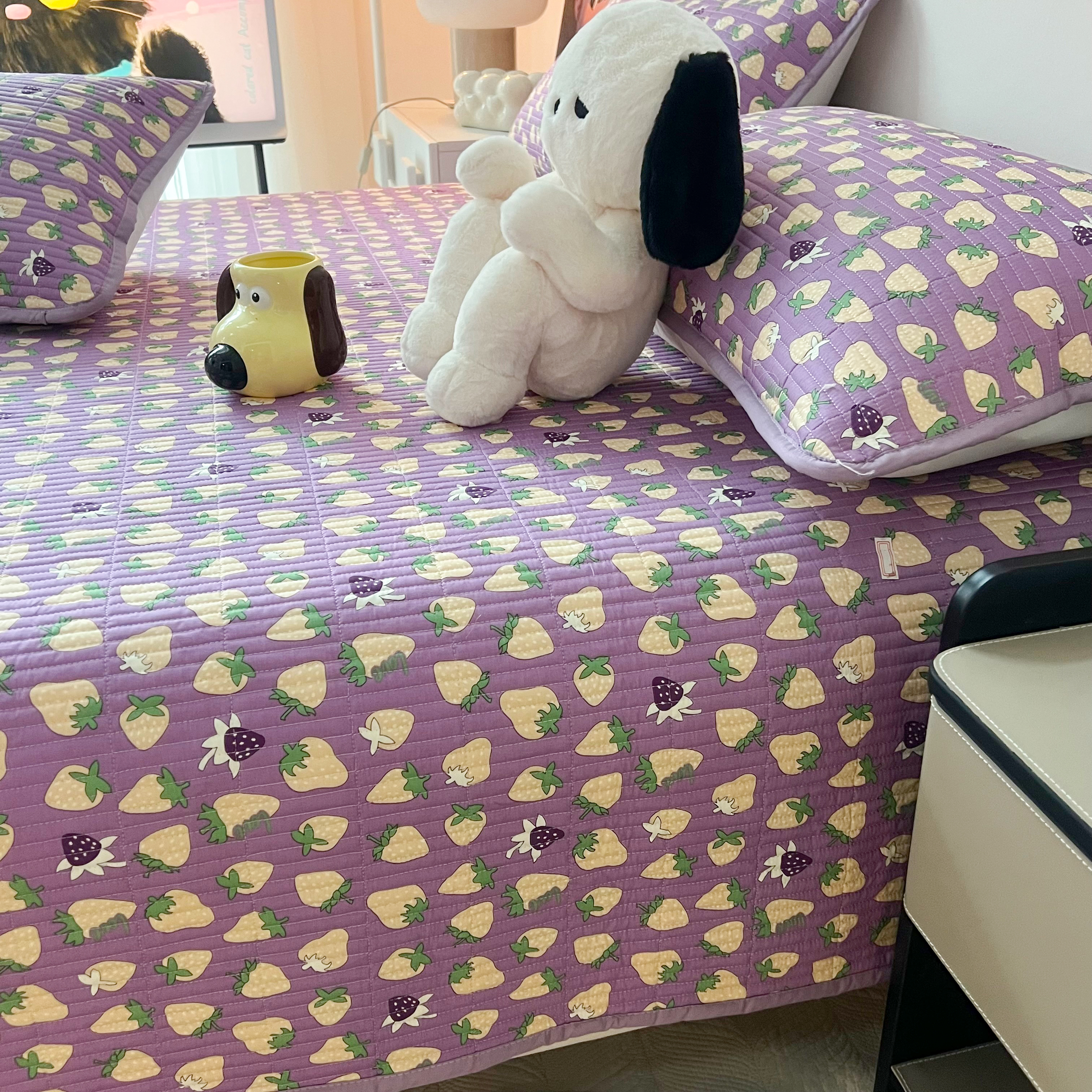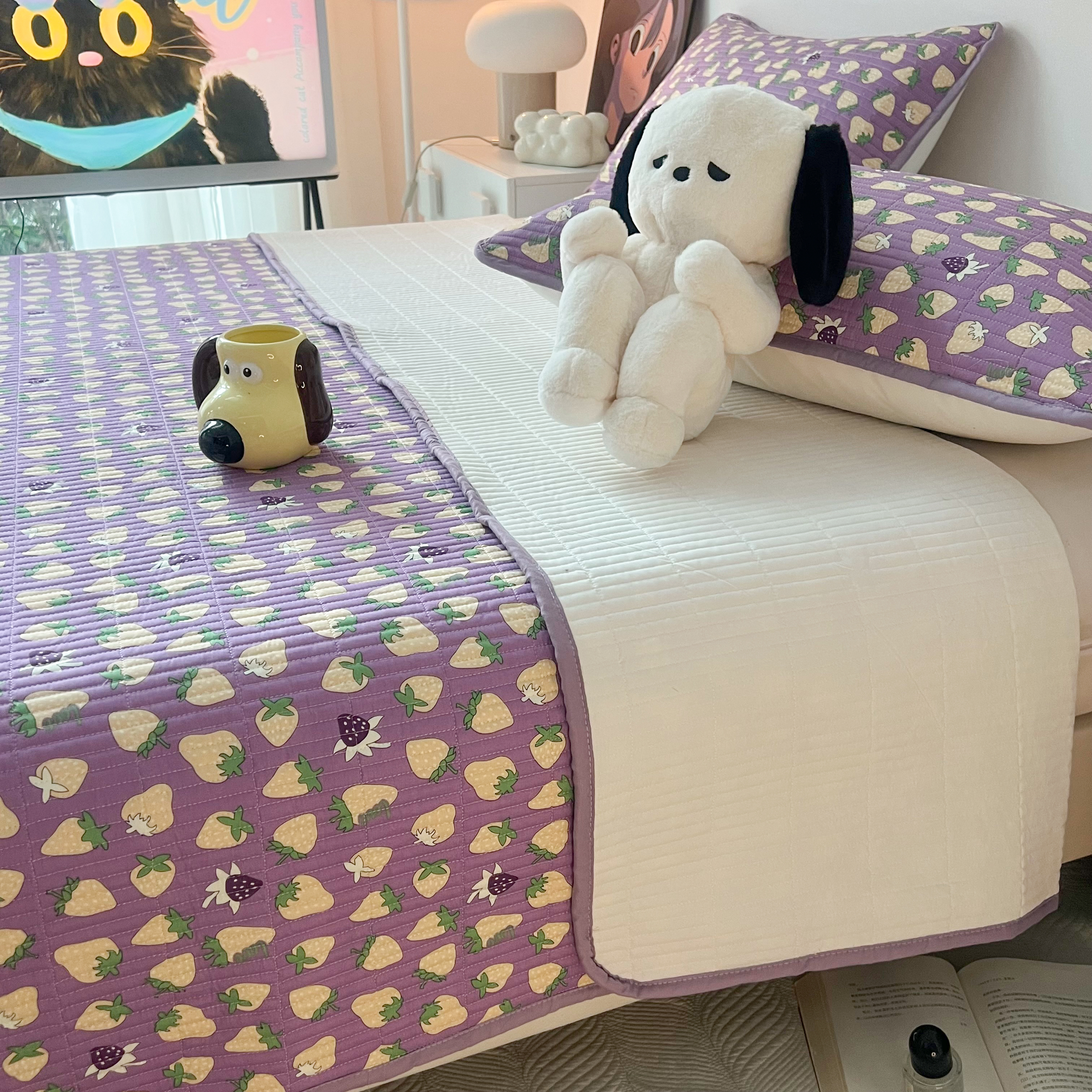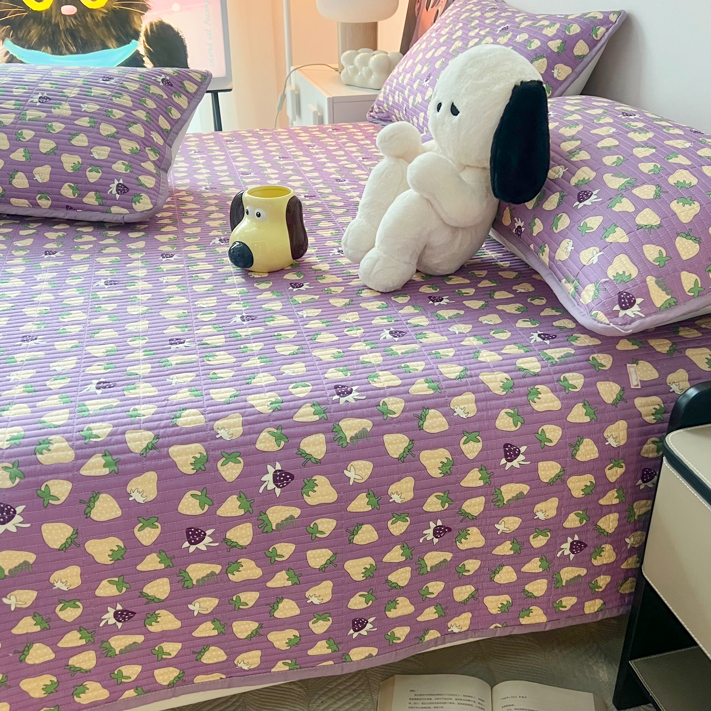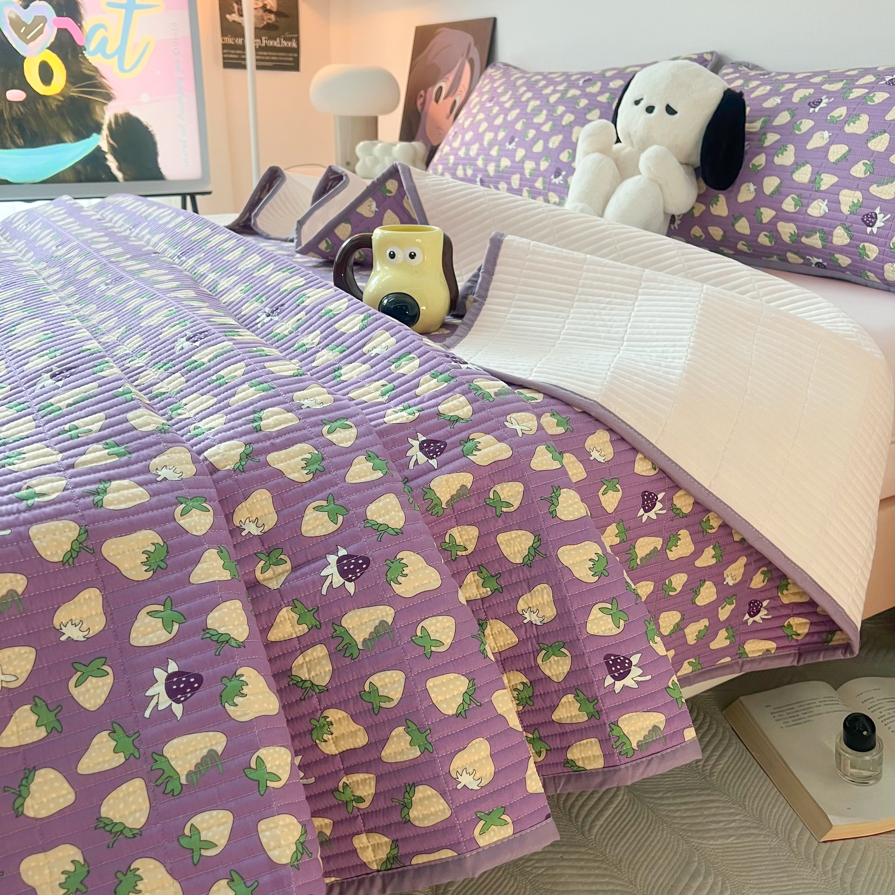HL原创 2024新款全棉印花床盖 紫色草莓