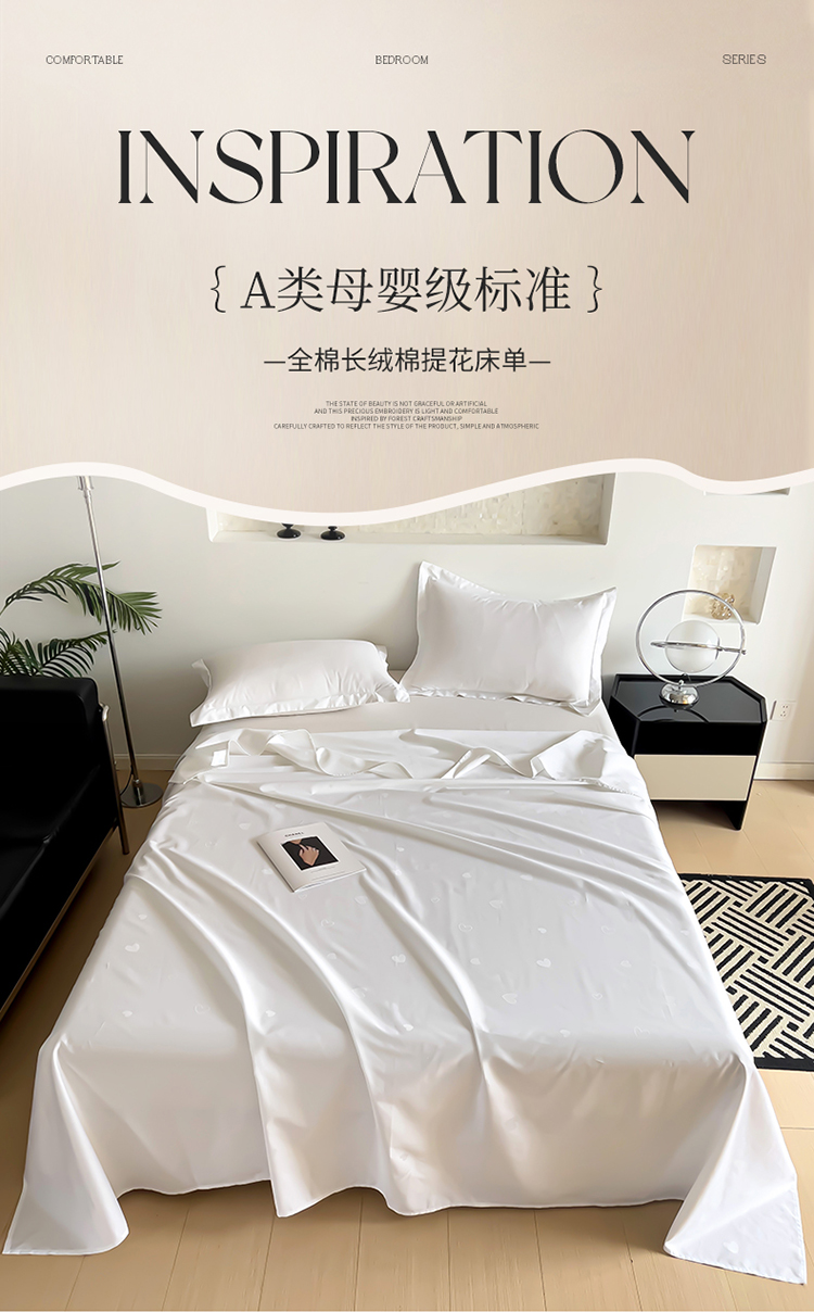 品乐家纺 2024新款100支长绒棉提花床单 音色白