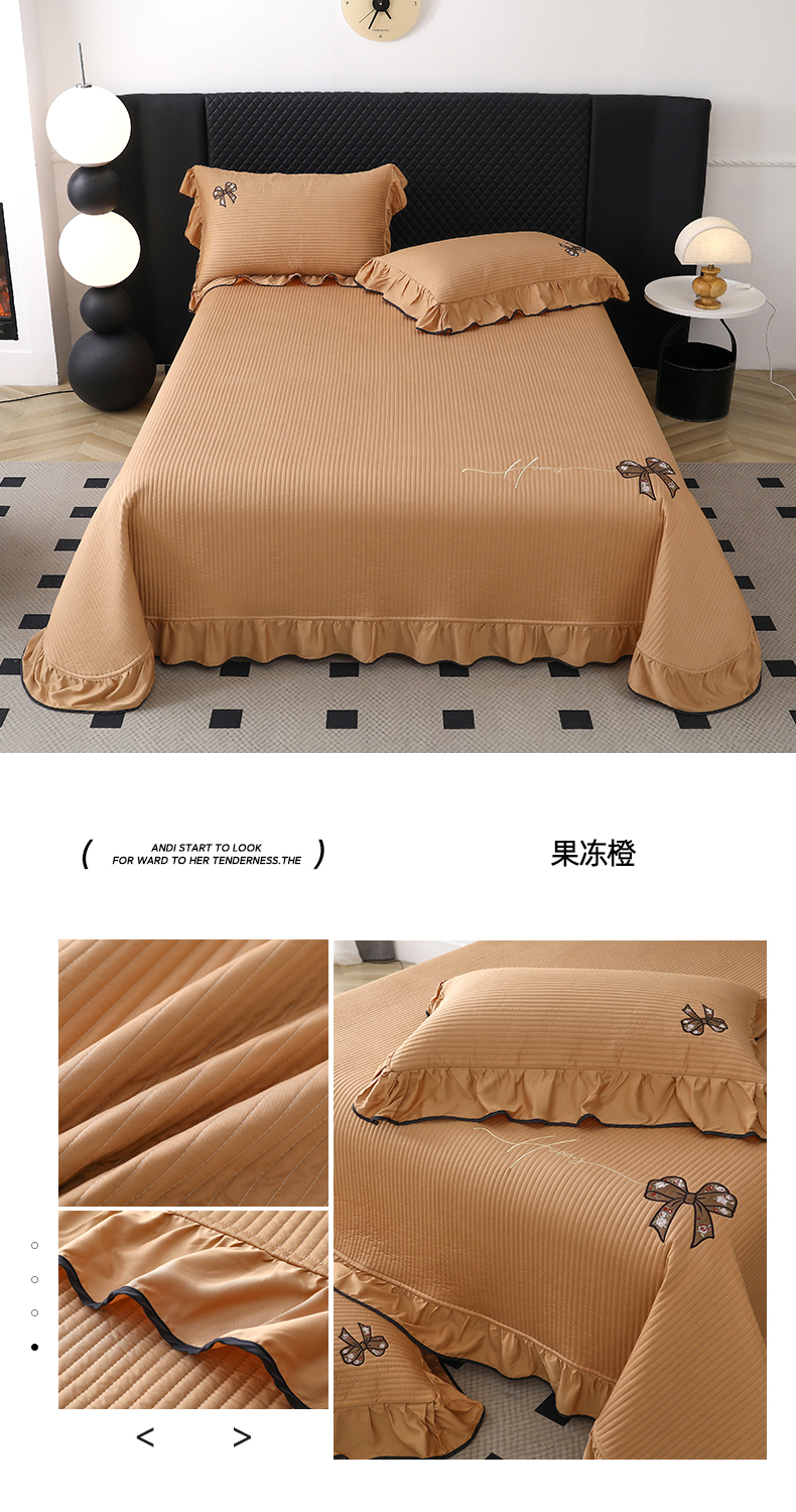 商品名称:上喜 热卖天丝夹棉床盖系列- 蝴蝶结床盖 果冻橙