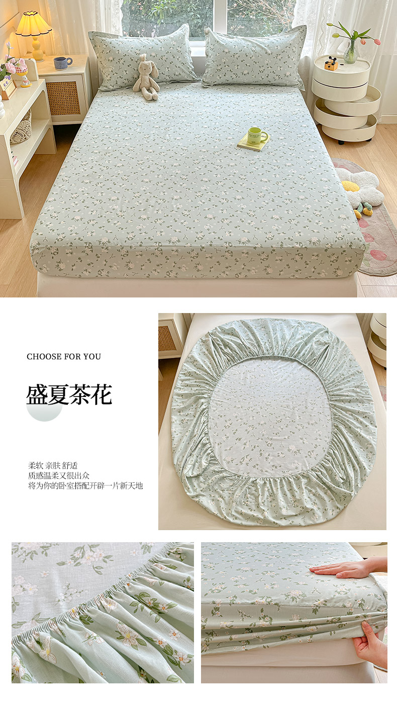 商品名称:绵庭家纺 2024新款AB版12868全棉印花单床笠 盛夏茶花