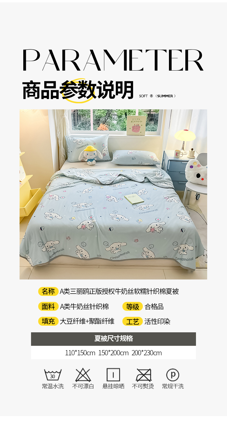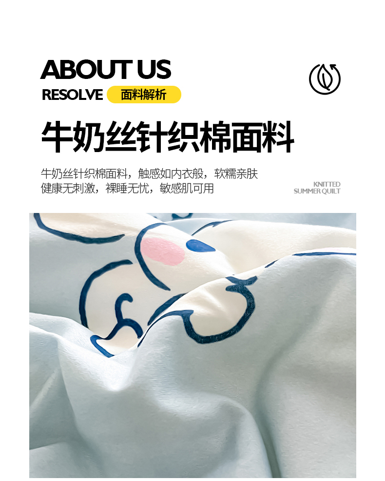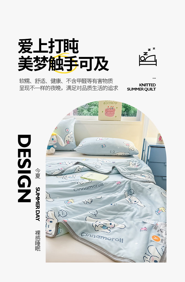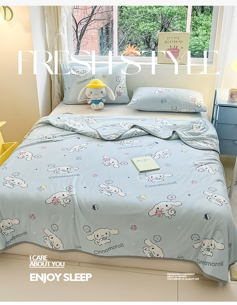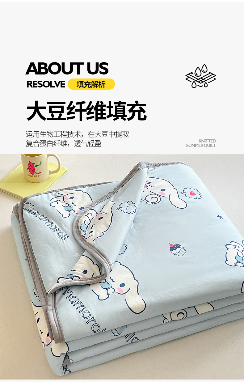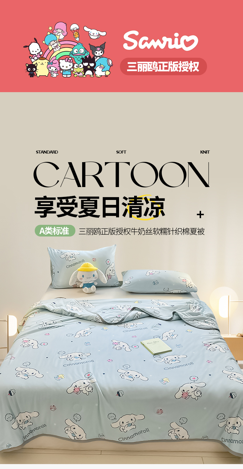 • 91家纺网 家纺一手货源 找家纺 金爱家 2024新款A类三丽鸥正版授权高品质牛奶丝软糯针织棉夏被系列 针织棉三丽鸥-牛奶甜点玉桂狗
