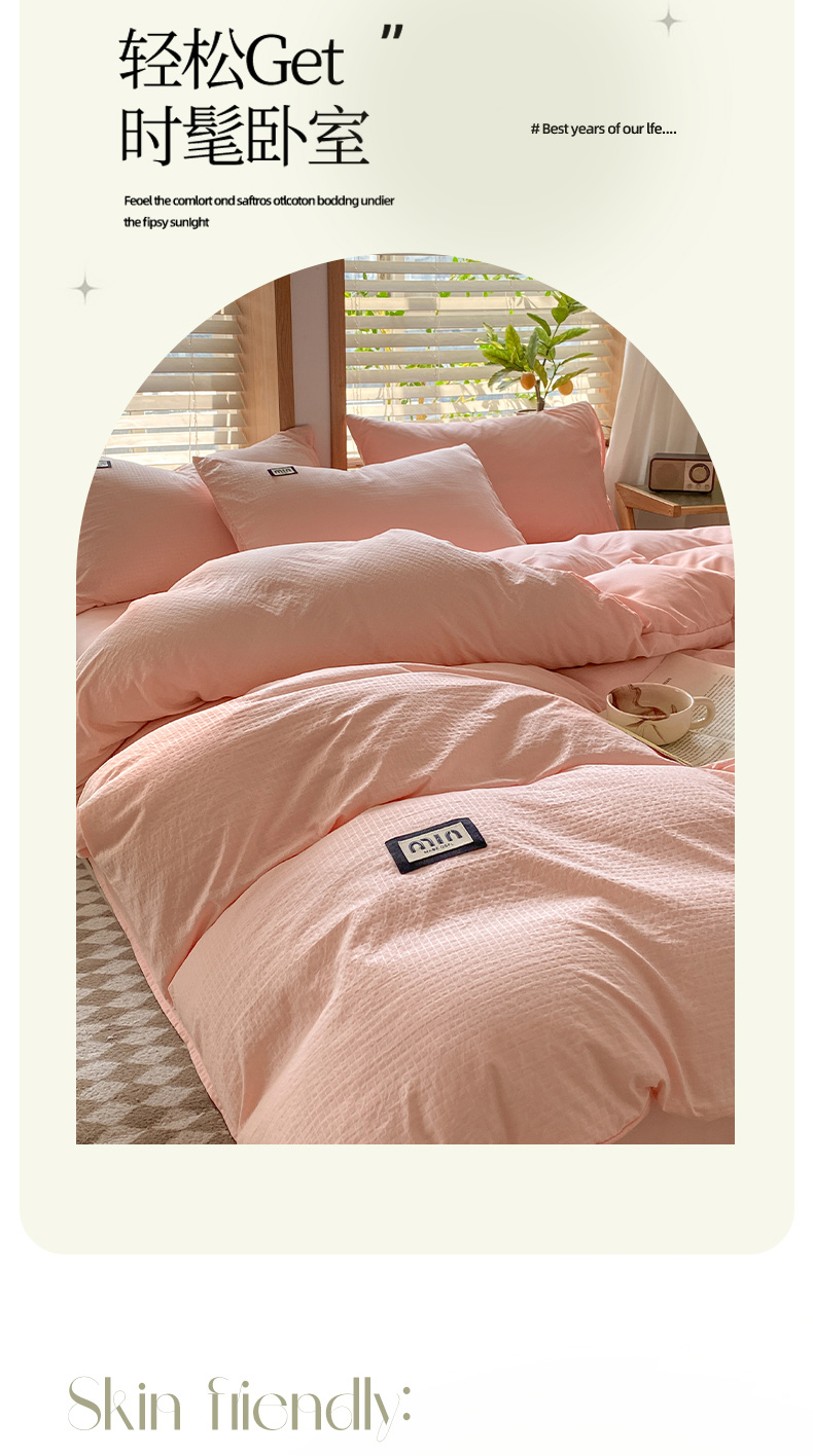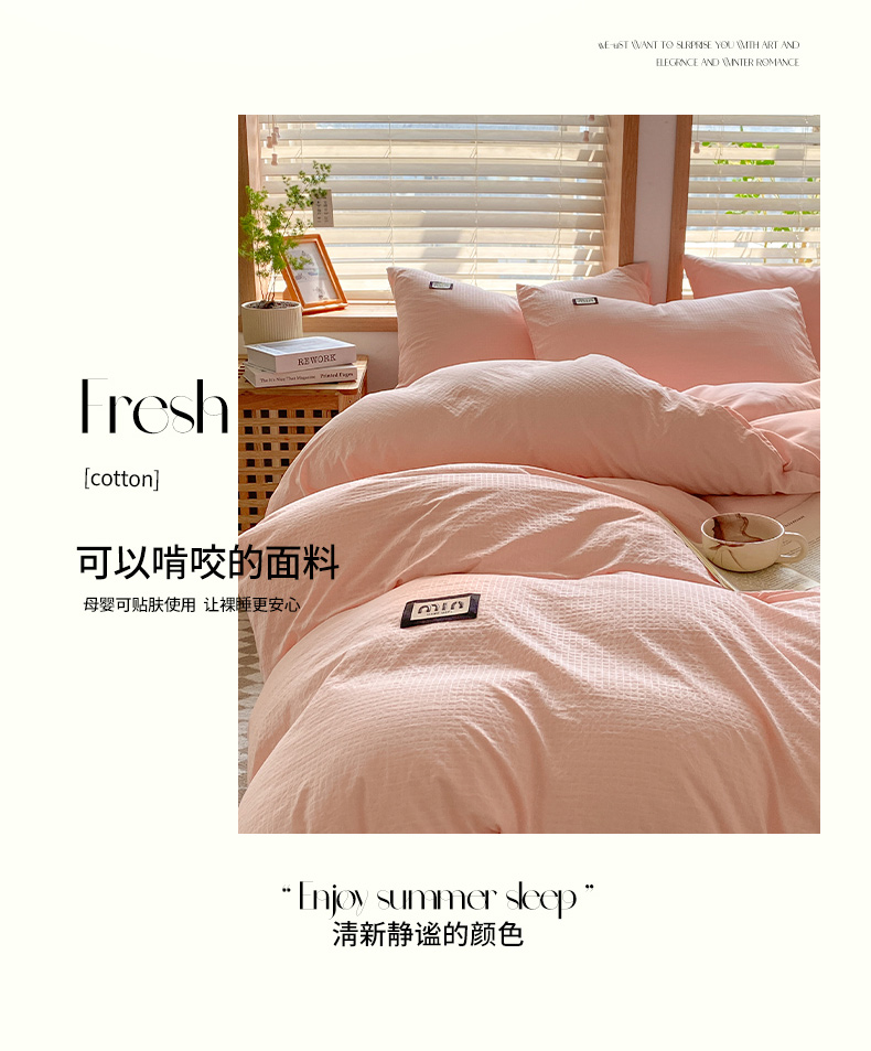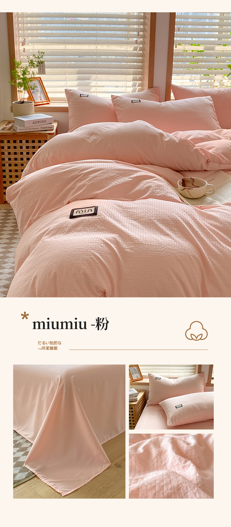 (总)梦之岛 2023新款韩版无印风泡泡纱四件套,泡泡-粉色,泡泡-黄色,泡泡-灰色,泡泡-蓝色,泡泡-绿色