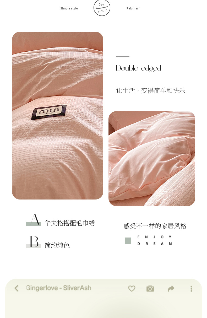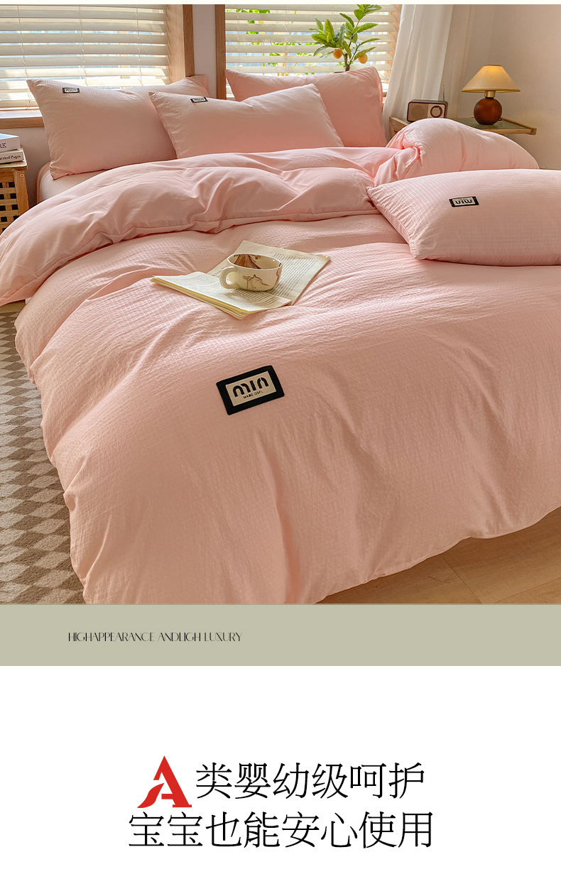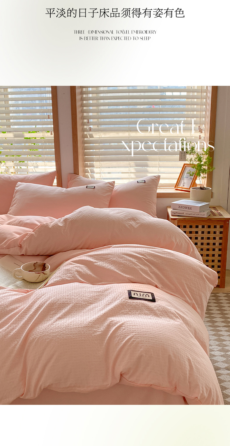 (总)梦之岛 2023新款韩版无印风泡泡纱四件套,泡泡-粉色,泡泡-黄色,泡泡-灰色,泡泡-蓝色,泡泡-绿色
