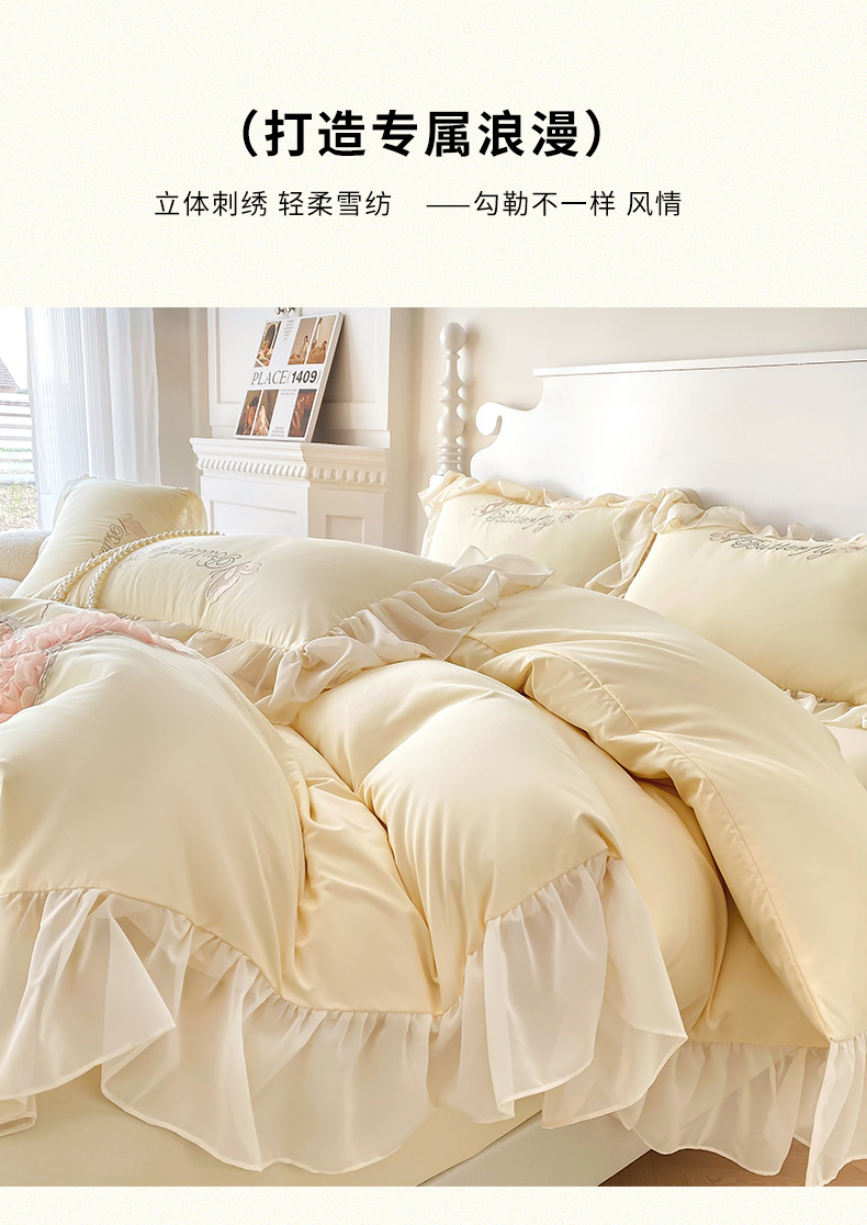 (总)富盛家纺 2024新款水洗亲肤棉立体盘花刺绣公主风四件套,伊莉莎—粉,伊莉莎—白,伊莉莎—紫,伊莉莎—黄,伊莉莎—浅绿,伊莉莎—蓝,伊莉莎—豆沙,伊莉莎—嫩绿