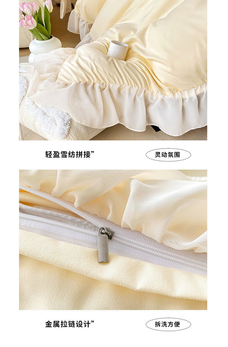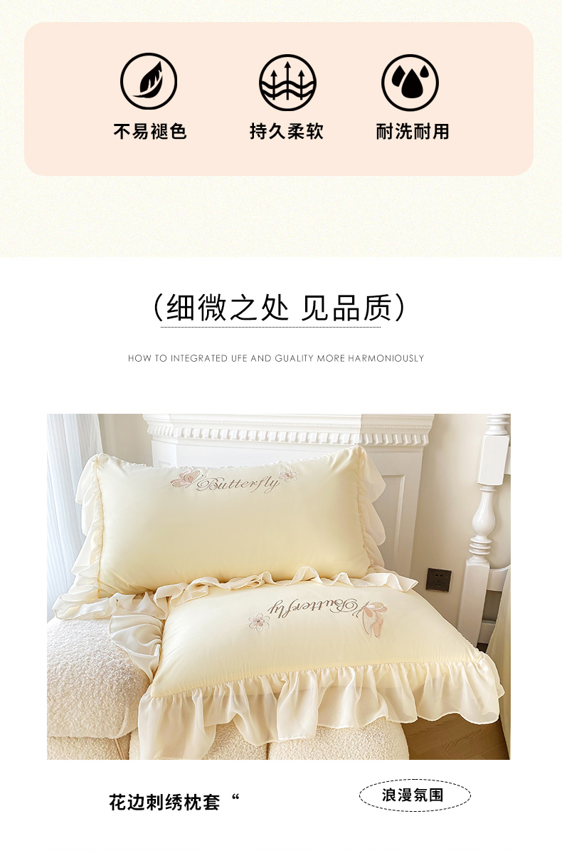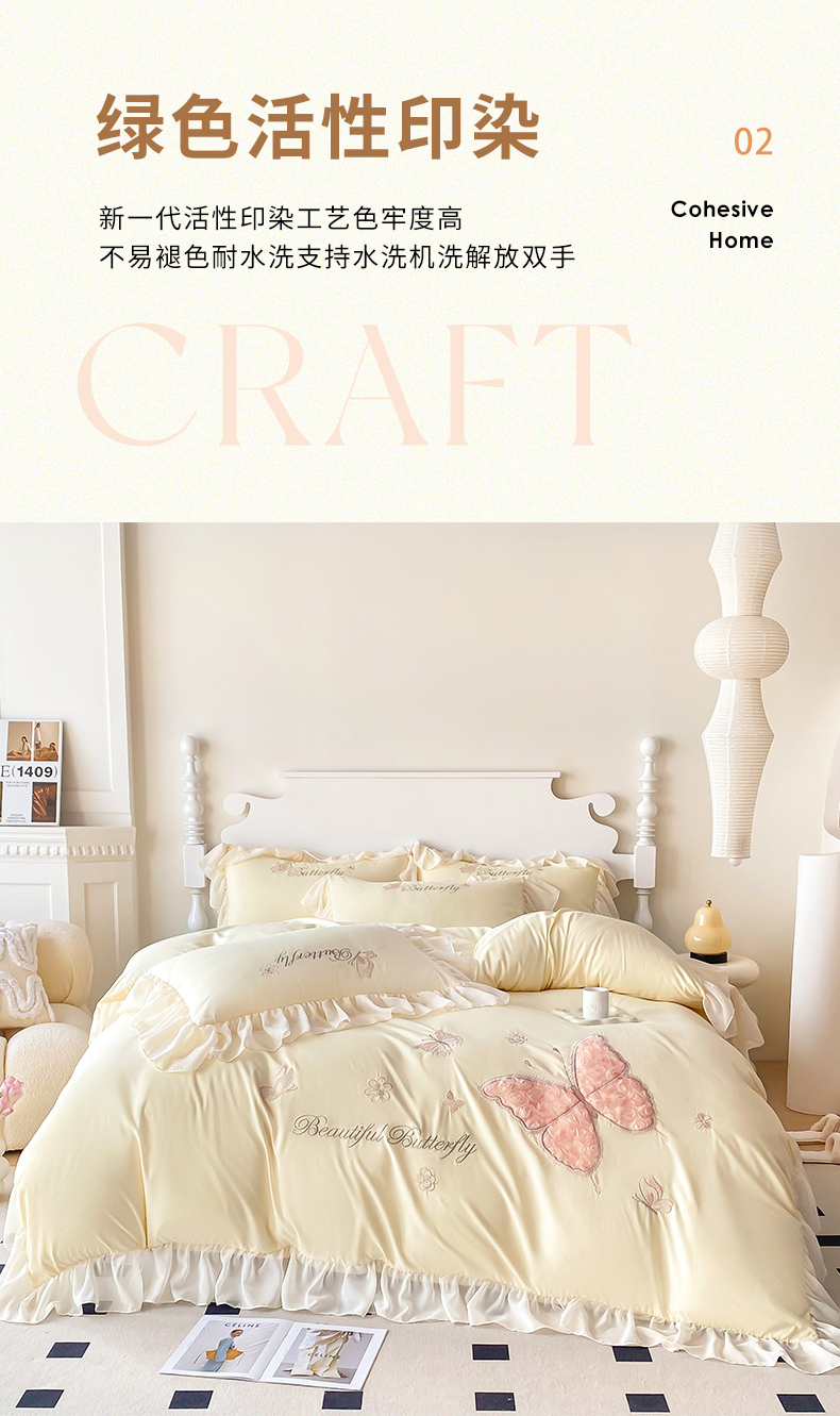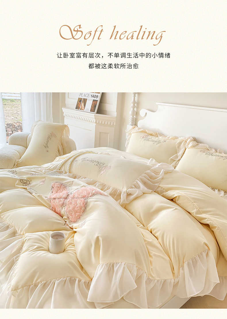 富盛 2024新款水洗亲肤棉立体刺绣四件套公主风四件套-蝴蝶系列 蝴蝶-黄