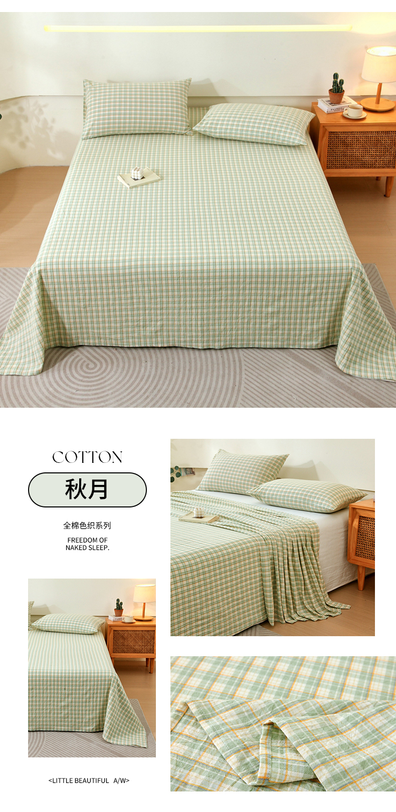商品名称:一禾2024新款A类亲肤舒适全棉色织单品系列-单床单 秋月