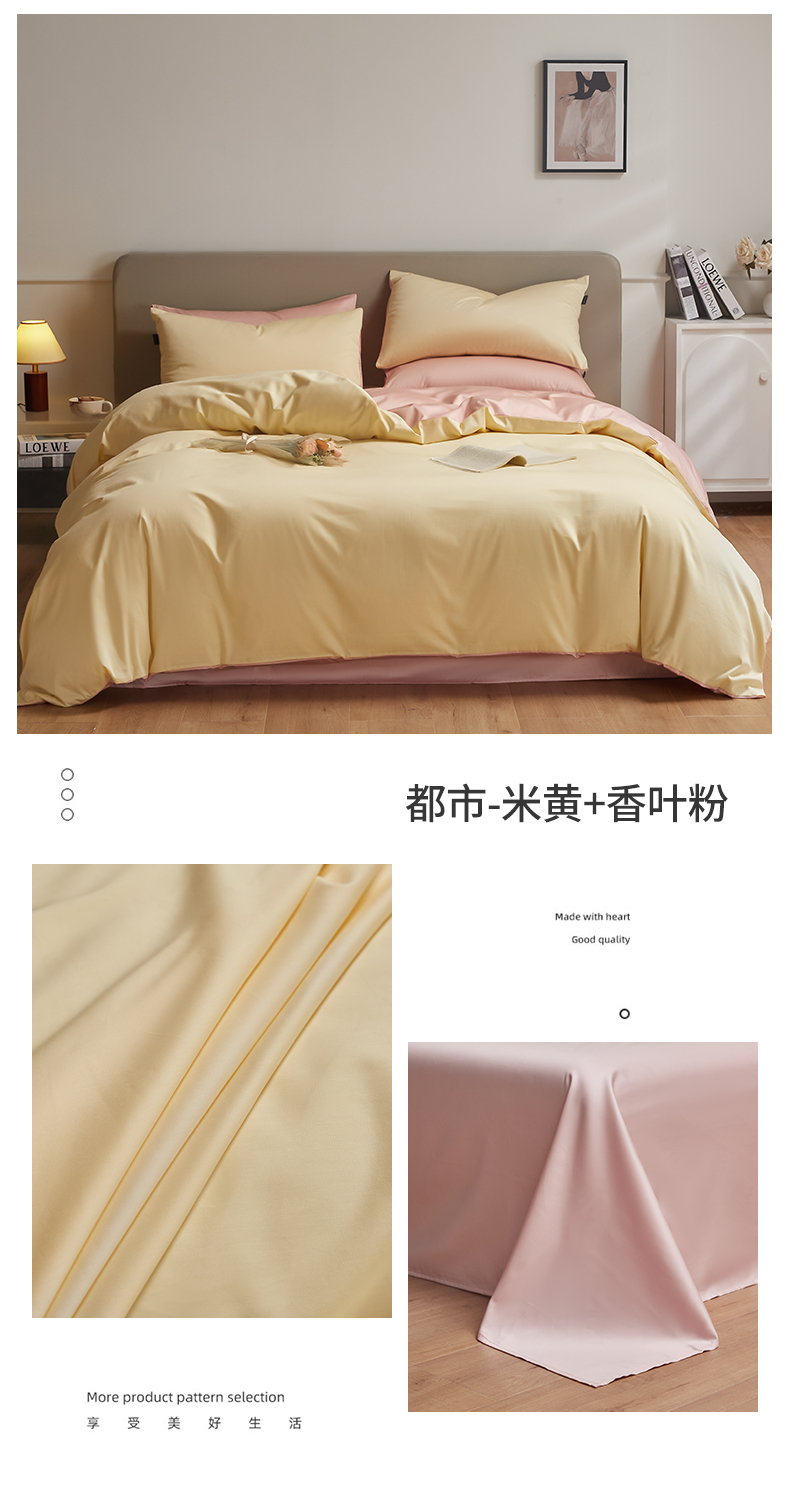 慕色家纺 2024新款都市系列全棉纯色四件套 都市-米黄+香叶粉