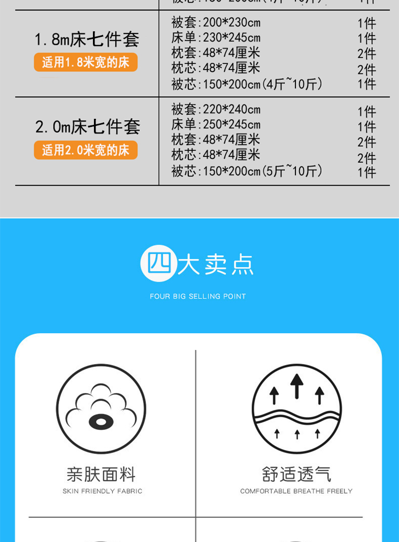 1.8m床七件套配7斤被子 | ¥129.00 |