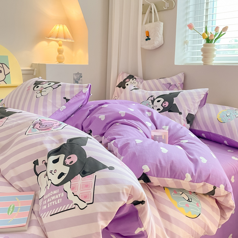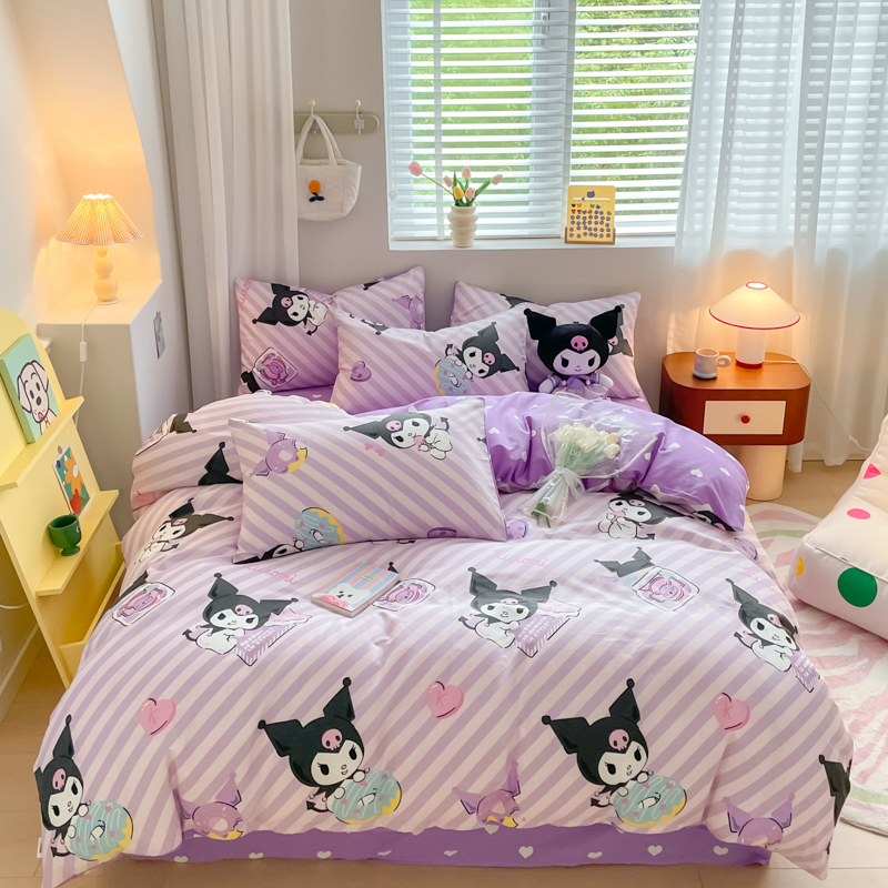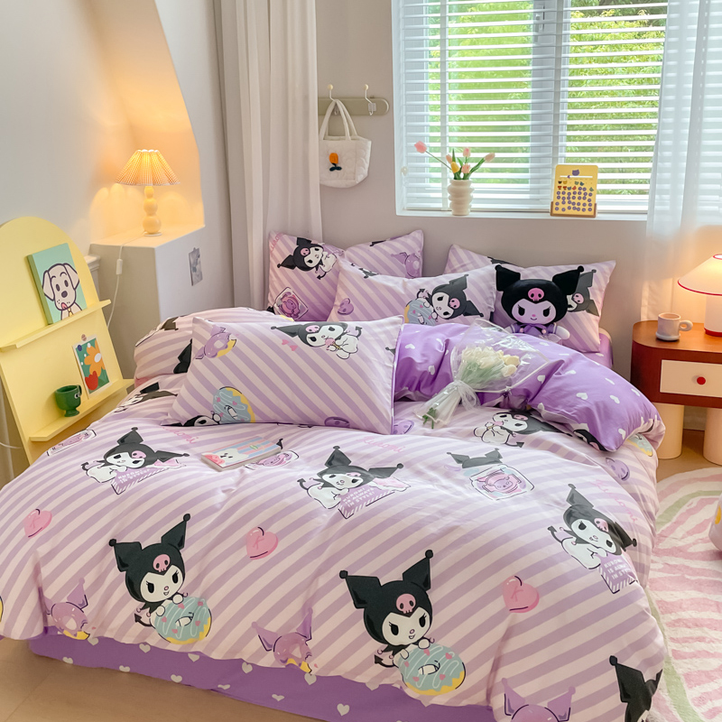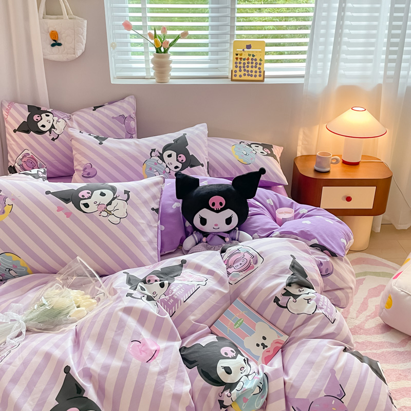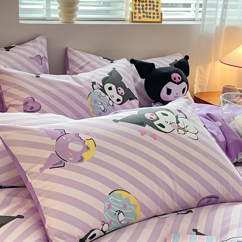 当前位置: 91家纺网 > 商品网购 > 床品套件 > 四件套 > 全棉普通四件套 > 博雅 2024新款全棉三丽鸥AB版活性印花四件套 条纹库洛米