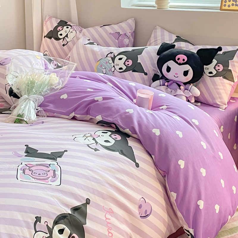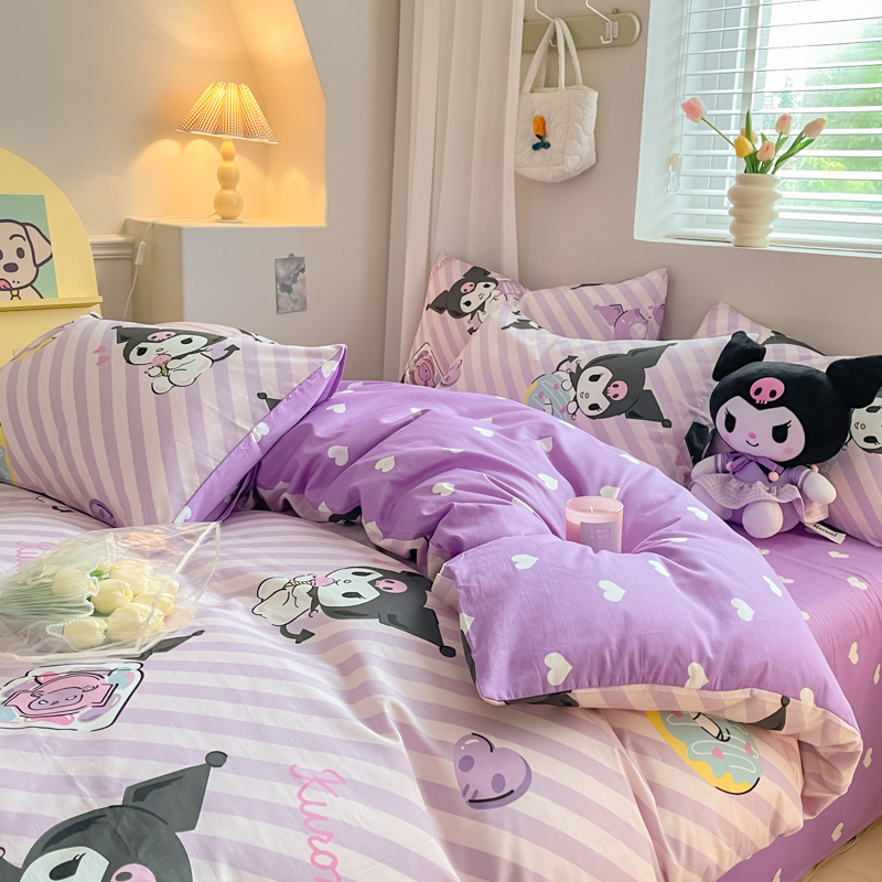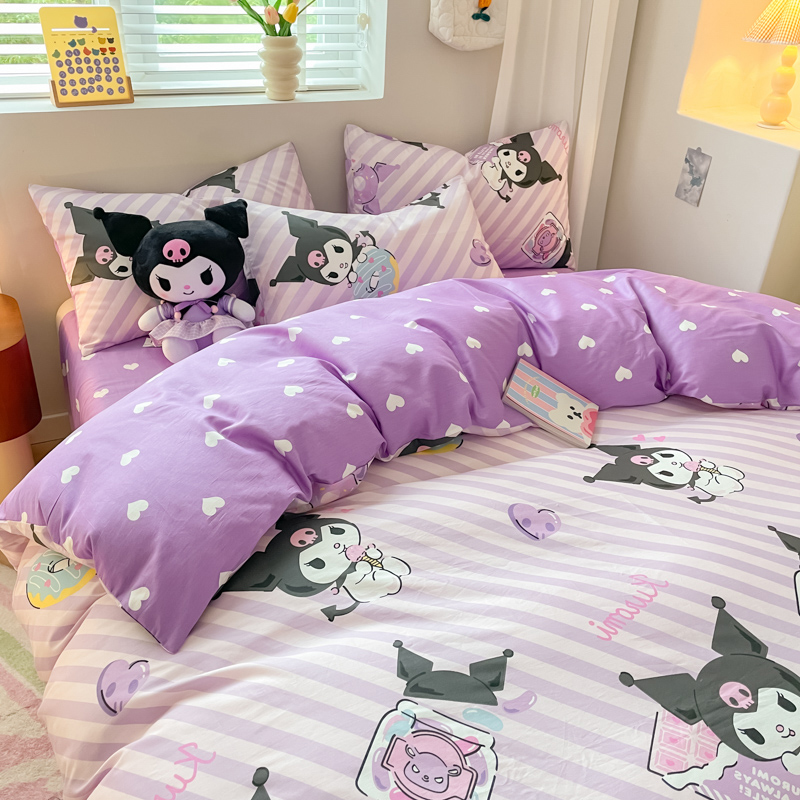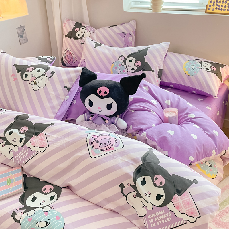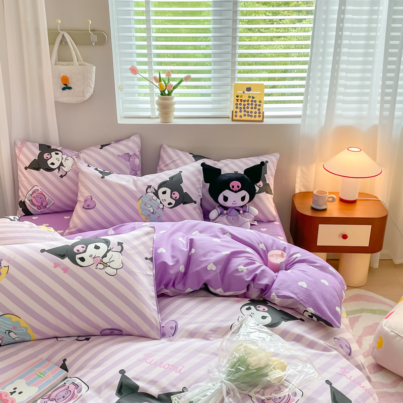 当前位置: 91家纺网 > 商品网购 > 床品套件 > 四件套 > 全棉普通四件套 > 博雅 2024新款全棉三丽鸥AB版活性印花四件套 条纹库洛米