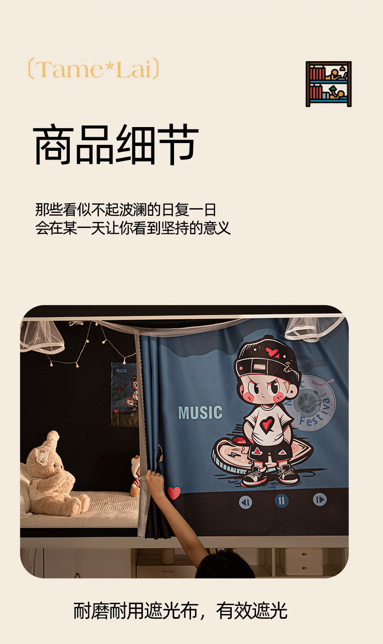 (总)博诺蚊帐 2025新款99%五面遮光加厚涂层遮光大版数码印花带靠墙帘卡通学生蚊帐,摆烂芝麻球,发呆呆考拉,粉红小玉桂,奋斗的小狗,可爱俱乐部,快乐小新,奶萌labubu,俏皮猫咪,小熊懒洋洋