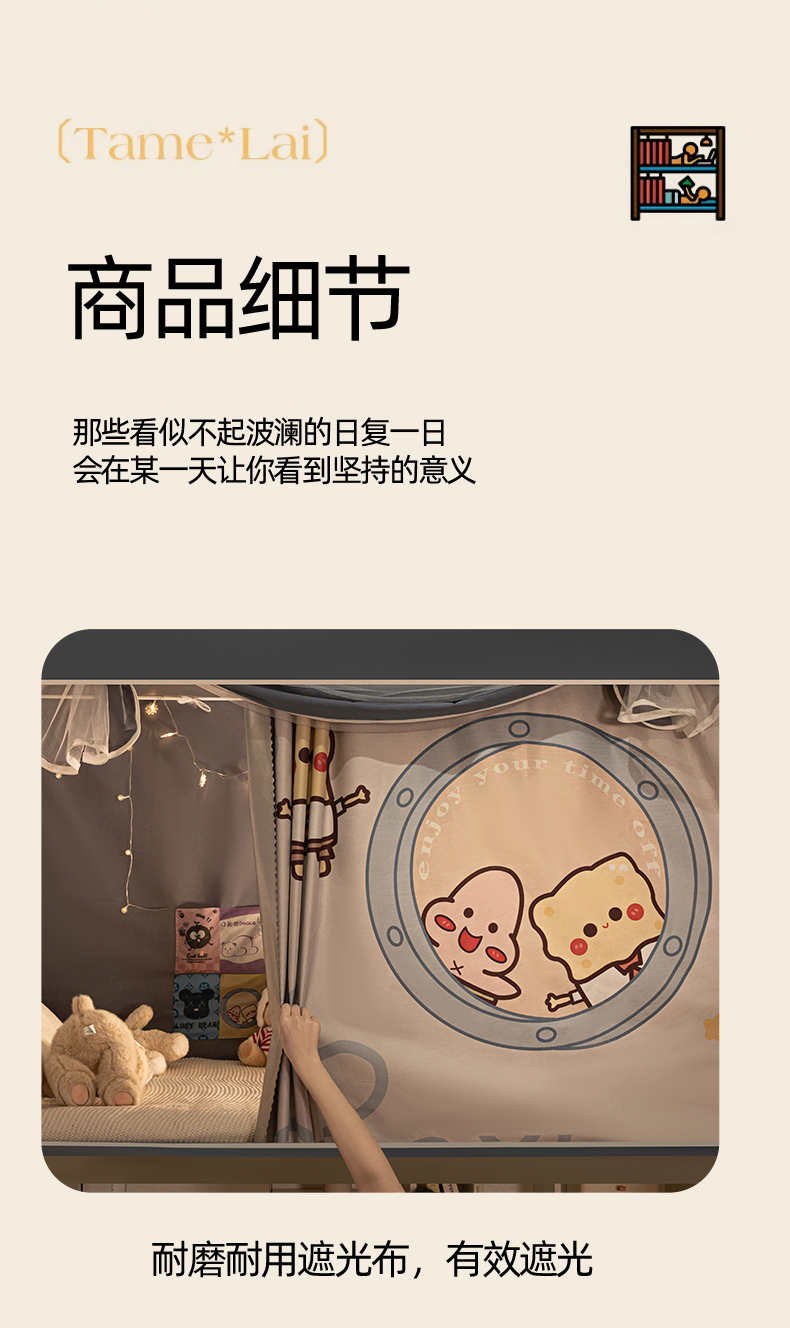 (总)博诺蚊帐 2025新款99%五面遮光加厚涂层遮光大版数码印花带靠墙帘卡通学生蚊帐,摆烂芝麻球,发呆呆考拉,粉红小玉桂,奋斗的小狗,可爱俱乐部,快乐小新,奶萌labubu,俏皮猫咪,小熊懒洋洋