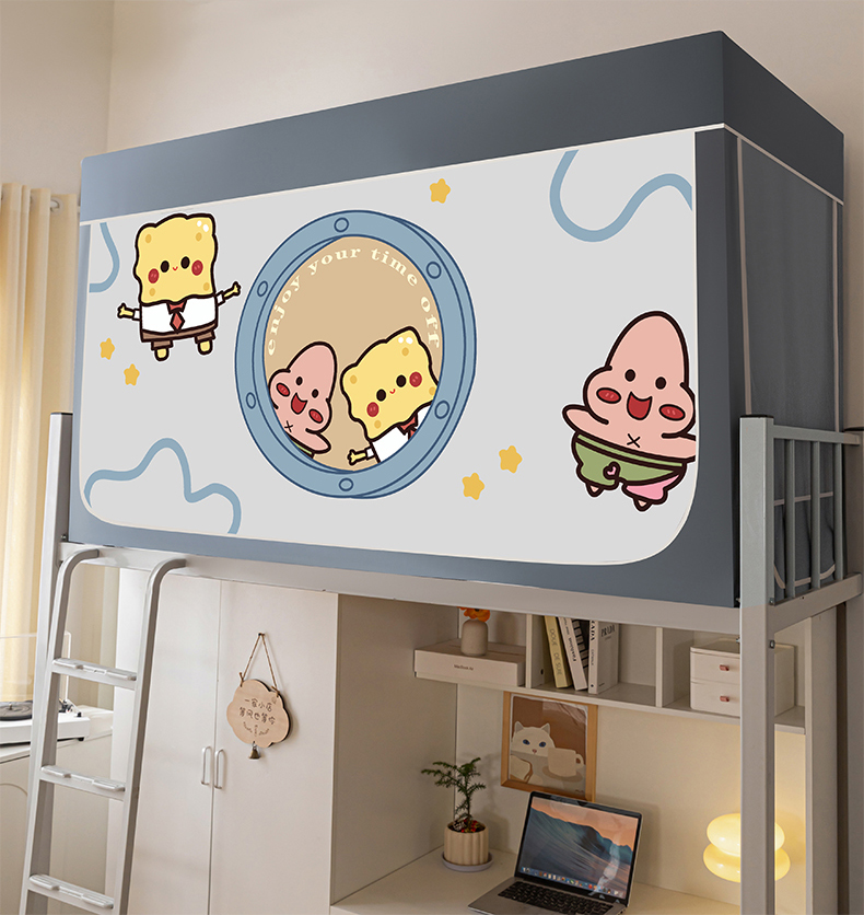 商品名称:博诺 2024新款99%全涂层遮光卡通学生蚊帐 海绵宝宝