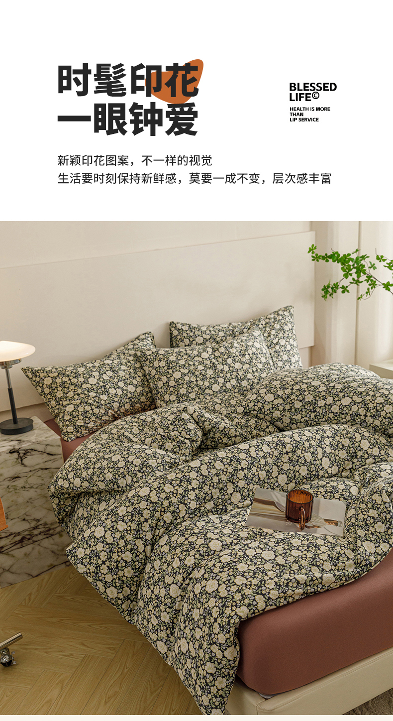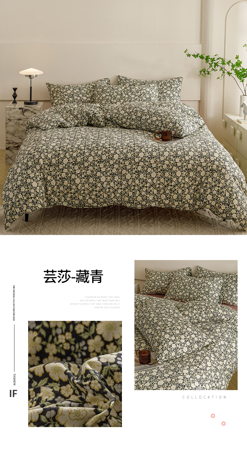 瑞米家居 2024新款A类全棉针织棉四件套 芸莎-藏青