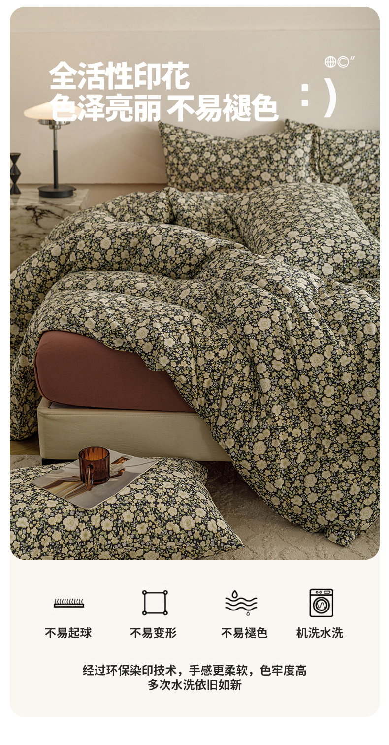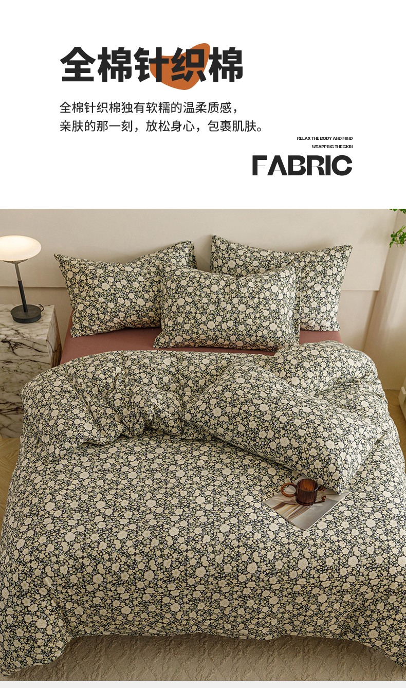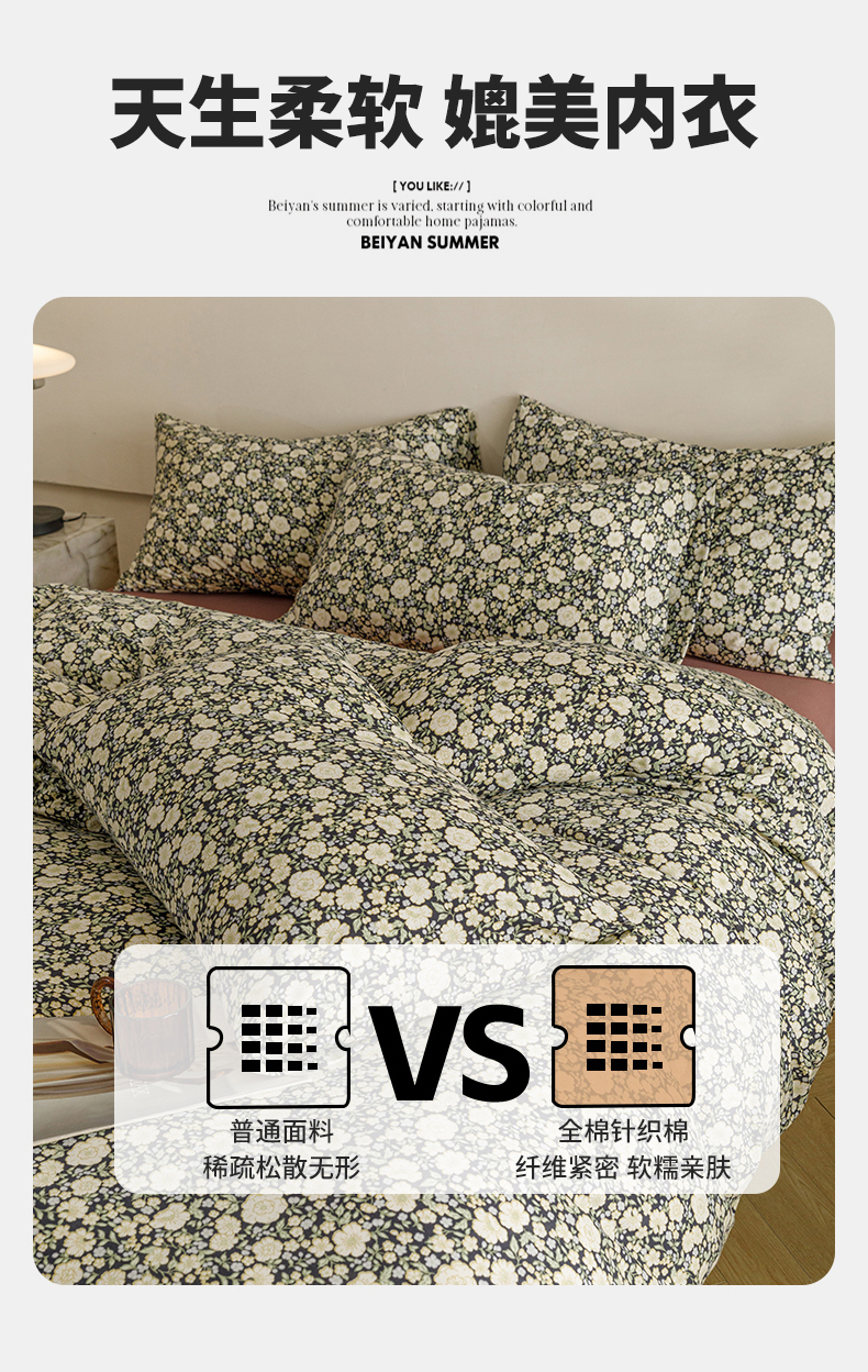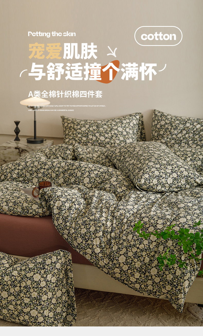 商品名称:瑞米家居 2024新款A类全棉针织棉四件套 芸莎-藏青