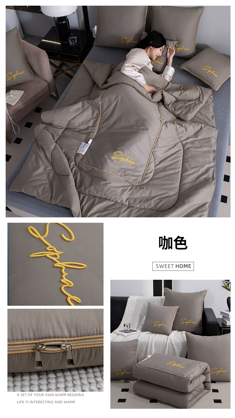 商品名称:照世家纺 2024新款时尚简约抗菌棉抱枕被 咖色