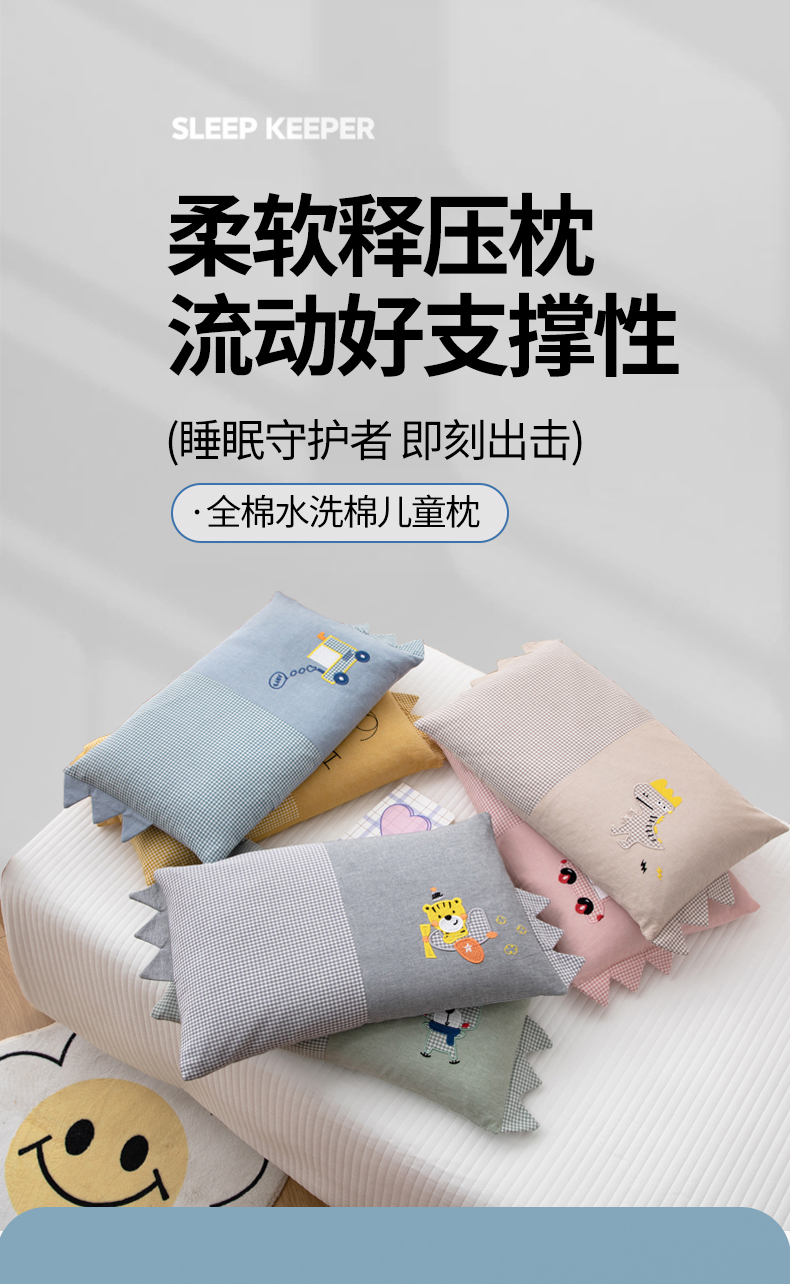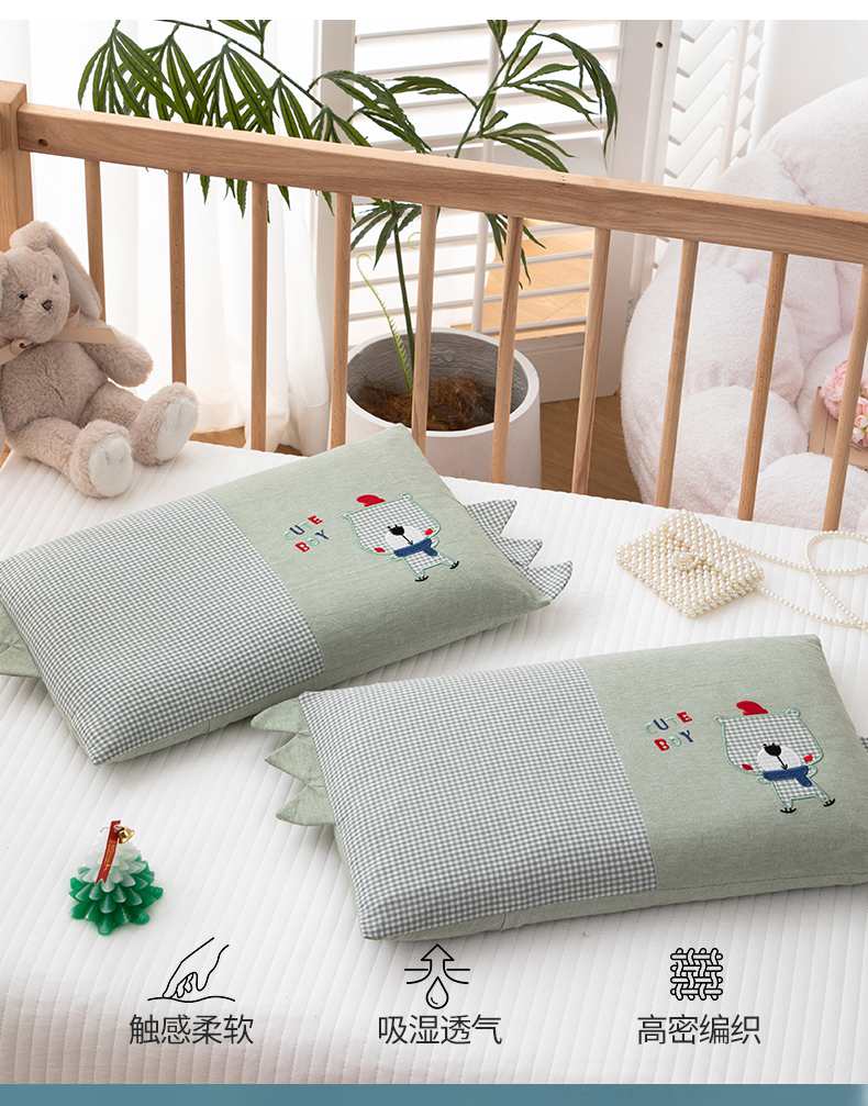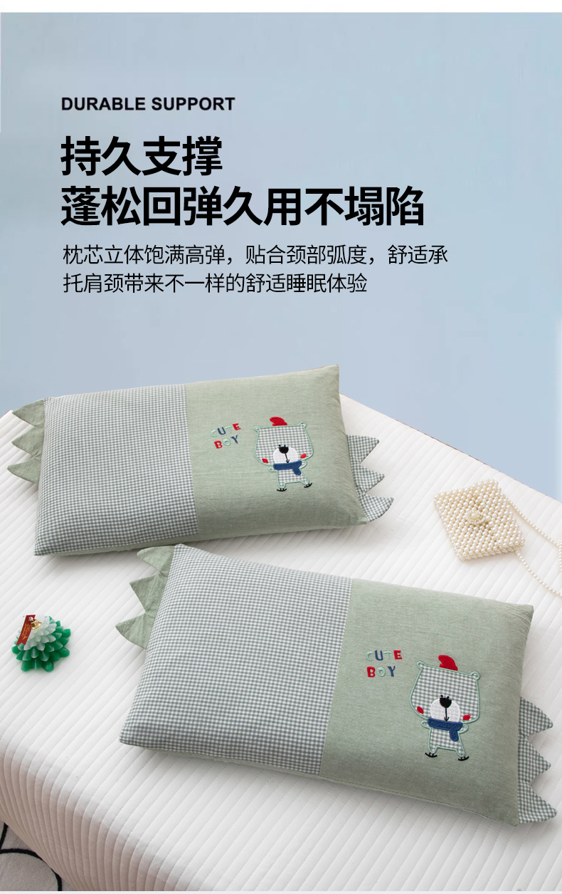 商品名称:(总)织布人 2024新款枕芯全棉水洗棉婴幼儿童枕0-6-12岁卡通贴布绣枕套+羽丝绒枕芯