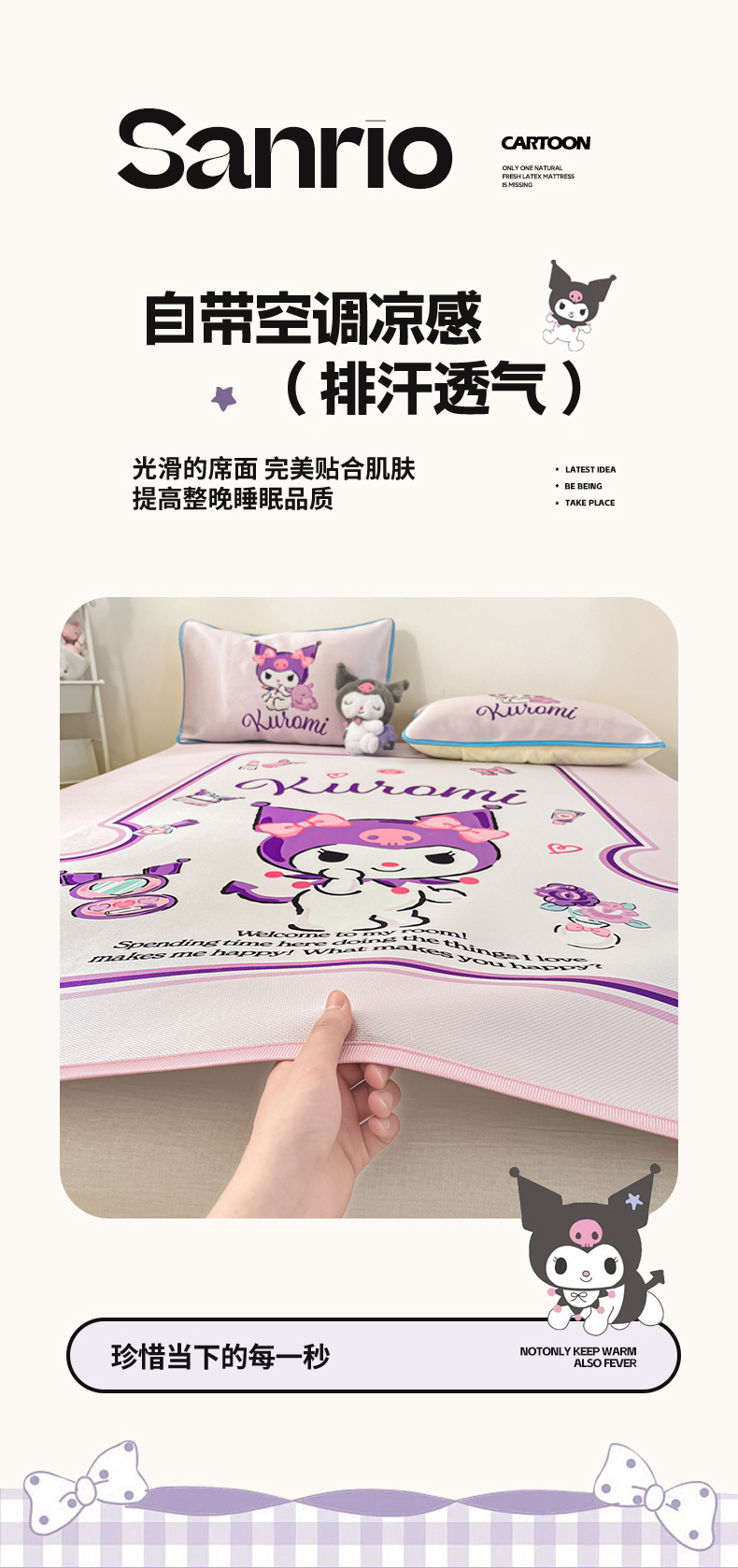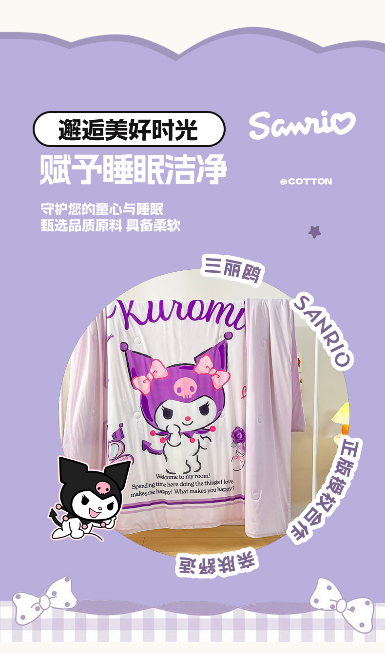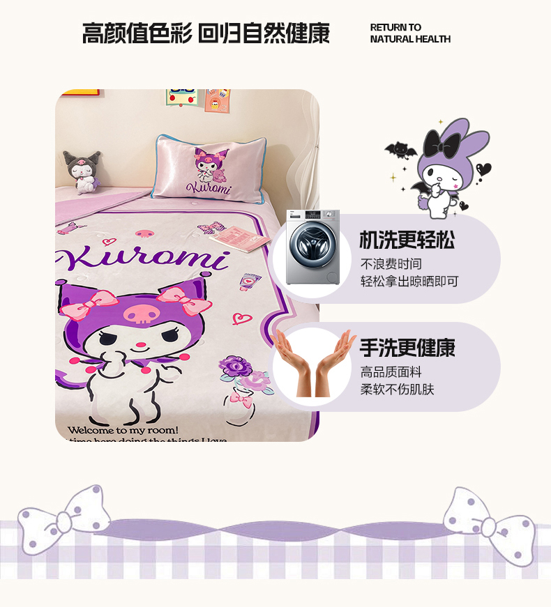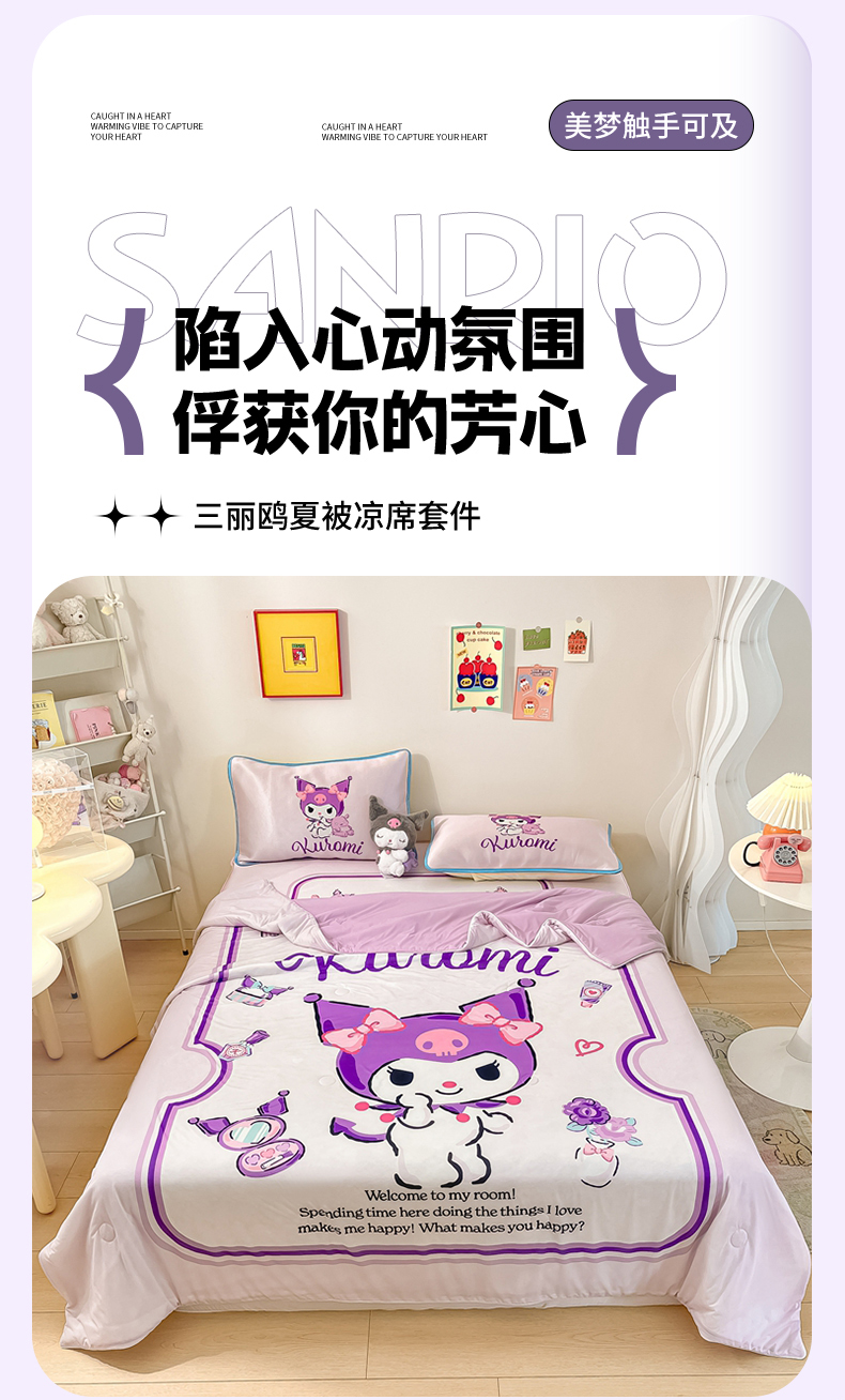 当前位置: 91家纺网 > 商品网购 > 床上用品 > 凉席 > 凉席套件 > 博雅 2024新款三丽鸥凉感丝凉席夏被套件 大版-心动库洛米